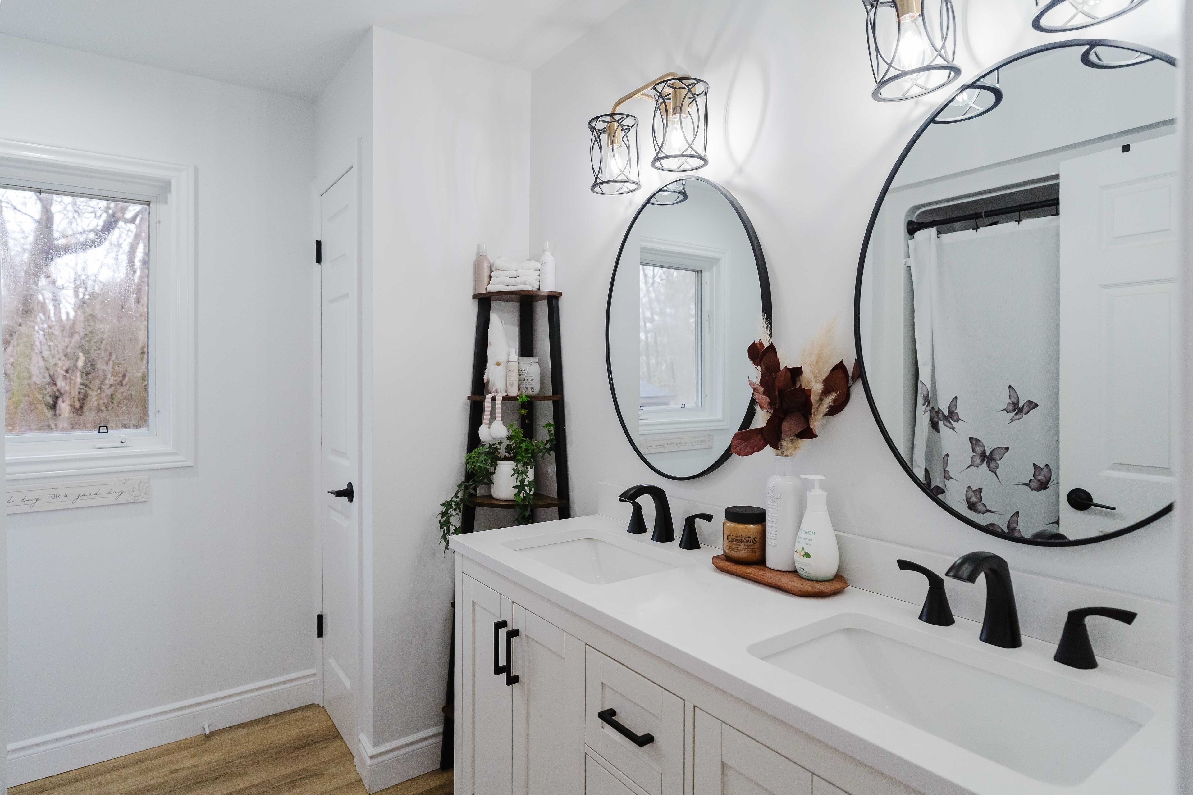 • Renovated bathroom features a double vanity for added convenience.