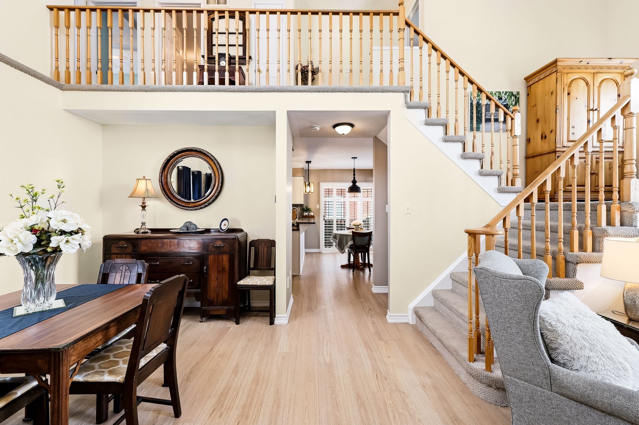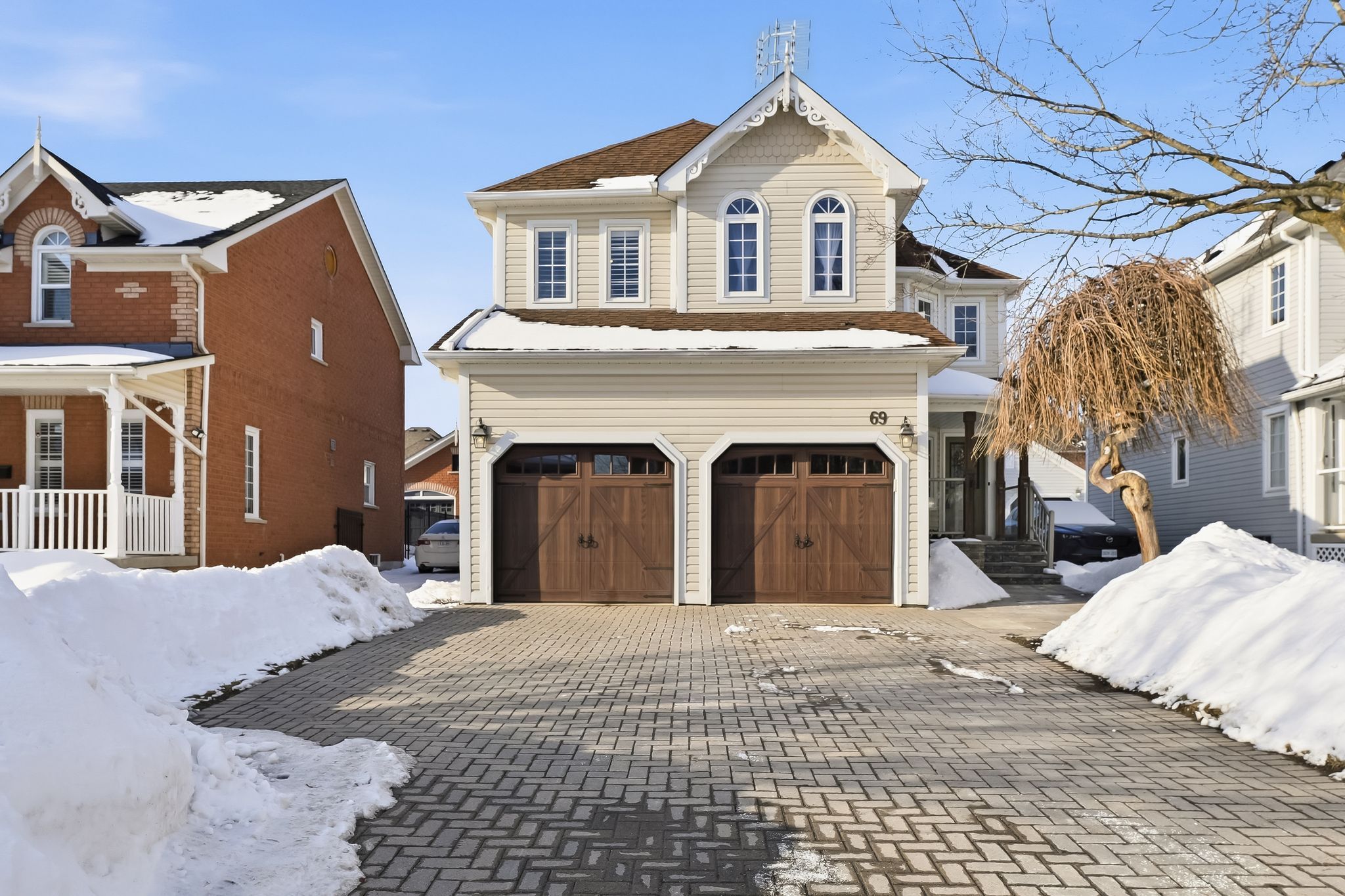 Welcome to 69 matthewson place, in the heart of brooklin. Set on a quiet street in one of whitby's most desirable communities,this well-maintained detached 2 storey home offers a bright/open functional living space designed for everyday comfort & entertaining. Main floor impresses with soaring cathedral ceilings & a dramatic staircase that enhances the open feel of the living & dining areas. The kitchen features a breakfast bar, eat-in area,built-in dishwasher, new-faced cabinets,sgwo to small deck to bbq & the convenience of garage access. The inviting cozy family room w/gas fireplace overlooks a private,beautifully landscaped backyard complete w/stone patio/interlock detailing & raised garden beds. Large garden she/shed all perfect for summer gatherings or quiet evenings outdoors. Upstairs offers a large primary bdrm w/his & her closets & 4pce ensuite. Unfinished basement ready for your custom vision. Located steps to top rated catholic & public schools, parks, transit, downtown brooklin shops & 3 minutes to hwy 407. A solid opportunity in a highly sought-after neighbourhood. Newly re-faced kitchen cabinets and new main floor laminate.