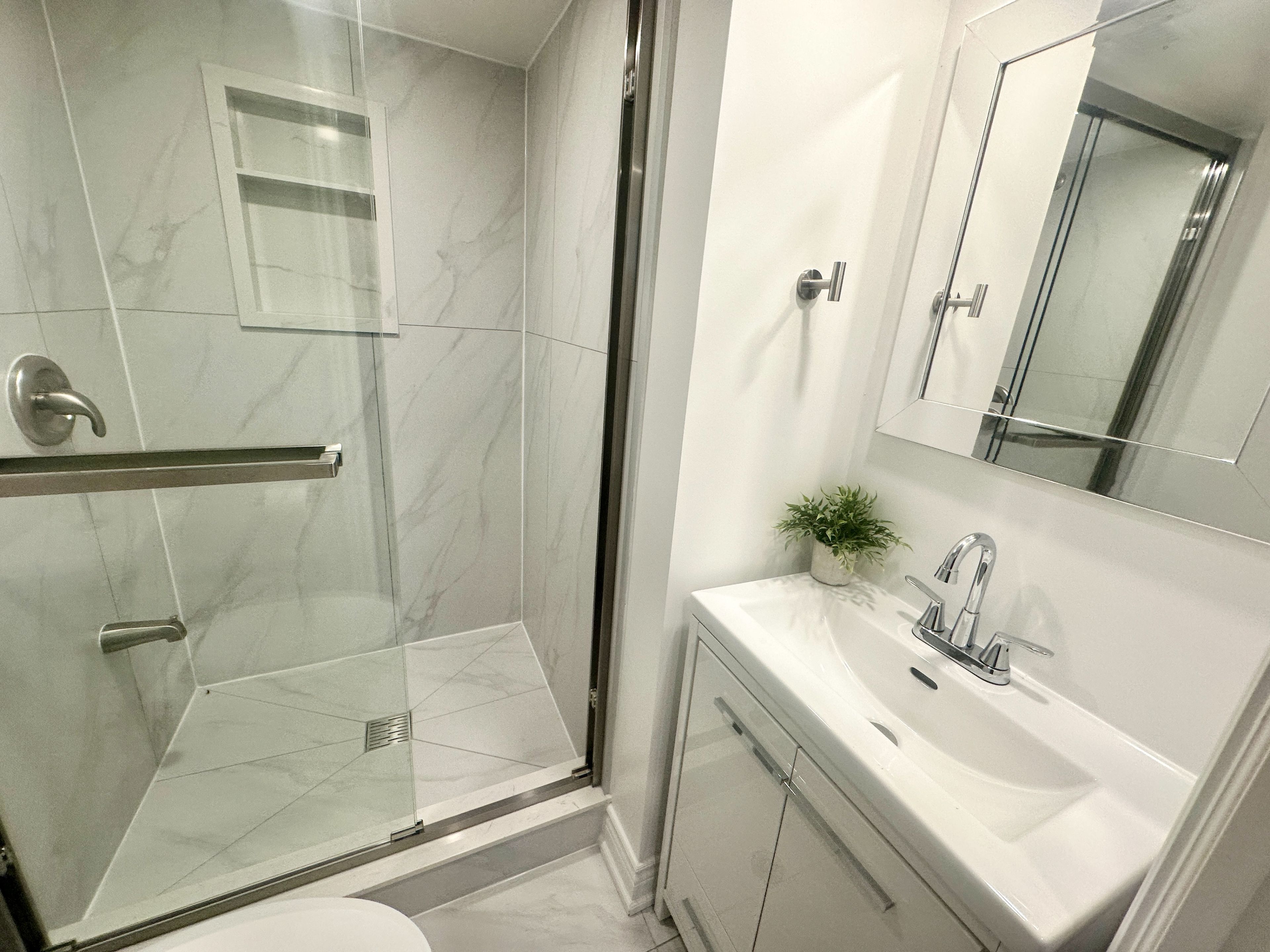 • Large one-bedroom basement apartment with new kitchen and walk-up access.