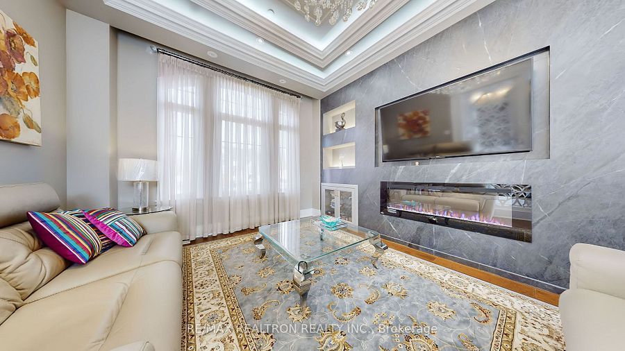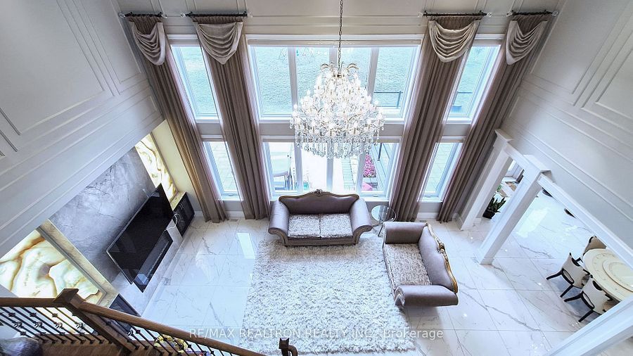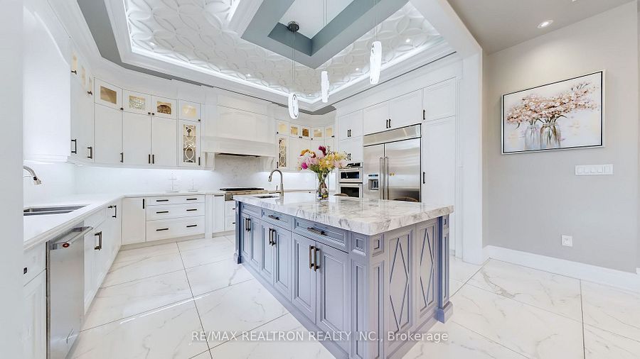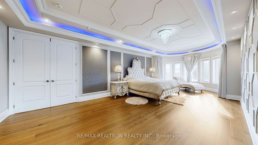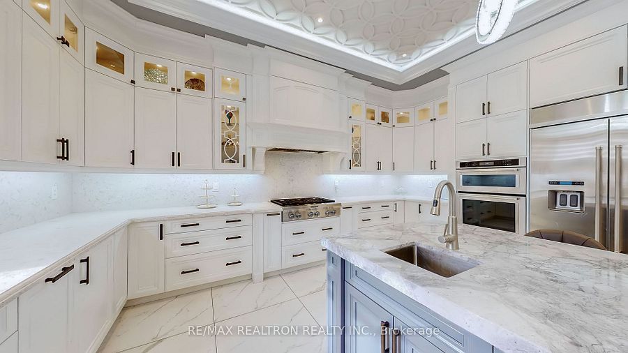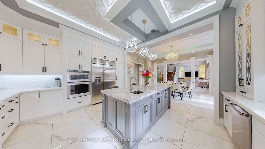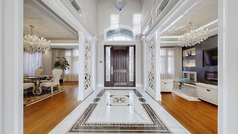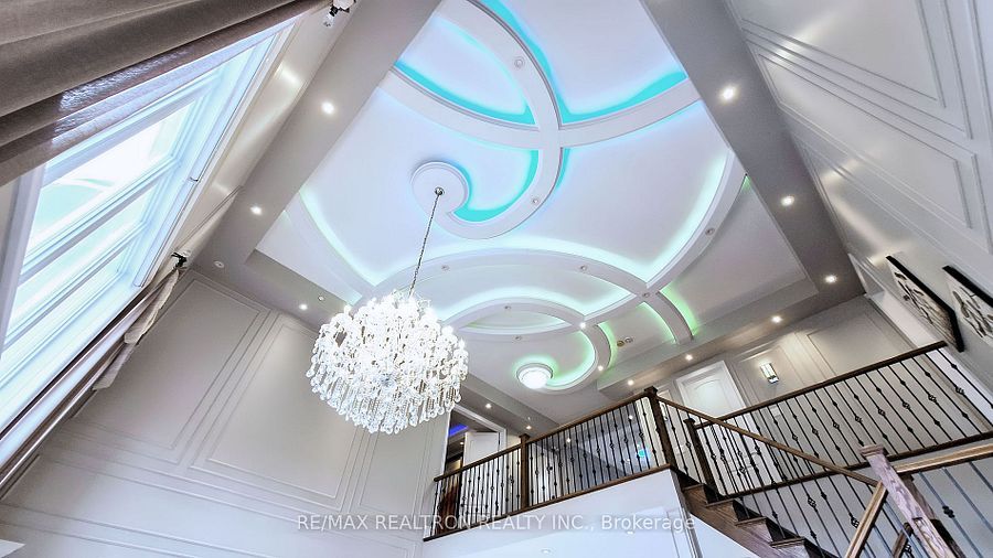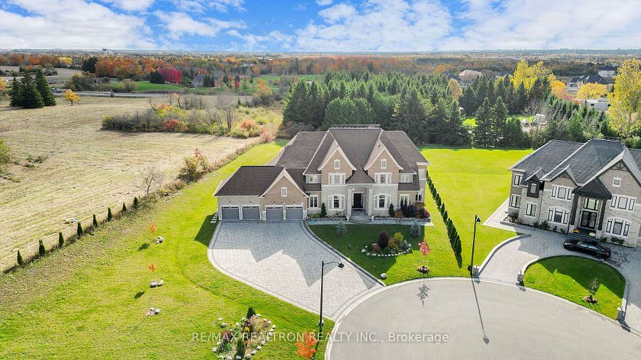 Experience ultra-luxury living in this breathtaking showstopper set on a premium 1-acrepie-shaped lot in an exclusive estate court! This grand 4-car garage residence offers architectural presence that feels like a modern castle, crafted with uncompromising quality, artistry, & design. Inside, enjoy 6,625 sq. Ft. Of refined living (+ ~3,300 sq/ft unspoiled basement ready for customization). Every inch displays couture craftsmanship: exceptional trim work, elaborate mouldings, custom wainscoting, designer wall panels, waffle & coffered ceilings, & magazine-worthy detailing throughout. Dramatic volumes include a 22ft cathedral foyer & family room, 11ft ceilings on the main, 10ft on the 2nd floor, & 9ft in the basement. Brilliantly illuminated by over 200 pot lights & 20 crystal chandeliers, the home showcases custom floral-pattern ceiling designs all throughout. The main floor includes a private nanny/in-law suite complete with its own 3-piece ensuite bath & walk-in closet. The heart of the home is the custom chef's gourmet kitchen, featuring a wide center island, premium built-in appliances, extensive cabinetry, marble surfaces, & open sightlines into the sunlit breakfast area & luxurious family room. A stunning symmetrical backlit onyx feature wall anchors the living space, complemented by premium marble, crown mouldings, & oversized windows overlooking the vast estate grounds. Upstairs, discover 5 spacious bedrooms, each with its own private ensuite, designed with exceptional finishes & elegant ceiling treatments. The primary bedroom retreat impresses with a grand sleeping area, large lounge/sitting zone, a massive walk-in closet, & a spa-inspired ensuite that embodies pure luxury. Outside, the rare 1-acre private estate lot offers endless potential-pool, tennis court, cabana, outdoor kitchen, or luxury garden expansion. With open green vistas & privacy on all sides, this property is the ideal canvas for resort-style outdoor living. A true one-of-a-kind masterpiece!