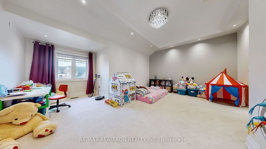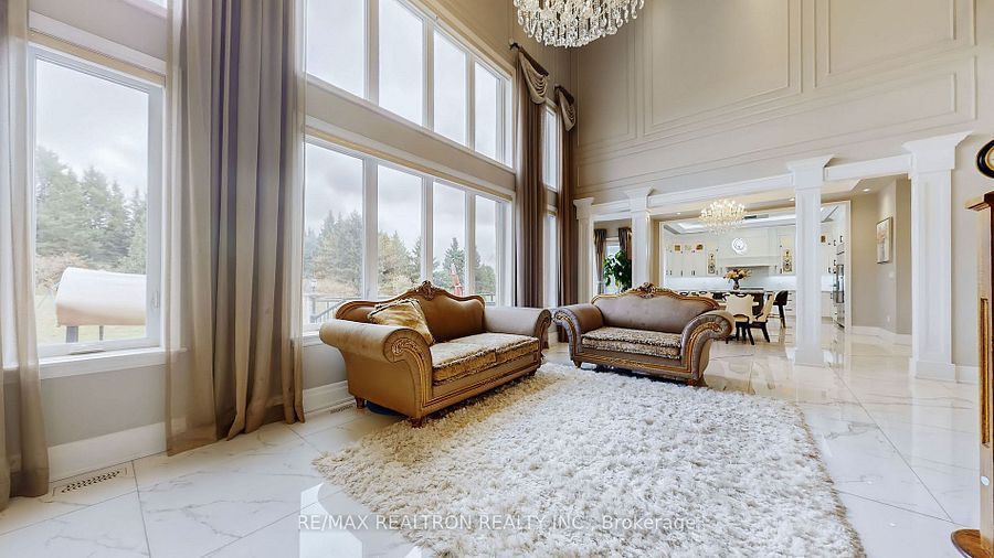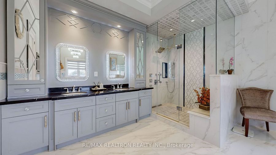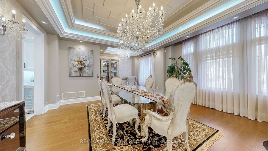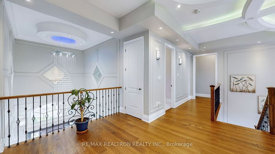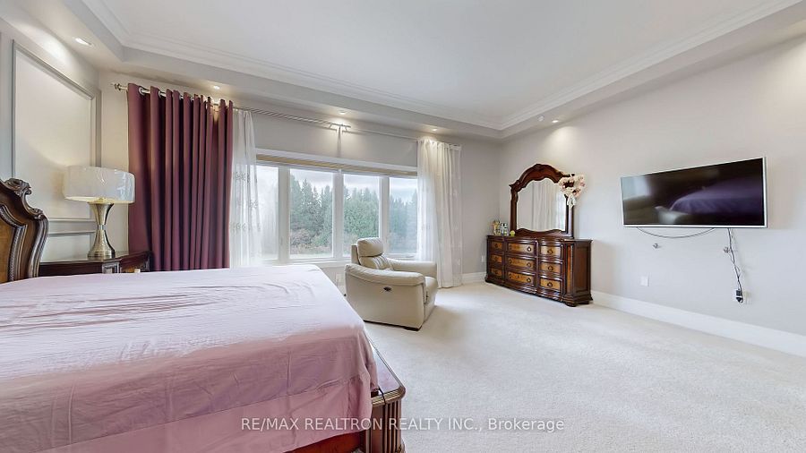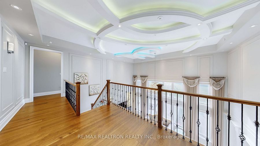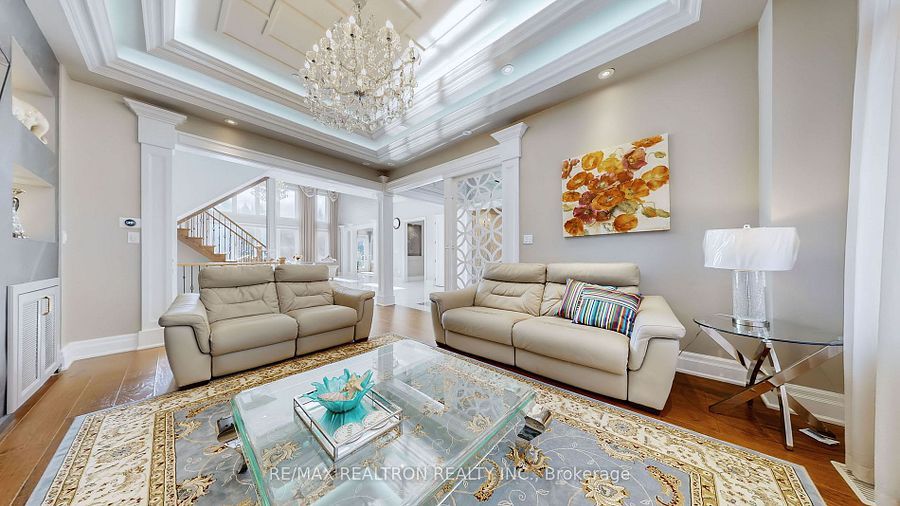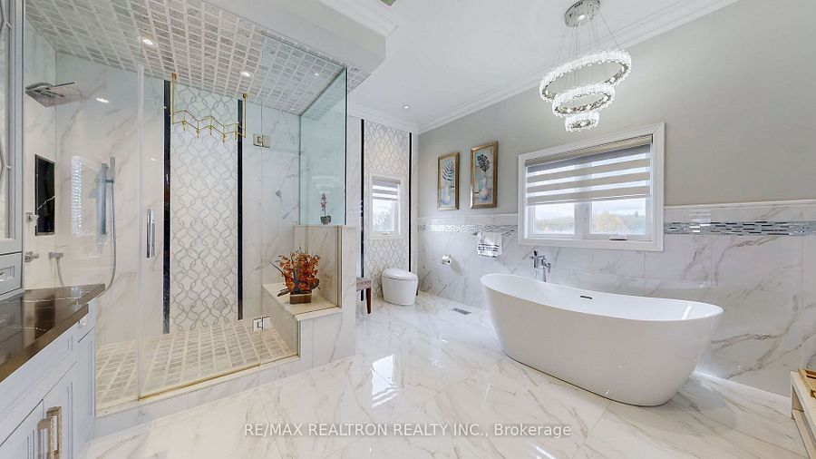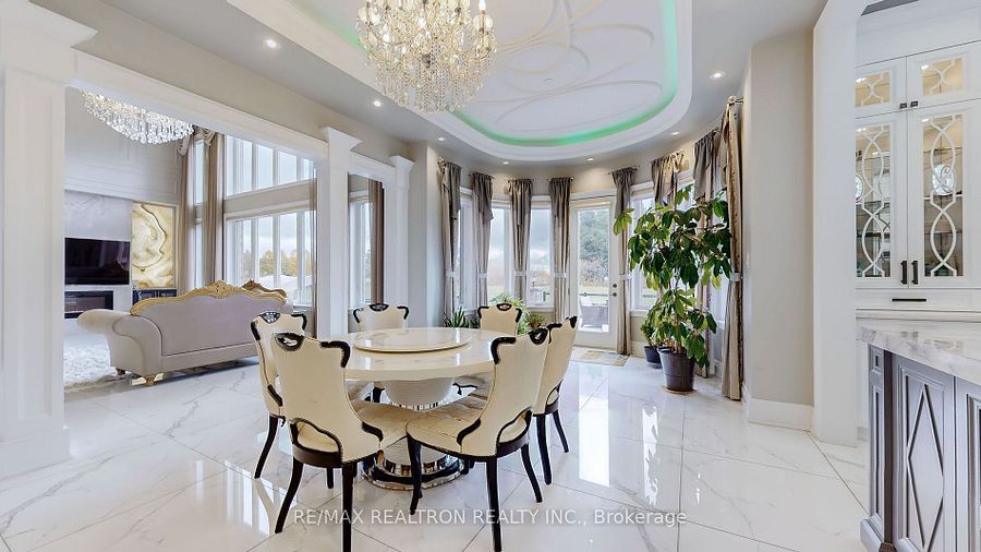 Experience ultra-luxury living in this breathtaking showstopper set on a premium 1-acrepie-shaped lot in an exclusive estate court! This grand 4-car garage residence offers architectural presence that feels like a modern castle, crafted with uncompromising quality, artistry, & design. Inside, enjoy 6,625 sq. Ft. Of refined living (+ ~3,300 sq/ft unspoiled basement ready for customization). Every inch displays couture craftsmanship: exceptional trim work, elaborate mouldings, custom wainscoting, designer wall panels, waffle & coffered ceilings, & magazine-worthy detailing throughout. Dramatic volumes include a 22ft cathedral foyer & family room, 11ft ceilings on the main, 10ft on the 2nd floor, & 9ft in the basement. Brilliantly illuminated by over 200 pot lights & 20 crystal chandeliers, the home showcases custom floral-pattern ceiling designs all throughout. The main floor includes a private nanny/in-law suite complete with its own 3-piece ensuite bath & walk-in closet. The heart of the home is the custom chef's gourmet kitchen, featuring a wide center island, premium built-in appliances, extensive cabinetry, marble surfaces, & open sightlines into the sunlit breakfast area & luxurious family room. A stunning symmetrical backlit onyx feature wall anchors the living space, complemented by premium marble, crown mouldings, & oversized windows overlooking the vast estate grounds. Upstairs, discover 5 spacious bedrooms, each with its own private ensuite, designed with exceptional finishes & elegant ceiling treatments. The primary bedroom retreat impresses with a grand sleeping area, large lounge/sitting zone, a massive walk-in closet, & a spa-inspired ensuite that embodies pure luxury. Outside, the rare 1-acre private estate lot offers endless potential-pool, tennis court, cabana, outdoor kitchen, or luxury garden expansion. With open green vistas & privacy on all sides, this property is the ideal canvas for resort-style outdoor living. A true one-of-a-kind masterpiece!