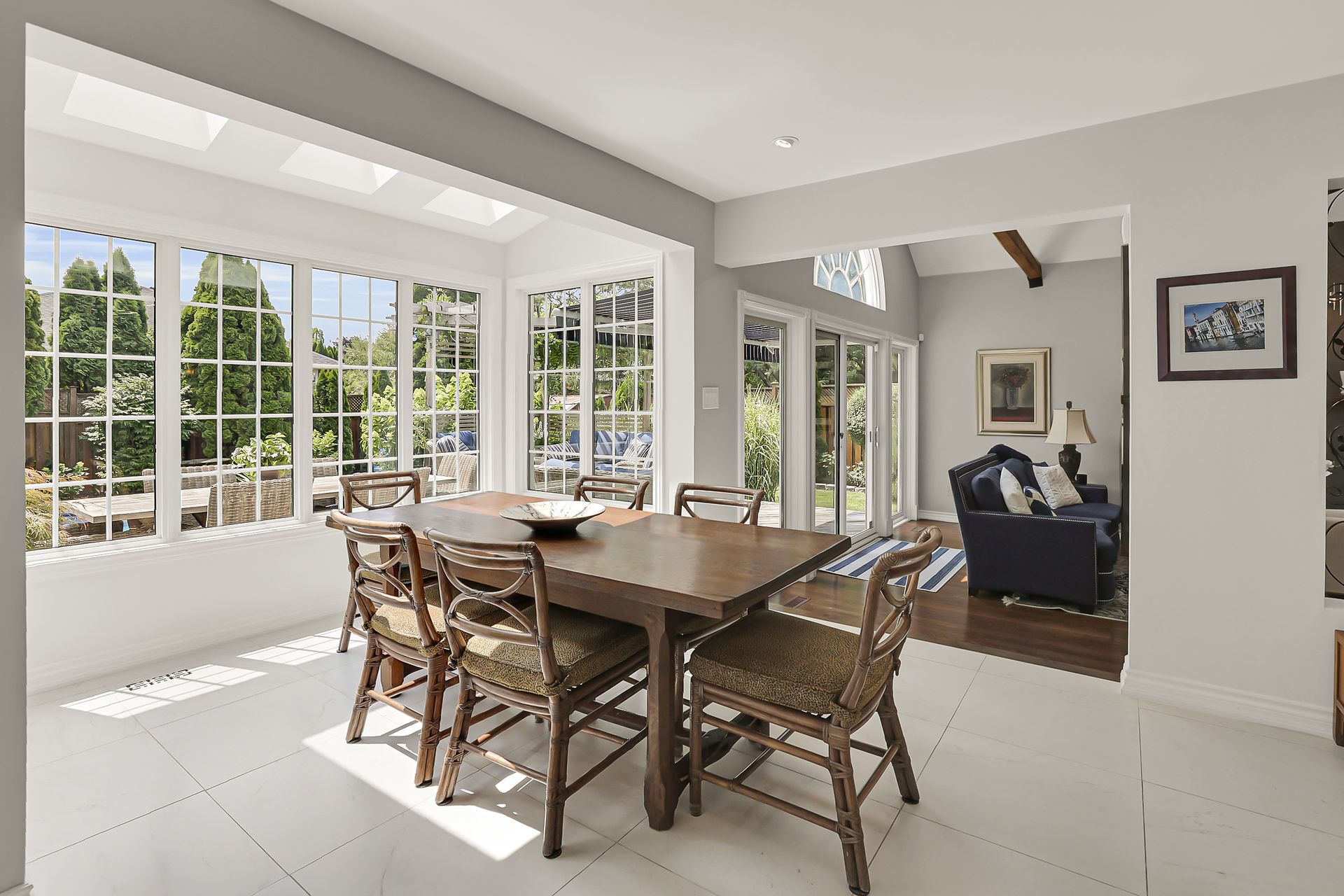 A great value! This cape cod inspired home is nestled in a quiet neighbourhood of niagara-on-the-lake with easy access to the heritage district, large open park spaces, the niagara parkway trails, many wineries, restaurants, golf courses, entertainment and everything that niagara has to offer. Recently renovated in 2020 and 2025, the large foyer welcomes you to exquisitely finished living spaces. The main floor features a spacious living room with cathedral ceiling, floor to ceiling windows, skylights and an open gas fireplace and conveniently located private office/den near the front door. The chef inspired custom kitchen boasts gleaming white cupboards surrounding the large quarter-sawn oak in walnut stain island, lapitec 100% sintered stone countertop with undermount sink, dishwasher and ample storage. The open dining space is perfectly located in the kitchen for entertaining your guests. Upgraded appliances include 36" thermador gas cooktop and oven, and a 48" x 84" fridge/freezer. Sliding doors from the kitchen open to a covered bbq cabana and a second outdoor eating area. The livingroom patio doors connect you to the fully landscaped private backyard with large mature trees, shrubbery and plantings surrounding the in-ground heated saltwater pool, a wraparound patio with retractable awning and deck with pergola. Second level has two well appointed bedrooms. The fabulous master bedroom has an adjoining dressing room with closets, luxurious five piece ensuite, private balcony and laundry facilities. The finished basement is complete with family room with wood stove, wine cellar, recently updated bathroom, 2 more bedrooms, pantry and storage area with rough in for a kitchenette for a variety of uses. A perfect home for family gatherings and entertaining. Previous updates: basement bedrooms and bathroom 2025, main bathroom tub/surround 2024, ac 2023, pool liner 2017, furnace 2017, pool gas heater 2023 with salt water converter and safety cover 2020.
