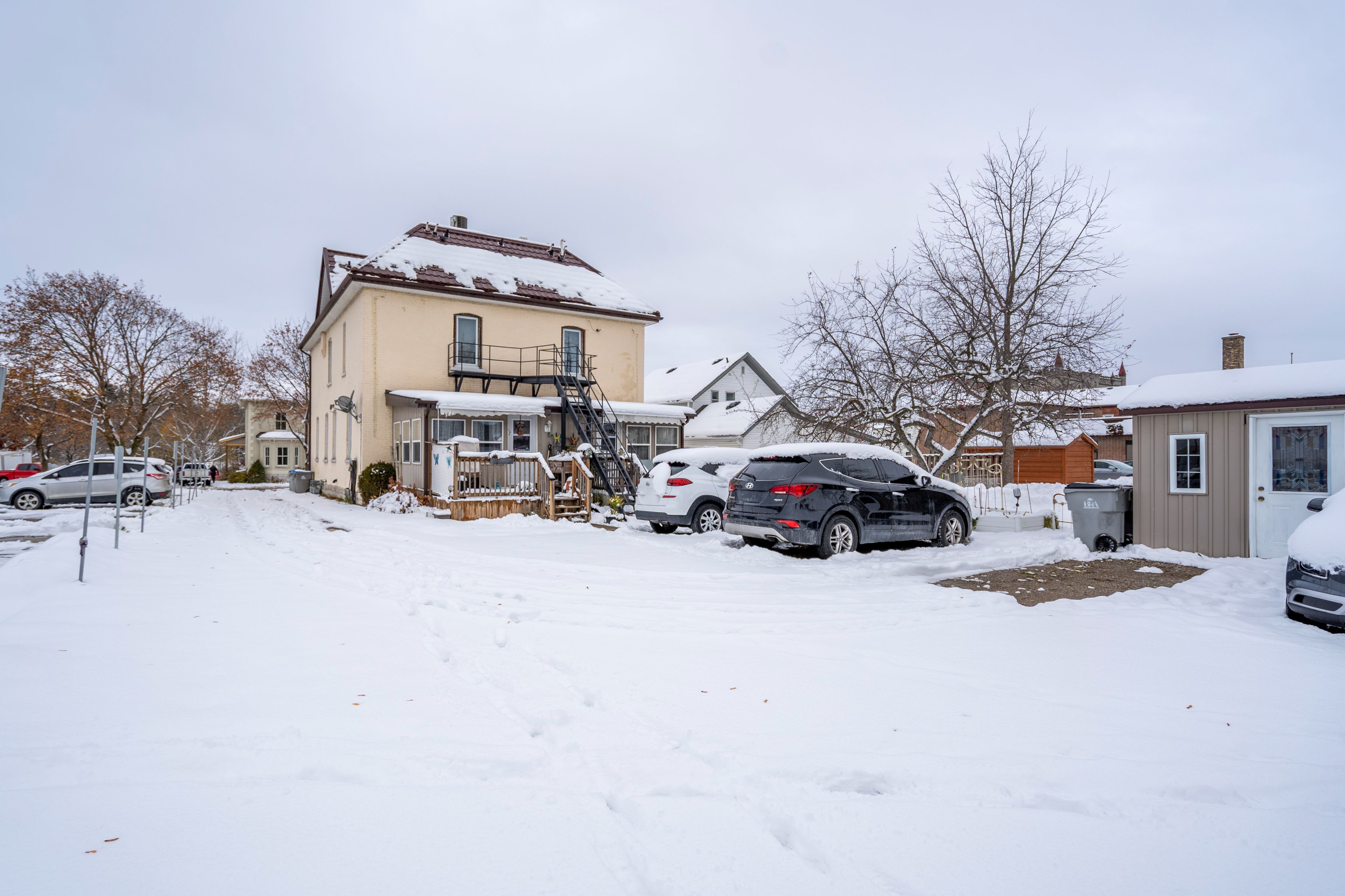 A solid brick fourplex offering a reliable income stream with significant upside potential. The property includes two main-floor one-bedroom units, each featuring in-suite laundry, a bright rear sunroom, and access to a private deck. At the back of the property you'll find dedicated parking for tenants, along with a small storage shed. The upper units span the second and third storeys and each provides three bedrooms, in-suite laundry, and its own forced-air gas furnace and central air system. All four units are separately metered for water, gas, and hydro, making ongoing management straightforward. The building has been well cared for, highlighted by a durable steel roof. Two hot water heaters are owned and two are on rental agreements through reliance. All tenants have been long-term, with room for rent growth over time. This is a strong opportunity to add a stable and well-structured multi-residential asset to your portfolio in a desirable small-town setting.