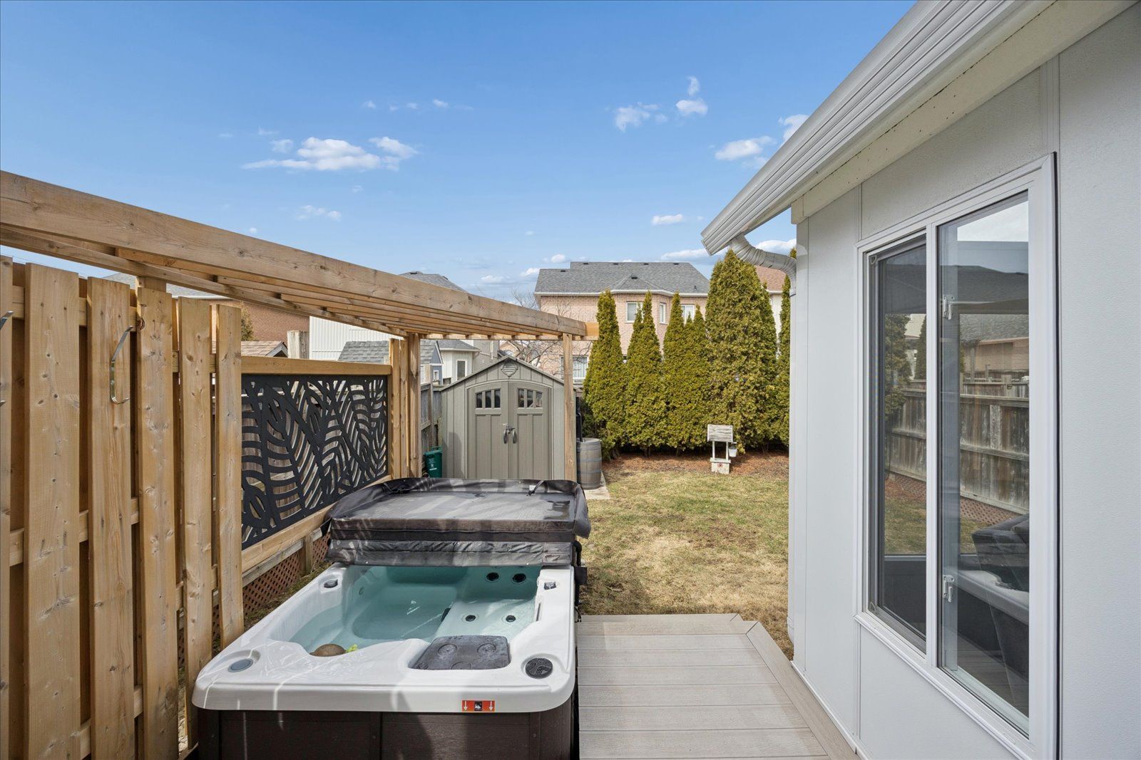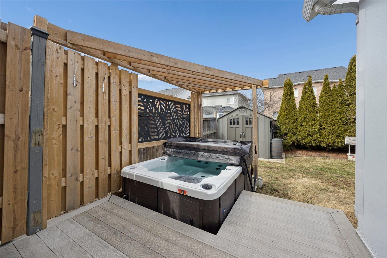 • Private backyard oasis with a composite deck and hot tub.