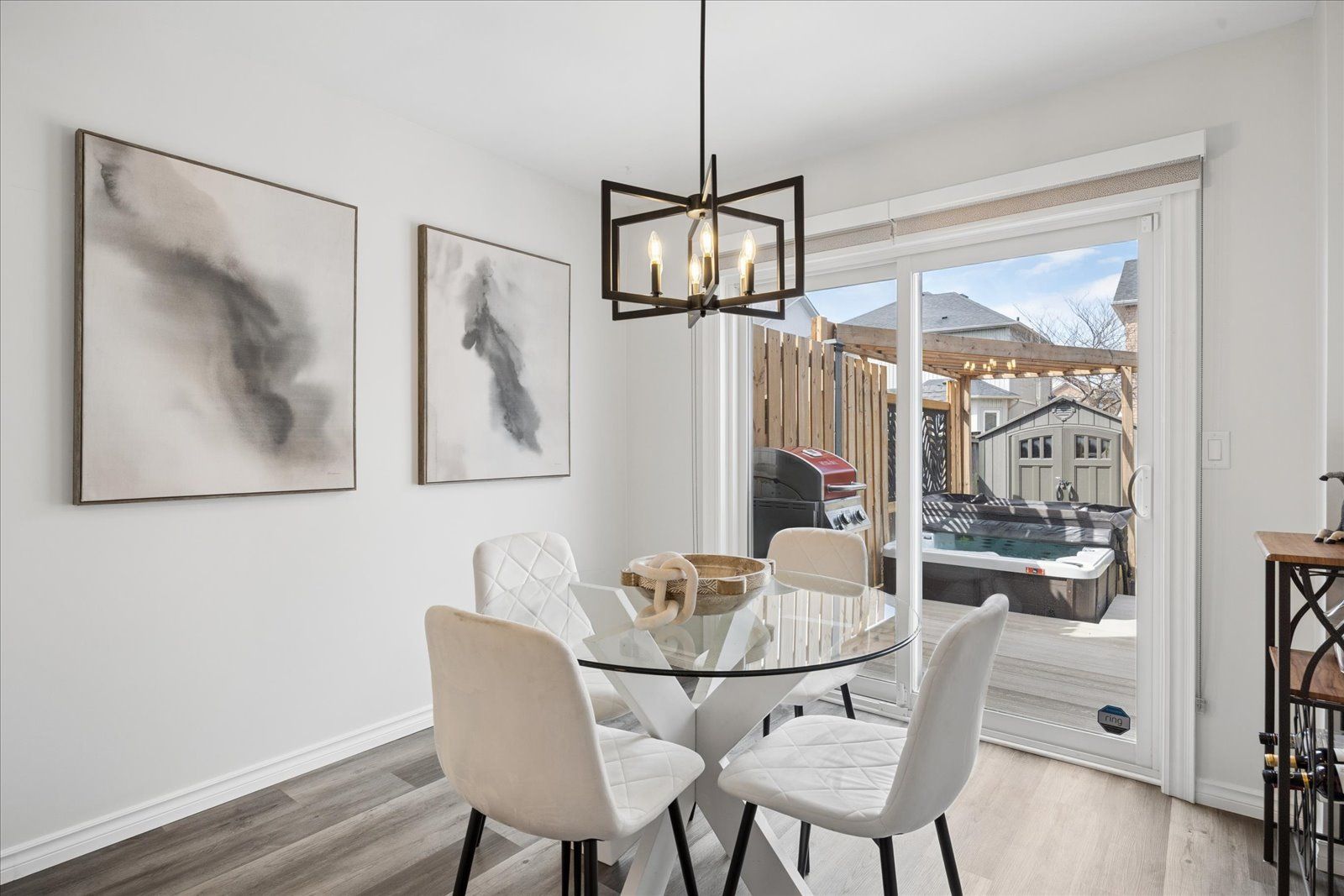 A true end-unit flooded with natural light, this beautifully upgraded townhome offers approx. 2,500 sq. Ft. Of finished living space designed for both everyday living and effortless entertaining. Tucked on a quiet street in sought-after brooklin, the charming brick exterior and inviting front porch set the tone for this 3-bedroom, 3-bathroom home. The main floor delivers a very spacious, bright and functional layout including an open concept living and dining room combination - perfect for hosting or unwinding at the end of the day. At the heart of the home, the sleek kitchen features quartz countertops and backsplash (2025), offering a modern, polished feel without sacrificing function. Then there's the sunroom - an absolute standout! Featuring vaulted ceilings and skylights, this light-filled space feels open, airy, and completely separate from the rest of the home in the best way. Morning coffee, evening wine, or a quiet moment in the sun... This is where the home really hits different. Step outside and it only gets better. A private backyard oasis awaits with a composite deck, pergola, and hot tub-built for entertaining, relaxing, and making the most of every season. Low maintenance, high impact. Upstairs offers three well-sized bedrooms and 3 bathrooms, including the primary retreat with walk-in closet and 4 pc ensuite. The fully finished basement adds flexible living space - ideal for a rec room, gym, home office, or guest zone. Featuring luxury vinyl plank flooring throughout the main level, fresh paint, and modern updated light fixtures, every detail feels current, clean, and dialed-in. Within walking distance to amazing schools, parks and downtown brooklin, and an easy commute just minutes to the 407/412 hwy, this one is not to be missed!