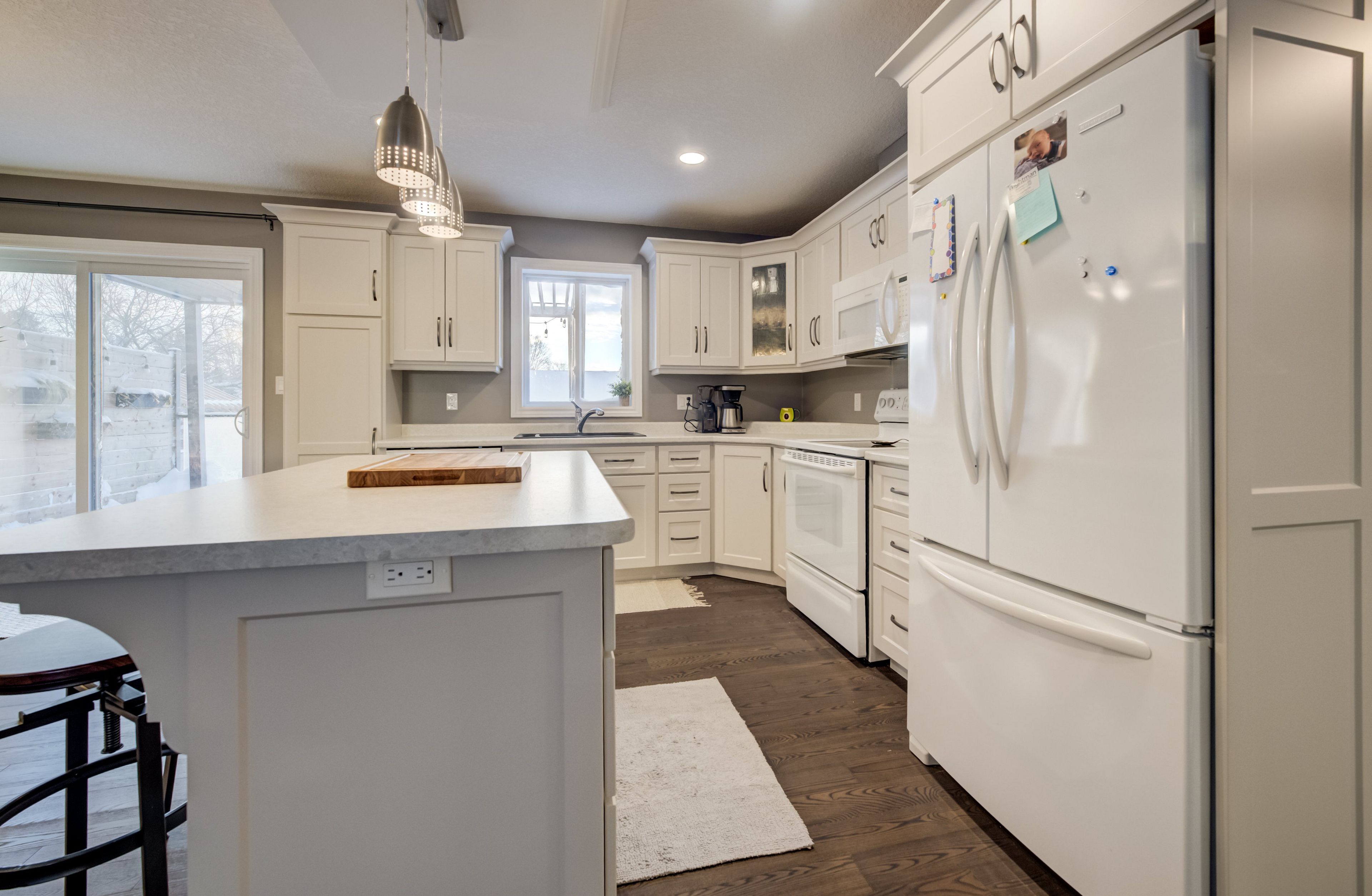 Built in 2021, this thoughtfully designed 1,360 sq. Ft. Bungalow is ideally located in the welcoming town of harriston and offers exceptional versatility for today's modern household. The main floor showcases a bright open-concept layout, highlighted by a tray-ceiling living room and a custom-designed kitchen that blends style with functionality. The dining area features sliding glass doors leading to a rear deck complete with glass railings and a pergola, perfect for entertaining or relaxing outdoors. Convenience is key with main-floor laundry and a mudroom entry connecting directly to the attached garage. The finished basement adds even more living space with a generous recreation room and a fourth bedroom. But wait-there's more. This home also features a fully equipped in-law suite in the basement, complete with one bedroom, a family room, an eat-in kitchen, a 3-piece bath, separate laundry, and a private entrance accessed from the garage via a walk-down staircase. Ideal for multi-generational living or added flexibility, this home truly delivers space, comfort, and smart design in one impressive package. Located on a corner lot near the entrance to harriston greenway trail, this lot will allow a shop to be built easily with a second driveway without compromising yard space. This complete package awaits you to call it home.