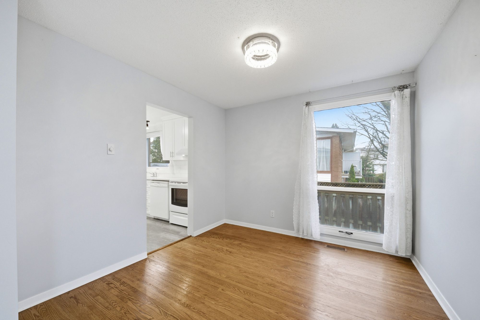 • Bright main floor with spacious living and dining areas.
