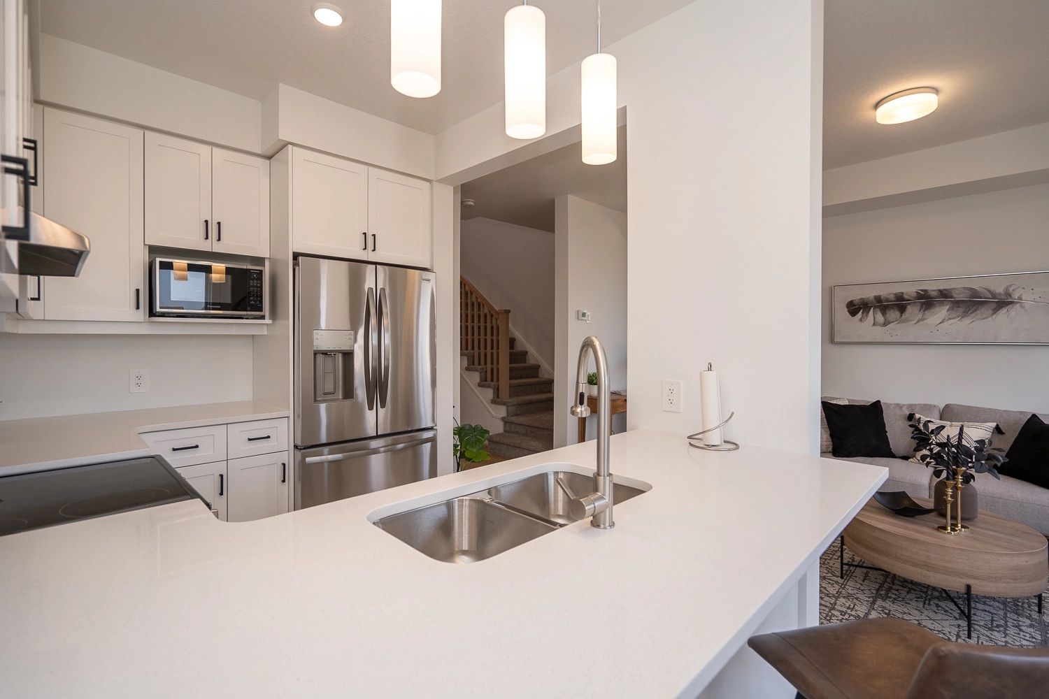 **new price - save the hst!** become the first owner of 8-690 broadway, a stylish brand new townhouse, in a premium location by sheldon creek homes! This modern, move-in ready, 2-storey end-unit offers premium finishes throughout, its own private driveway, and a prime location closest to the community park and walking paths. Step inside to a beautifully designed main floor featuring 9' ceilings, luxury vinyl plank flooring, and an open-concept layout ideal for everyday living and entertaining. Enjoy an xl 17' x 10' deck just off the great room - perfect for outdoor relaxation. Upstairs, discover a spacious primary suite with a 3-piece ensuite and walk-in closet, plus two additional bedrooms and a 4-piece main bath. Located in the vibrant 690 broadway community, offering a parkette, access to local trails, visitor parking, and peaceful green space behind. 7-year tarion warranty, a/c, paved driveway, and limited lifetime shingles included - an exceptional opportunity to own brand new.