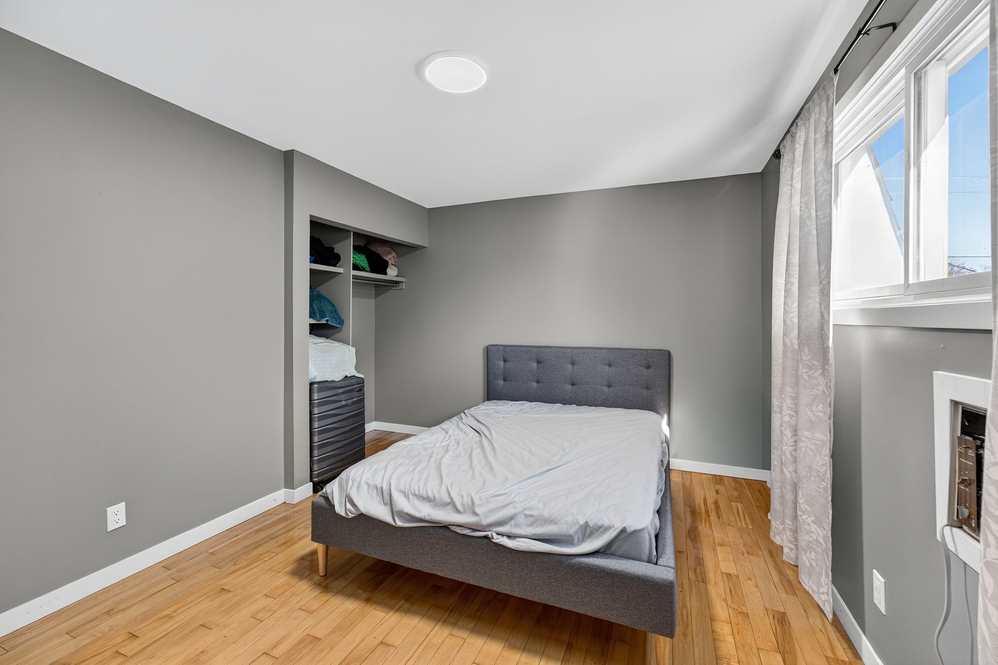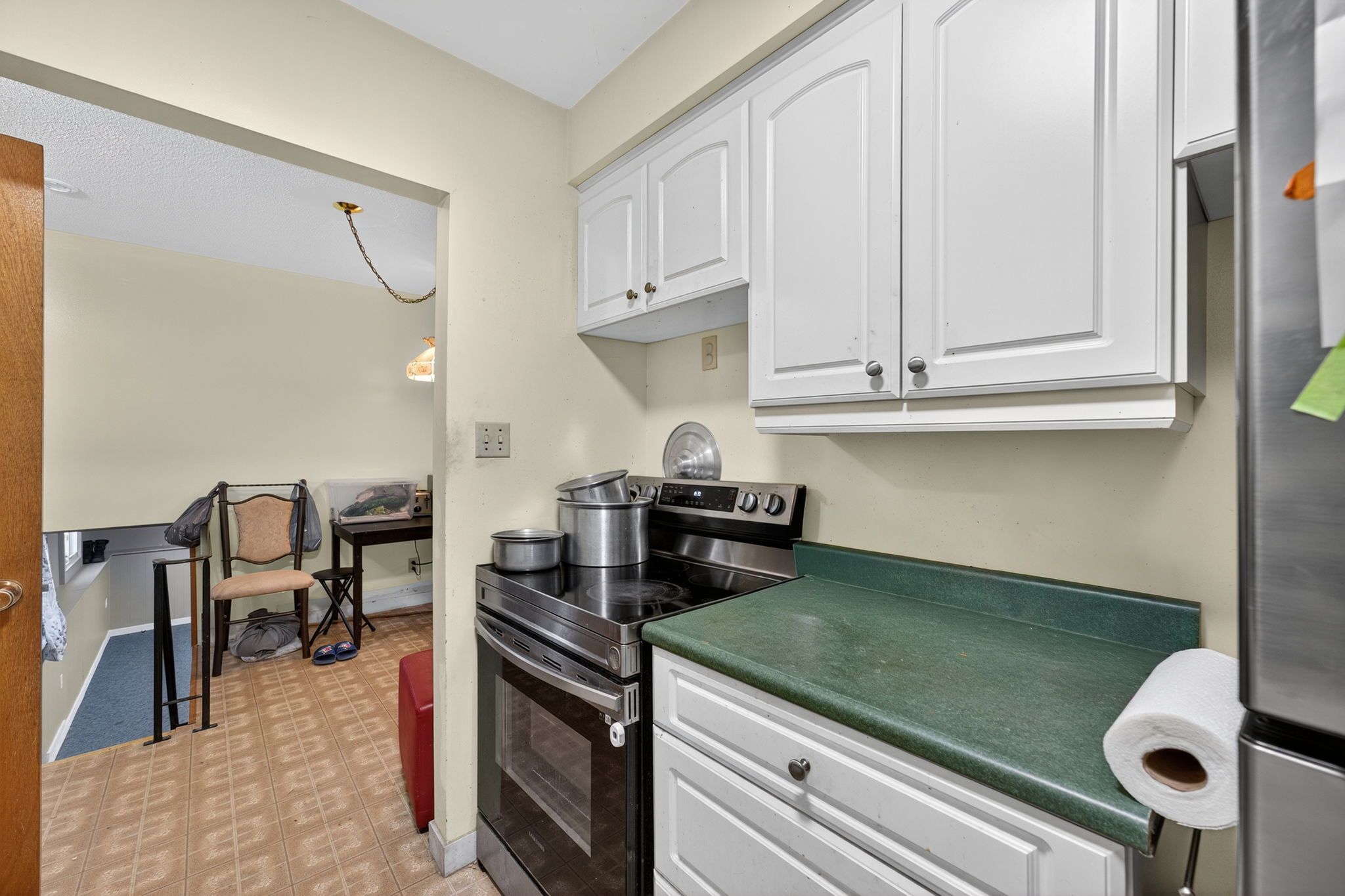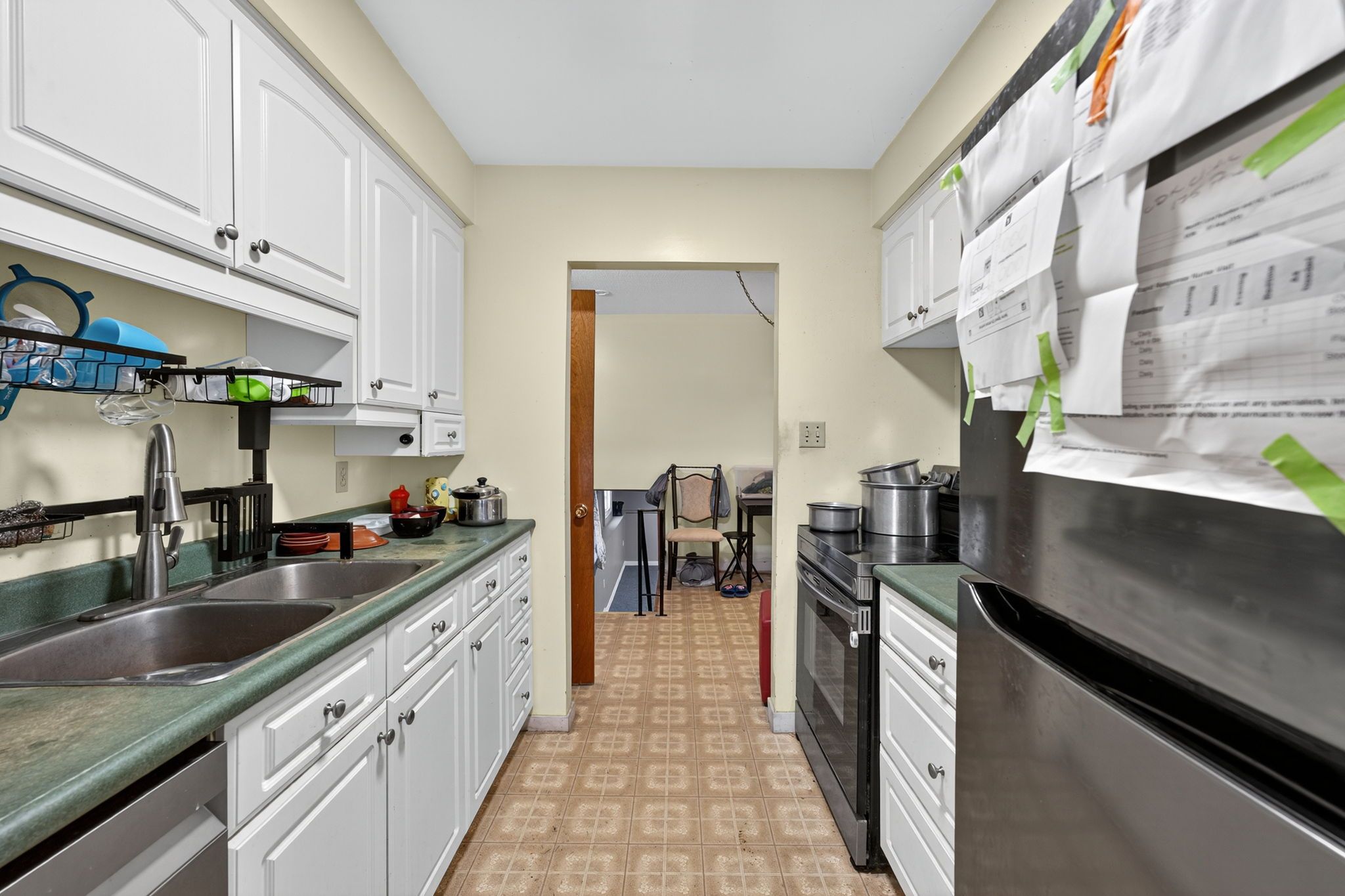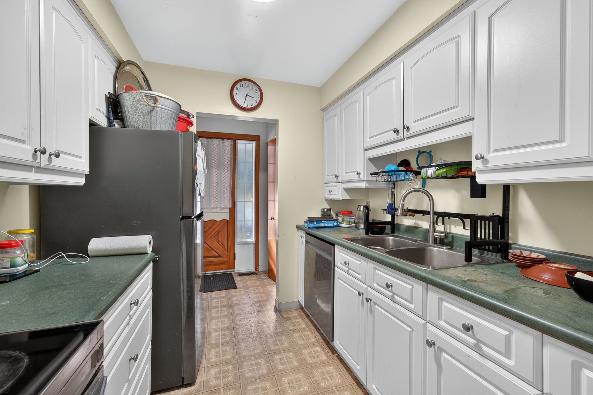 • Stylish galley kitchen and modern bathroom vanity for practical living.