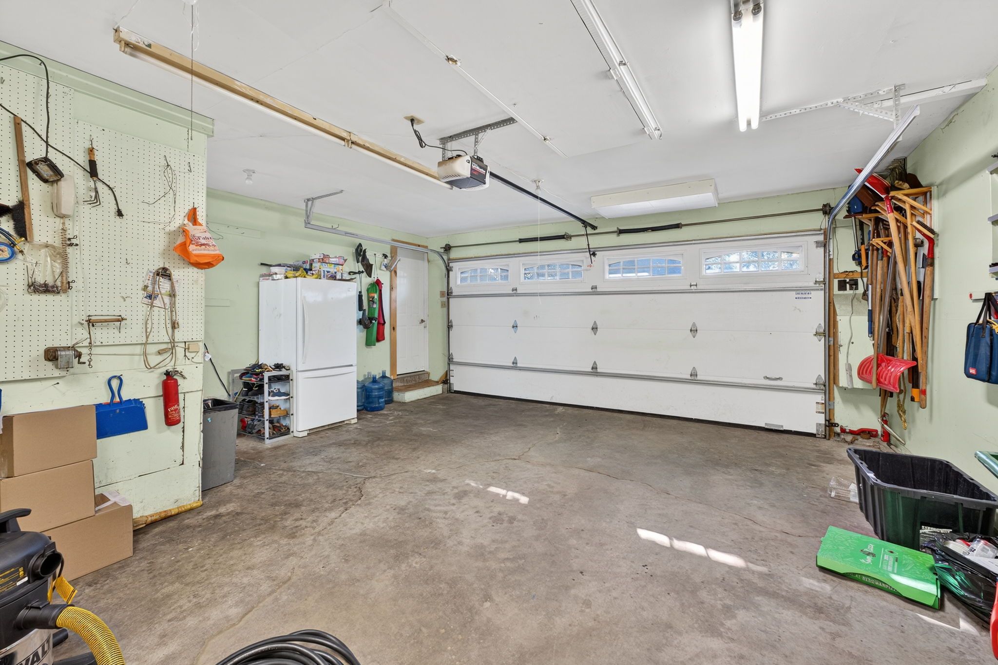 • Attached two-car garage with a built-in workbench for convenience.