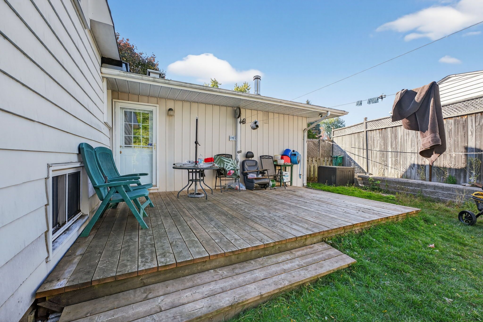• Fully fenced backyard with a deck, great for family gatherings.