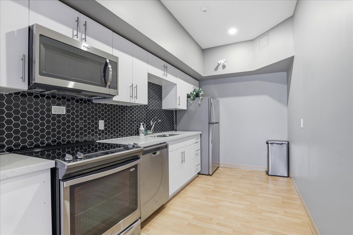 Welcome to midtown lofts, where modern condo living meets unbeatable convenience. This thoughtfully designed 1 bedroom + den, 1 bathroom suite offers a functional layout ideal for professionals, first-time buyers, or investors. The versatile den is perfect for a home office or guest space, while the open-concept living and dining area is ideal for everyday living and entertaining. The unit features upgraded dimmable pot lights in the main living area and den, as well as stylish dimmable lighting over the kitchen island. The bathroom has been updated with a new light fixture, upgraded medicine cabinet providing additional storage, and modern shower fixture. Enjoy a quiet setting on the desirable side of the building away from king street, along with excellent sound insulation for added privacy. Ideally located between downtown kitchener and uptown waterloo, you're just steps to restaurants, cafés, shopping, parks, and transit, with easy access to the ion lrt and major commuter routes. Amenities include a fitness centre, resident lounge, outdoor bbq terrace, and bike storage. This unit includes an underground parking space and storage locker. A fantastic opportunity to enjoy low-maintenance living in one of kitchener-waterloo's most connected communities.