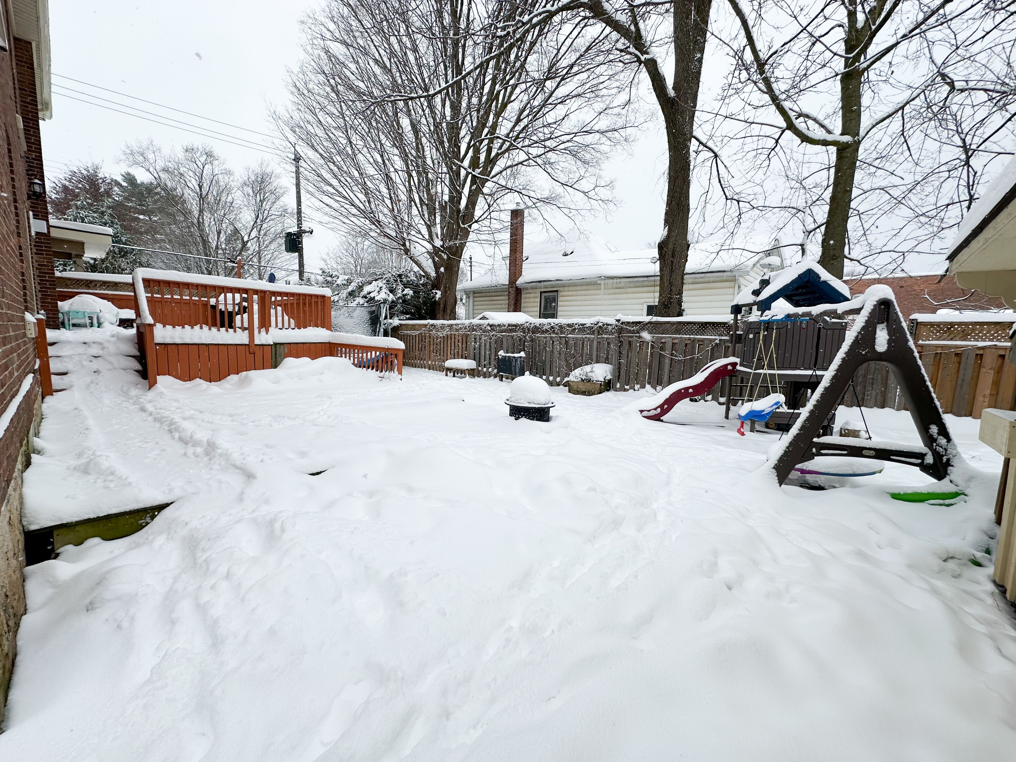 • Private, fully fenced backyard featuring a two-tier deck for hosting.
