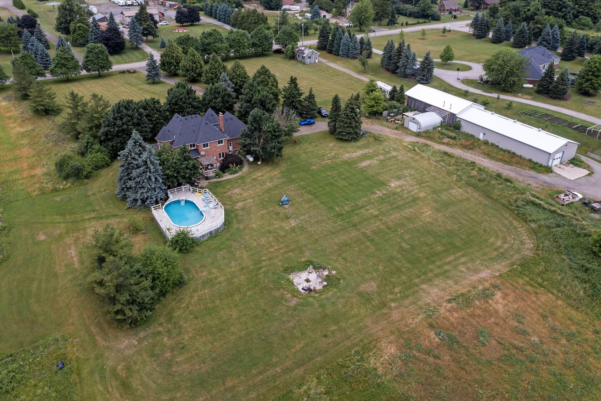 Welcome to your dream country retreat in desirable rural flamborougha rare opportunity to own over 22 acres of beautiful land featuring a 2,600 sq ft custom-built home, a 4,500 sq ft commercial-grade shop, and your own private oasis complete with a saltwater propane-heated pool and hot tub. The home boasts a bright eat-in kitchen with abundant cabinetry, a functional island, and walkout to the deckperfect for indoor-outdoor living. The main floor offers hardwood flooring throughout, a formal dining area, a cozy family room with a wood-burning fireplace, a dedicated office, powder room, and mudroom. Upstairs, youll find four generous bedrooms, including a spacious primary suite with a walk-in closet, separate sitting area (ideal as a second office), and a luxurious 5-piece ensuite. The partially finished basement includes laundry, sump pump, and a convenient walk-up to the backyardgreat for in-law potential. The massive shop is ideal for entrepreneurs, currently set up for a fixture business and features in-floor and forced-air heating, an office, bathroom, 200 amp service, its own well and septic, and large overhead doors with direct road access. Zoned a2 with special exception, this is a truly unique property offering both lifestyle and business potential in one incredible package.