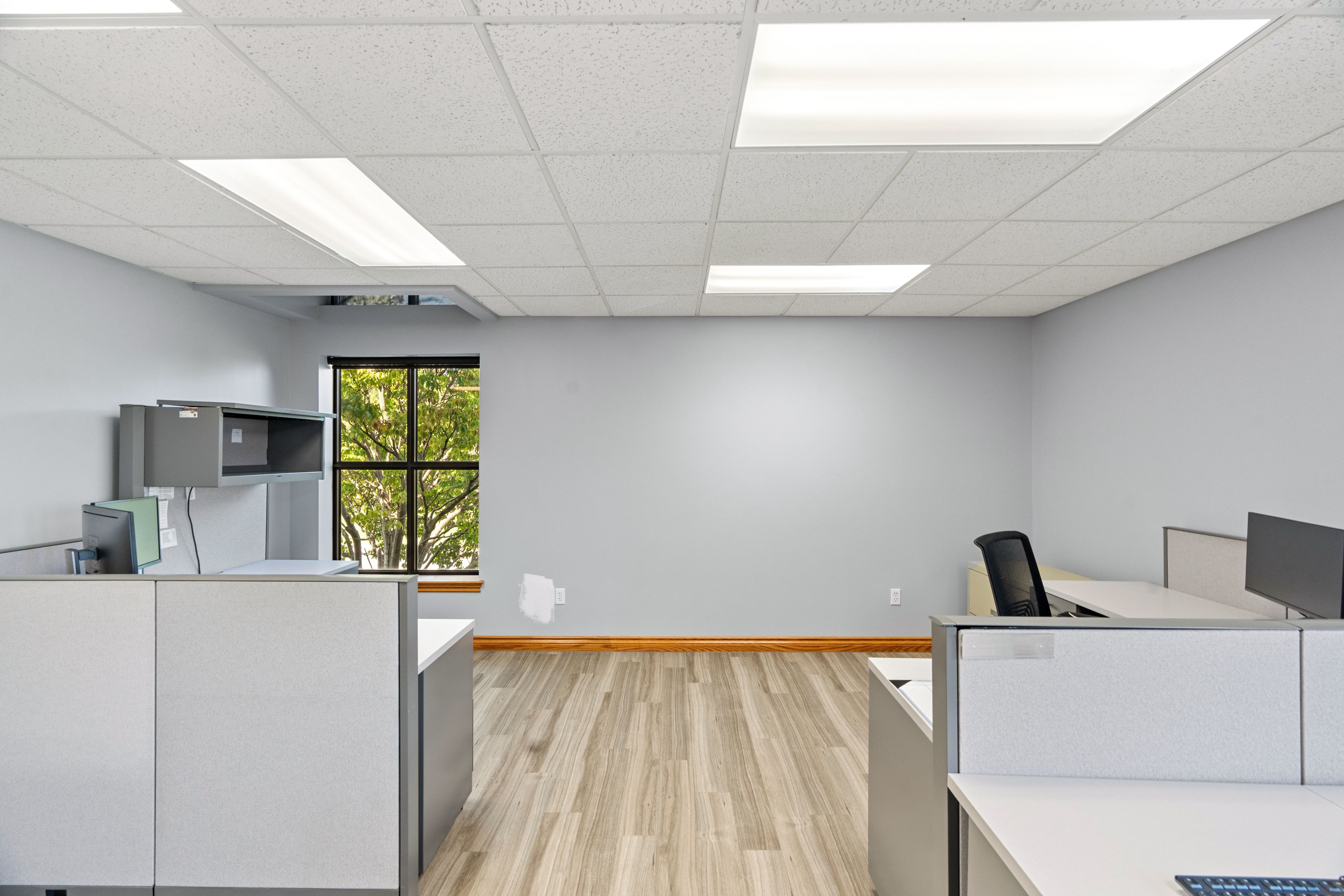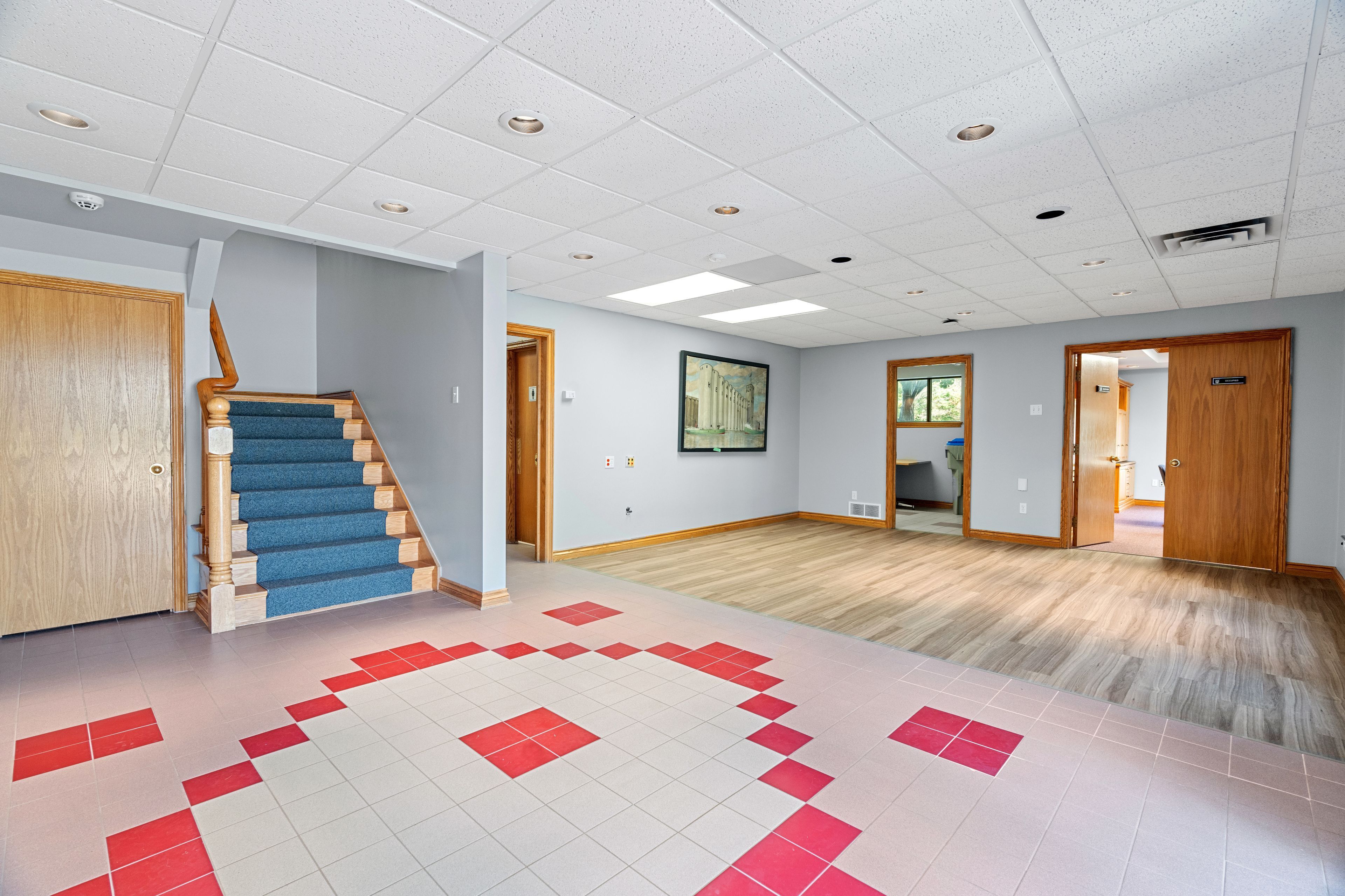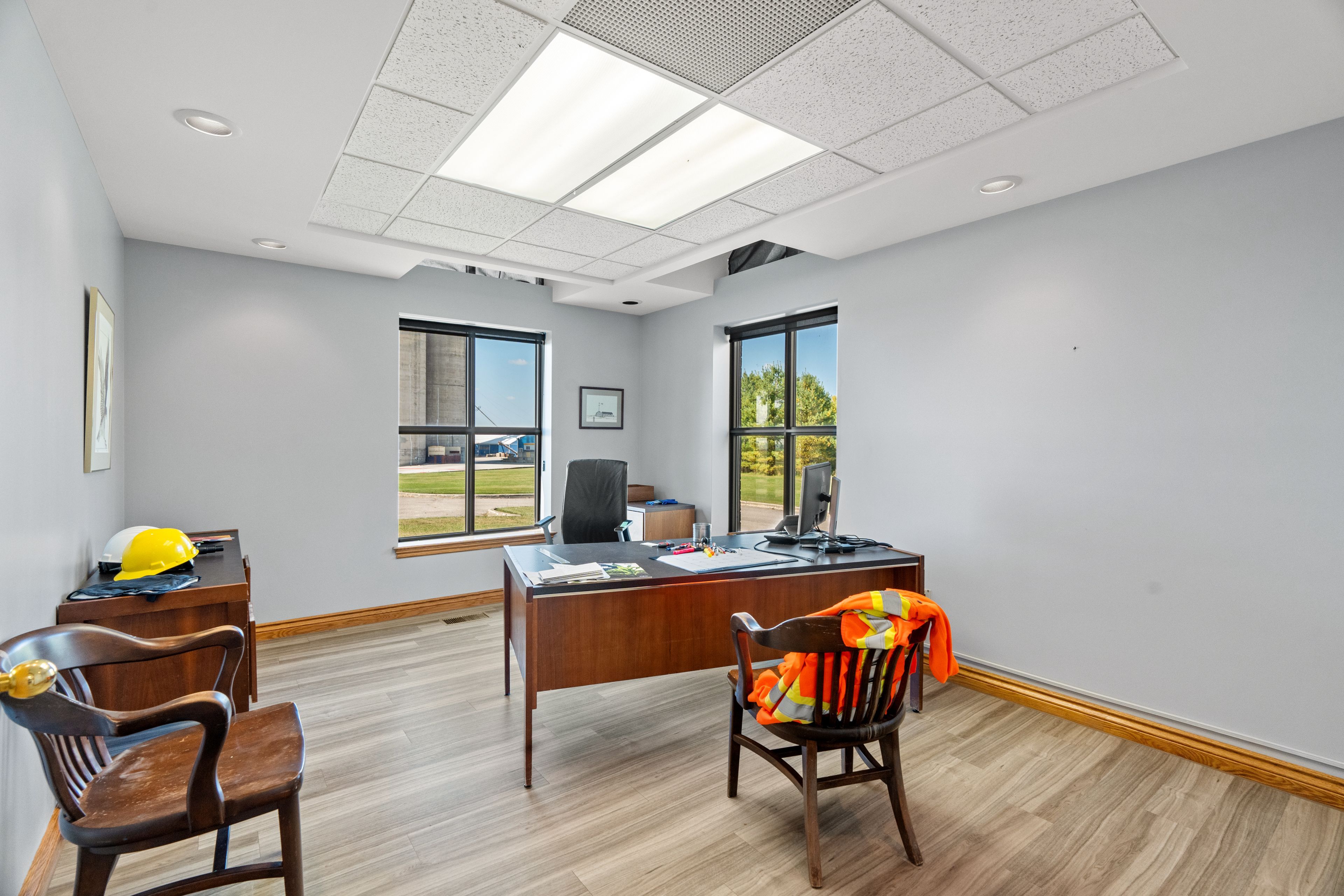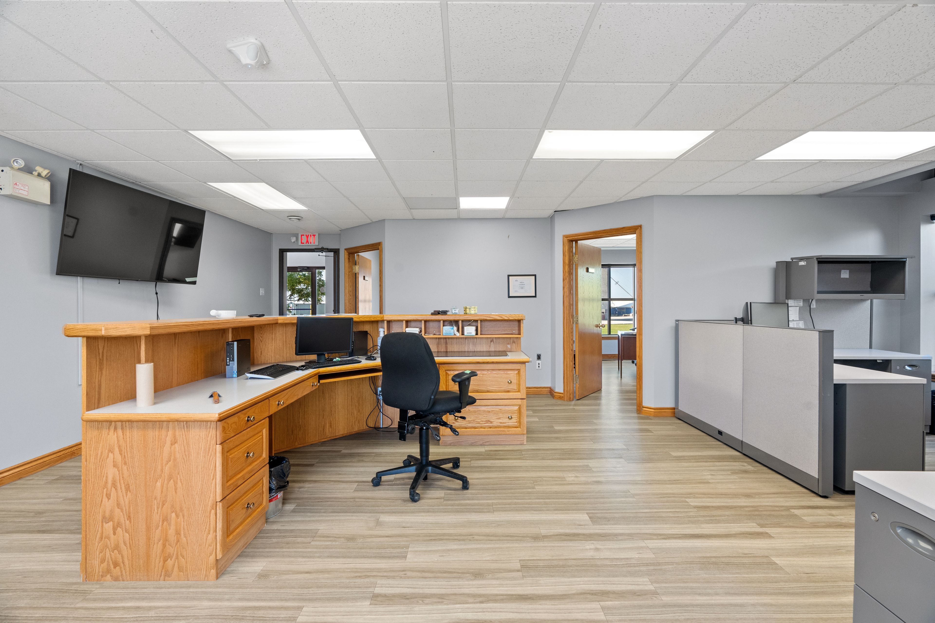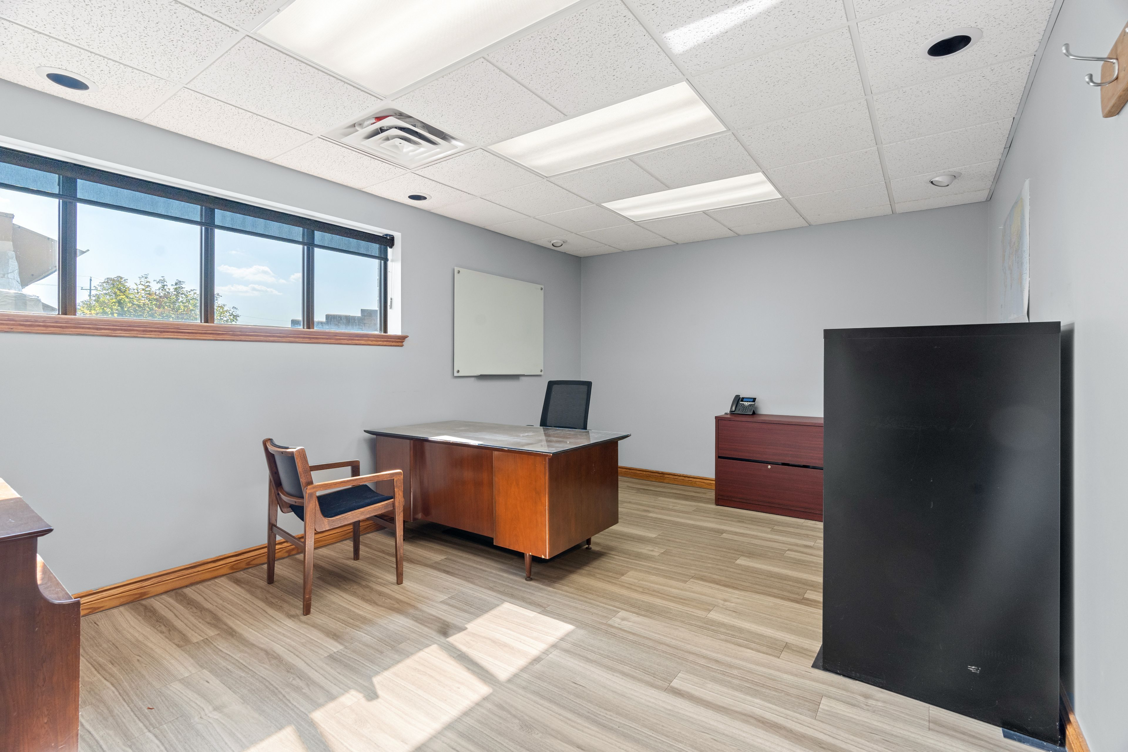 • Multiple private offices and a spacious boardroom with custom cabinetry.