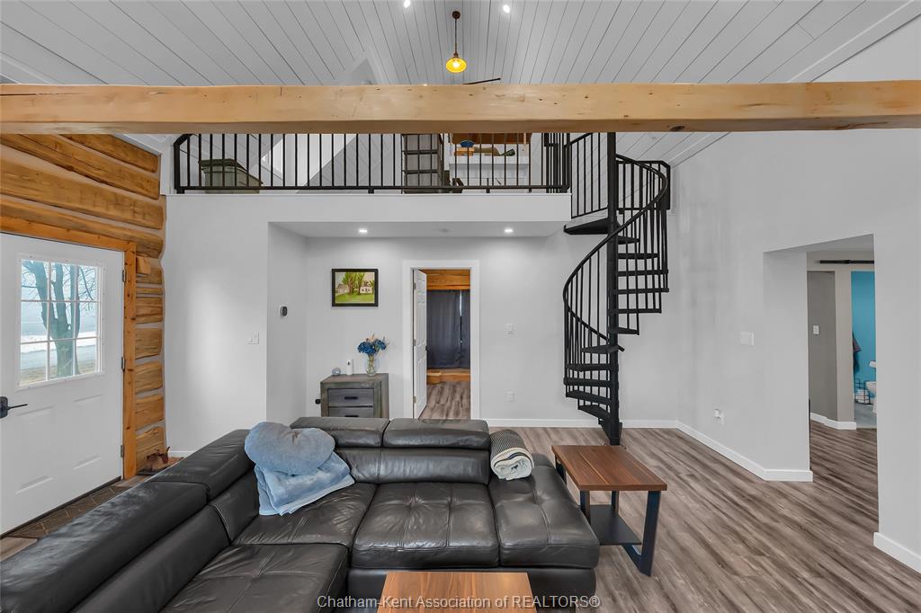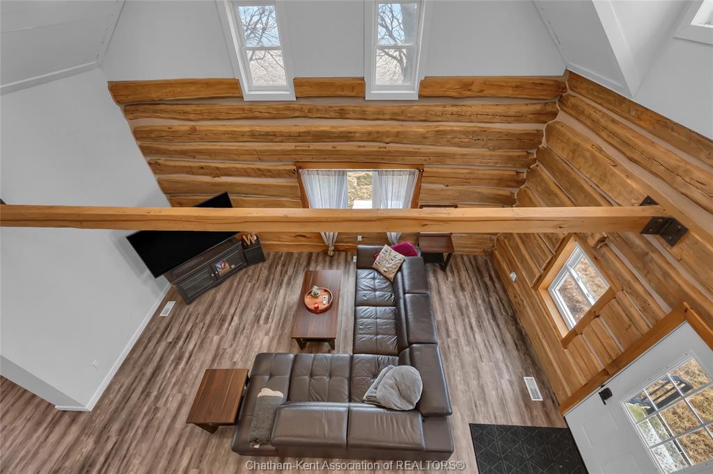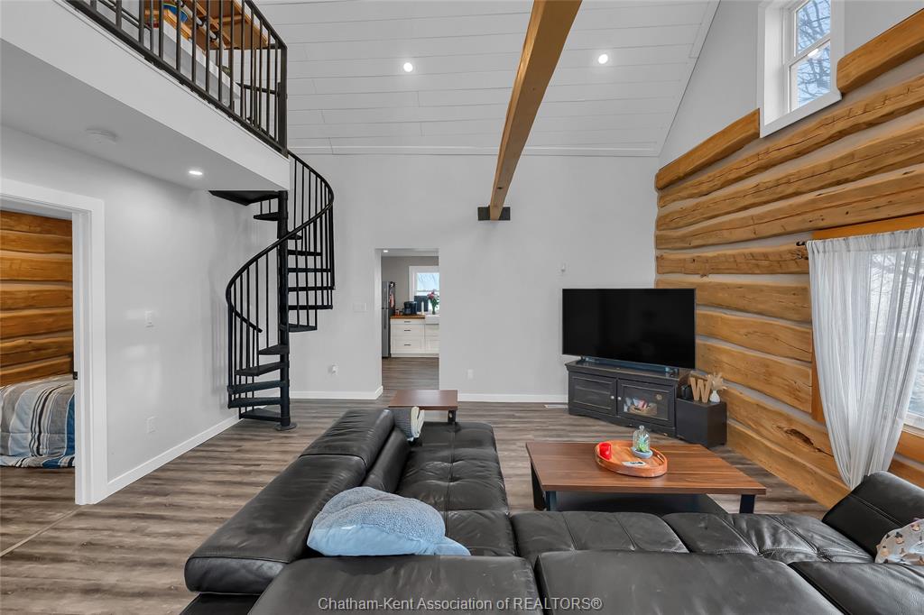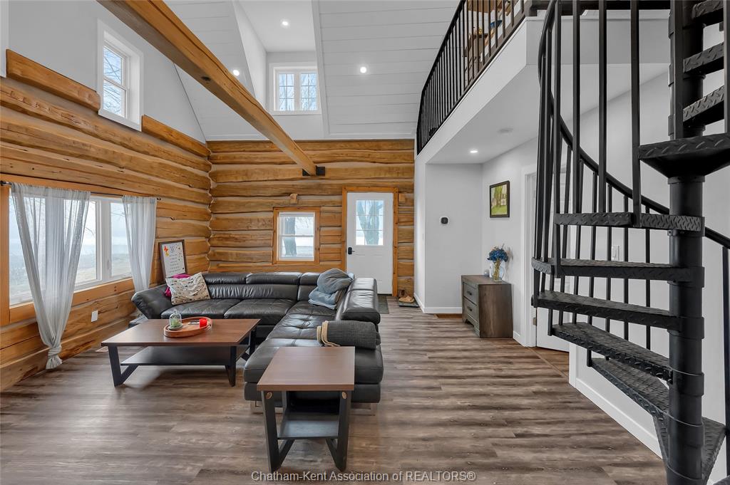 A rustic rural retreat just outside of pain court. Enjoy panoramic vistas of the countryside on this half acre rural lot. The one bedroom, one bathroom home features exposed log walls with spiral staircase to the bonus second level loft area. Spacious eat-in kitchen with farmhouse apron sink and and back-lit cabinets. 3pc bathroom with shower and side entrance off basement stairs. Updated furnace and ac and owned hot water heater. Basement has plenty of room for storage as well as the laundry area. Home has updated roof and insulation, siding and windows. Double car sized detached garage, has lots of potential for hobbyists. Save thousands per year on property taxes and enjoy no neighbours, and great views from sunrise to sunset with this charming rural property.