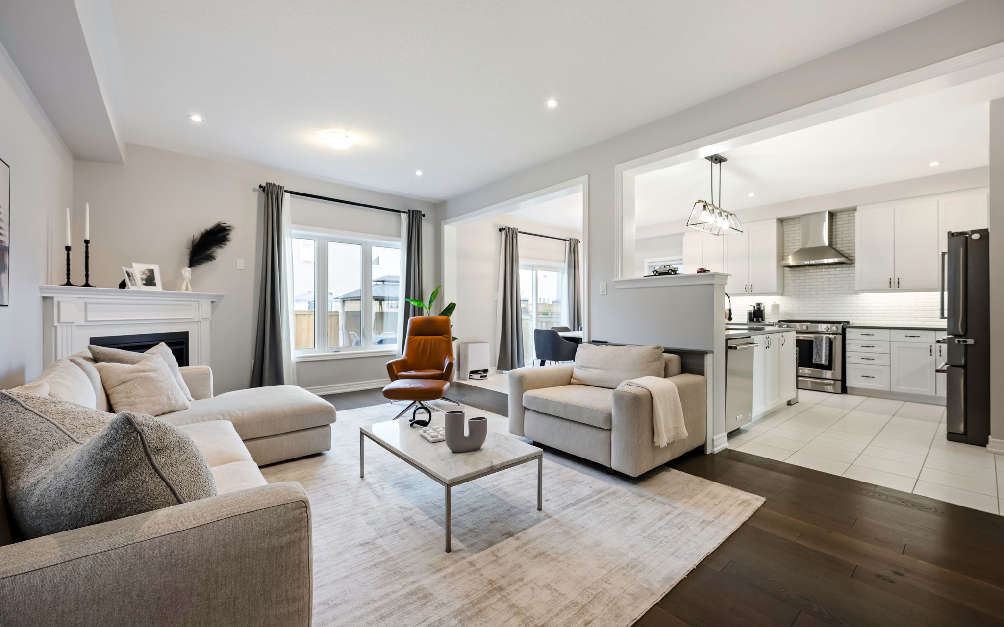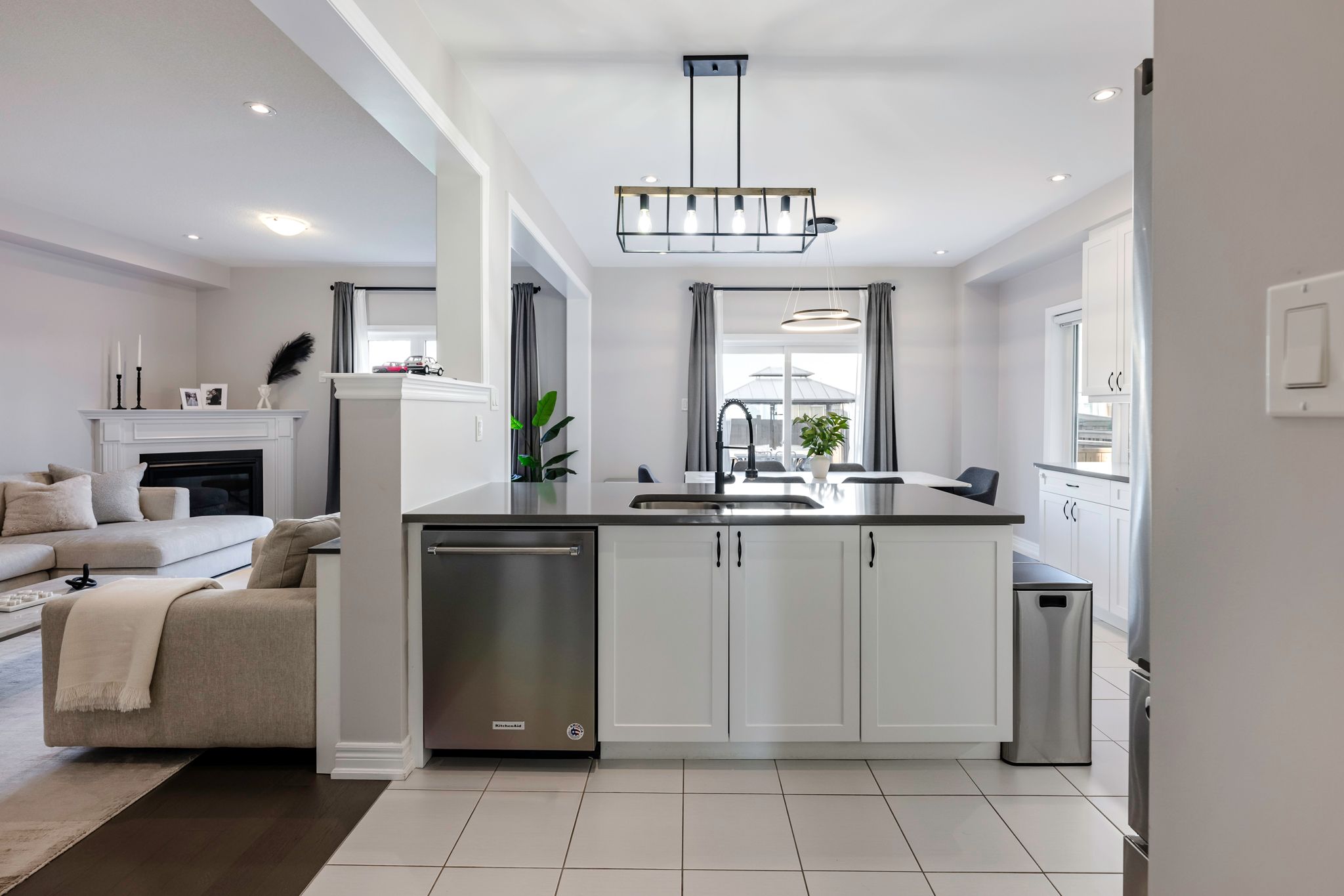 Where modern design meets small-town charm in shelburne's sought-after hyland village. Set on a premium lot with no neighbours across the street and peaceful pond views, this beautifully maintained home offers the space, privacy, and lifestyle today's buyers are craving. Step inside to a bright, open-concept layout with engineered hardwood floors and thoughtfully placed windows that invite in natural light without compromising privacy. The crisp white kitchen features subway tile backsplash, stainless steel appliances, and a large island perfect for gathering, while the mudroom with laundry and direct garage access keeps everyday life running smoothly. Upstairs, you'll find three spacious bedrooms, including a standout primary retreat with two walk-in closets and a spa-like ensuite with glass shower, soaker tub, and extended vanity. The professionally finished basement adds incredible flexibility with a rec room, cantina, storage, and two stylish offices with smoked-glass doors. One includes a window, making it ideal as a fourth bedroom, guest space, or home gym. Outside, enjoy a fully fenced backyard made for summer nights, kids, and easy entertaining, all overlooking the calming backdrop of the stormwater pond. Move-in ready and designed for real life, this is the kind of home that just feels right the moment you walk in.