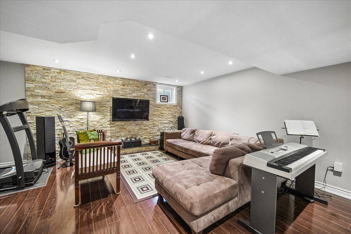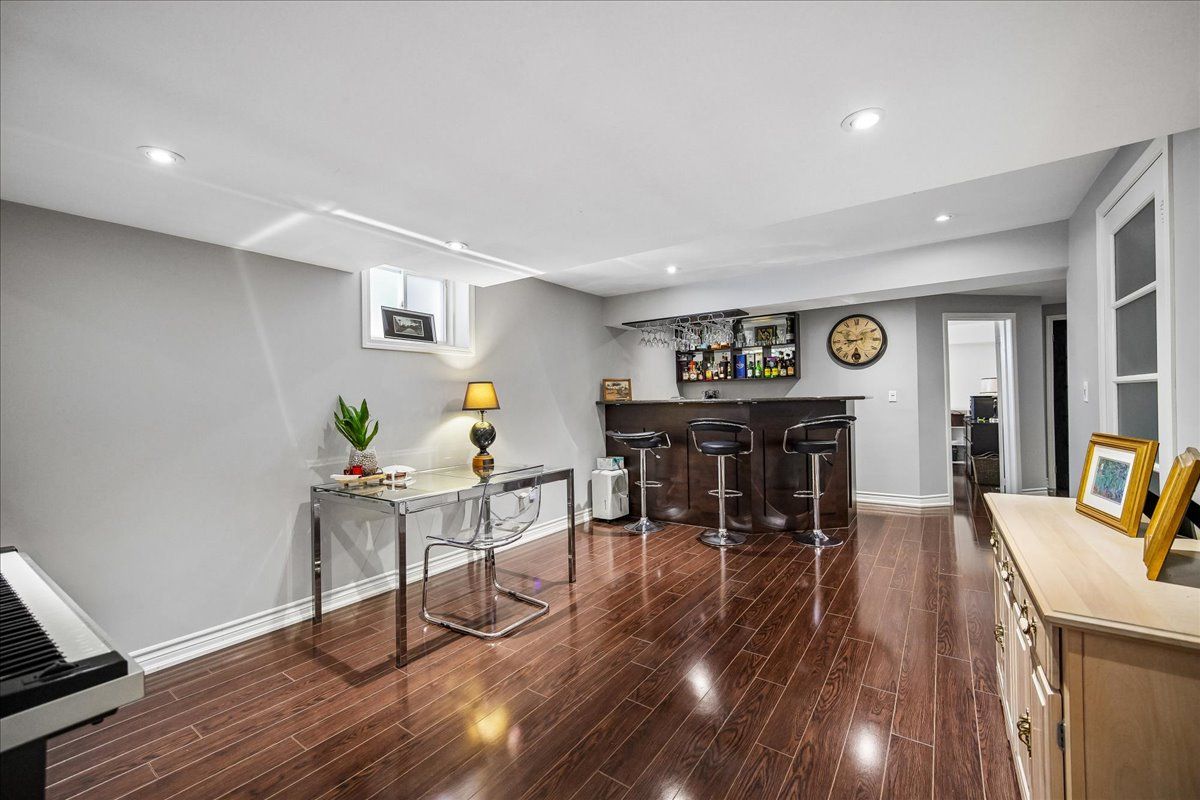 • Finished basement with a huge recreation room and bar area.