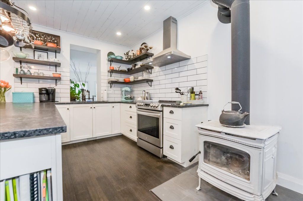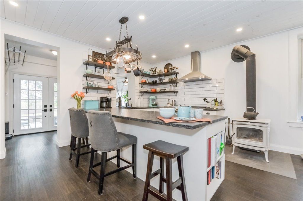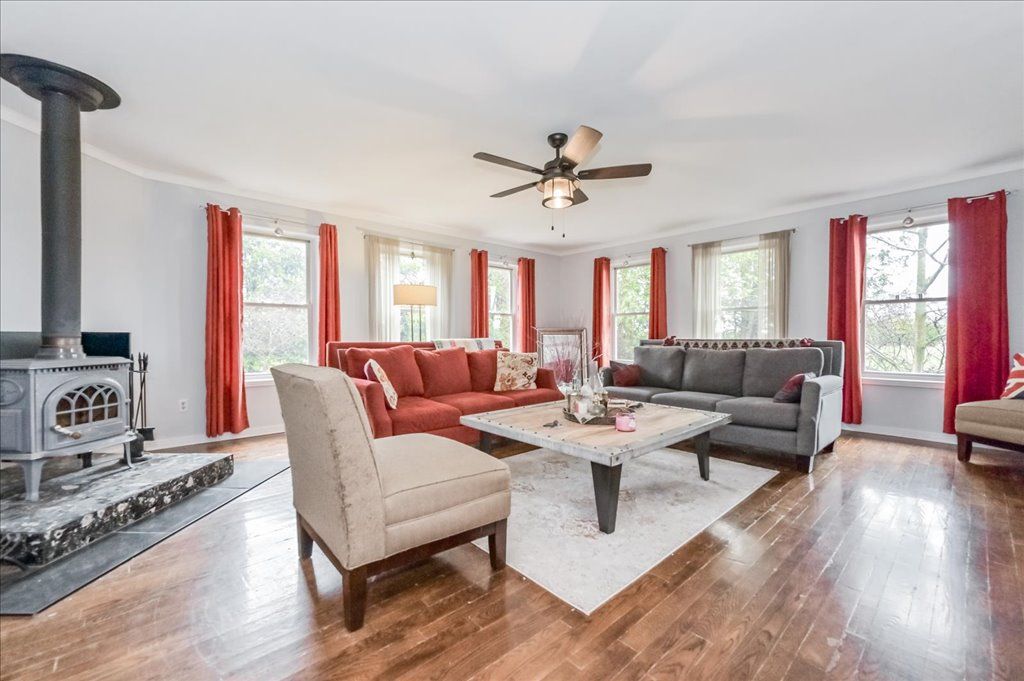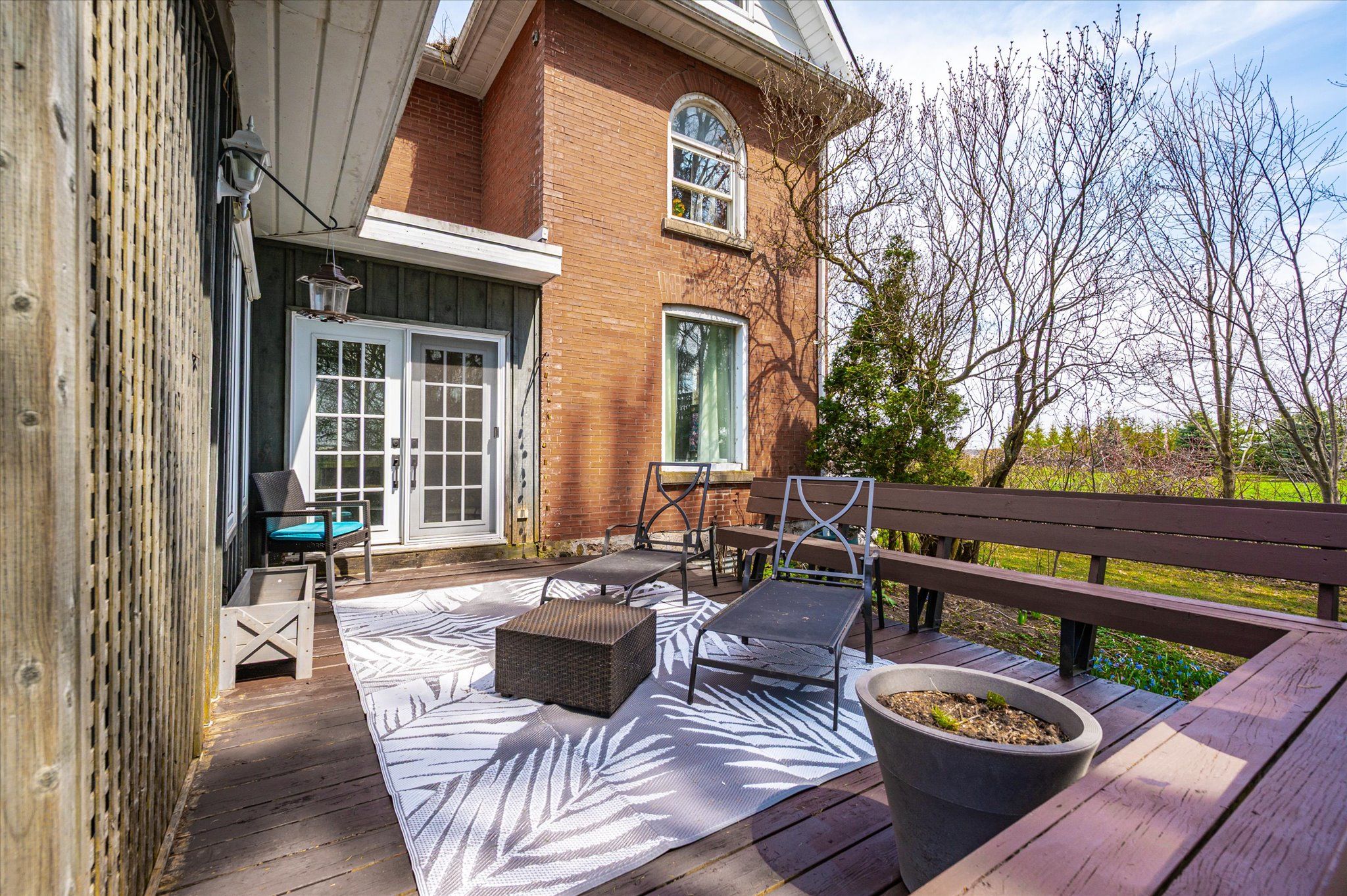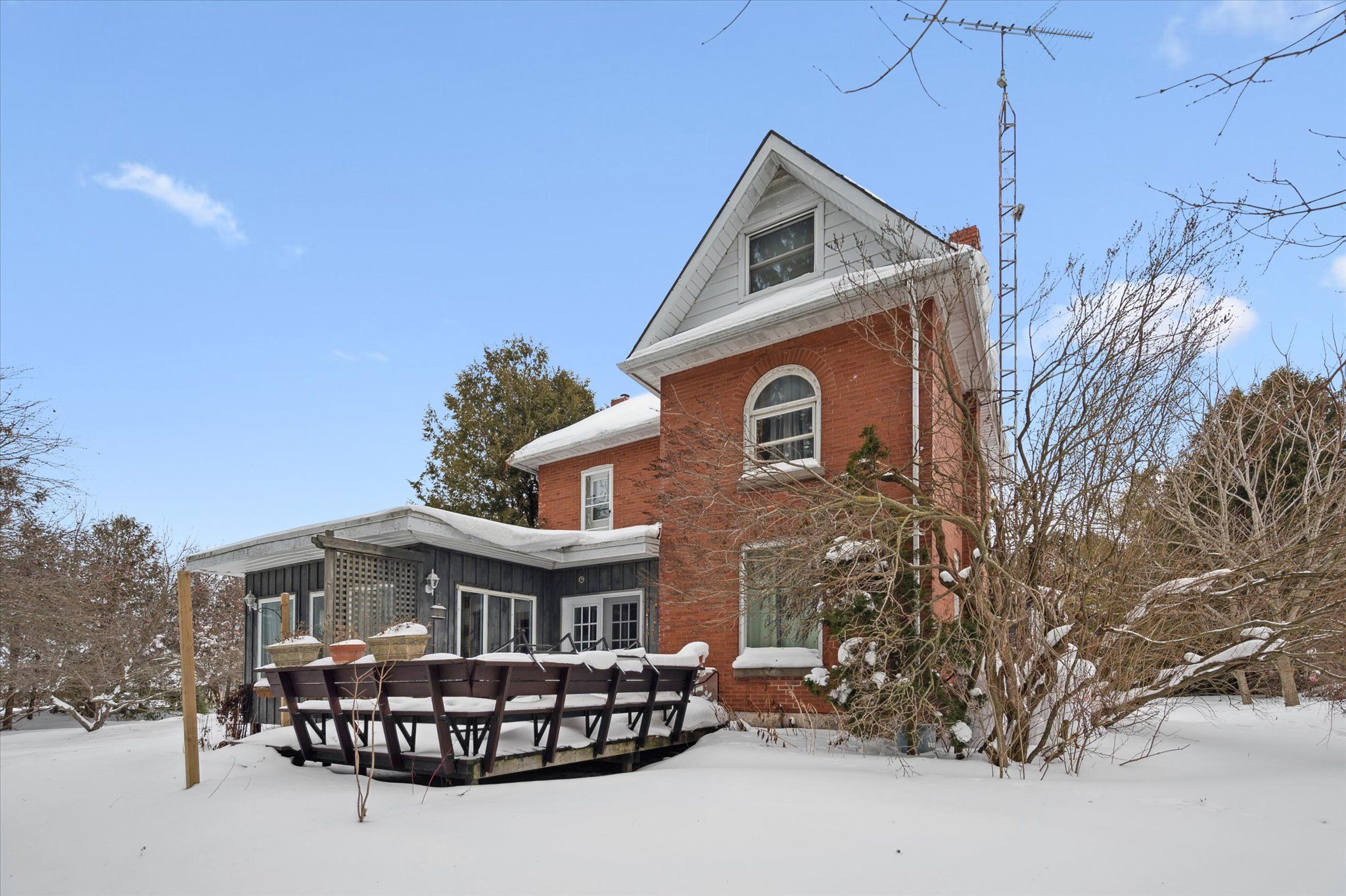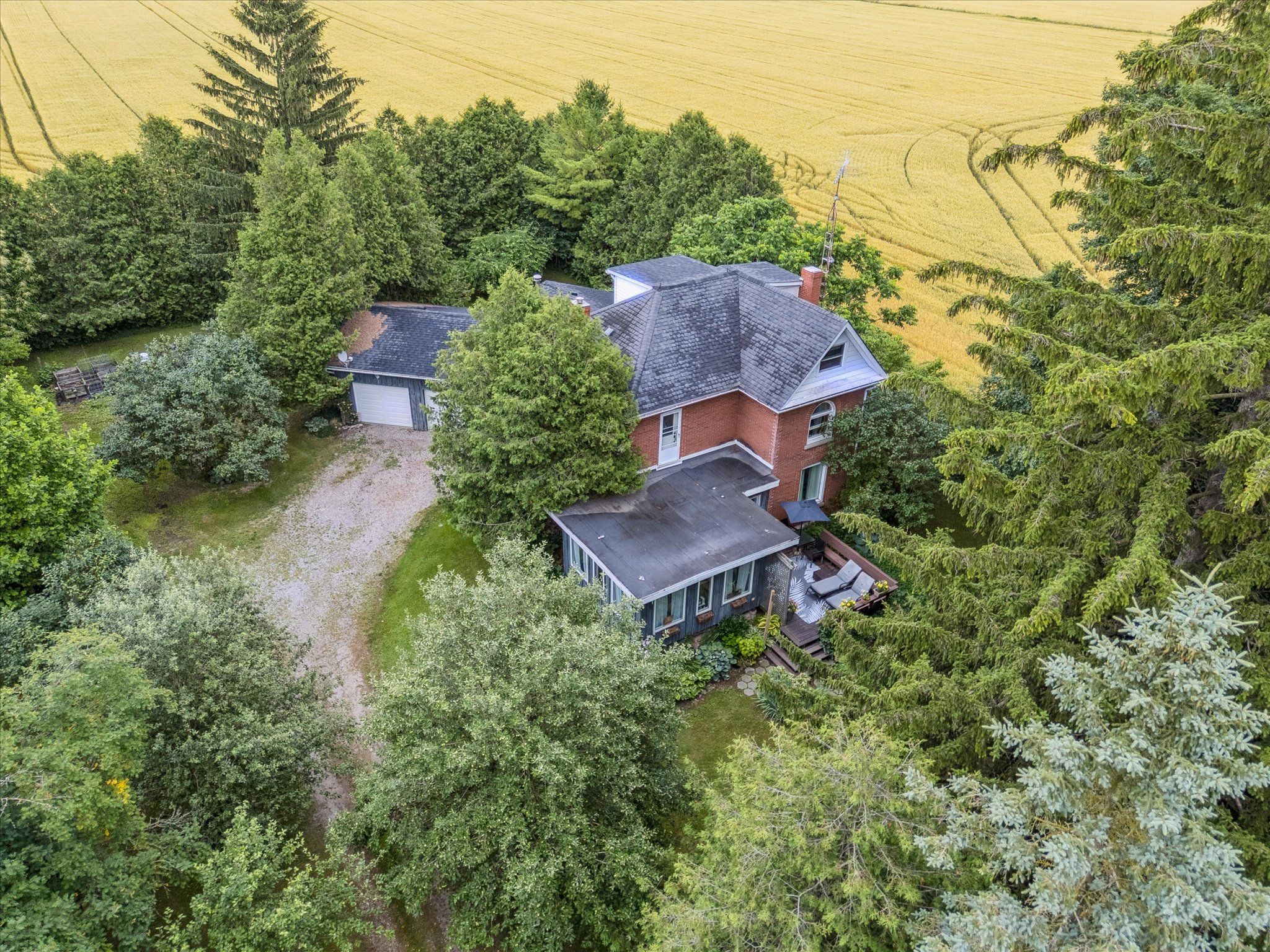 Secluded country living just minutes from town. This beautiful brick home is filled with character & timeless charm, board-and-batten additions, an attached two-car garage, and a private deck perfect for relaxing or entertaining. Set on 1. 3 picturesque acres down a private drive, the property comes alive each spring with established perennials, mature trees, and your own fruit and nut trees - offering endless potential for expanded perennial or vegetable gardens. Surrounded by farmers' fields, enjoy peaceful views and exceptional privacy. Enter through the garage into a convenient mudroom or via the side entrance to a spacious, welcoming tiled foyer. The large yet cozy living room features a charming wood stove, creating the perfect gathering space. Just off the living room, a dedicated office/study with a built-in library provides an ideal work-from-home retreat with lovely views of the side yard. The main floor also offers a three-piece bath with glass shower, & a practical laundry/oversized pantry combination, and a main floor bedroom/bonus room. Opposite this space is the stunning, recently renovated custom kitchen, thoughtfully designed for both everyday living and entertaining. A bright passthrough leads to the sunroom, bathed in natural light from numerous windows and equally suited as a spectacular dining room. Upstairs, the spacious primary bedroom features a large cedar-lined closet & separate linen closet-exceptional storage for a nearly century home. A beautifully renovated five-piece bathroom includes walk-in tiled shower, soaker tub, & double sinks. A charming third bedroom sits adjacent to the bathrm. The third-floor loft offers a versatile fourth bedroom or bonus space, ideal for a teenager's retreat, guest room, or playroom. Enjoy the comfort and peace of mind that come with updated electrical and a new propane furnace - all just five minutes to elora and two minutes to ariss. Discover how sweet country living can be when you're close to everything.