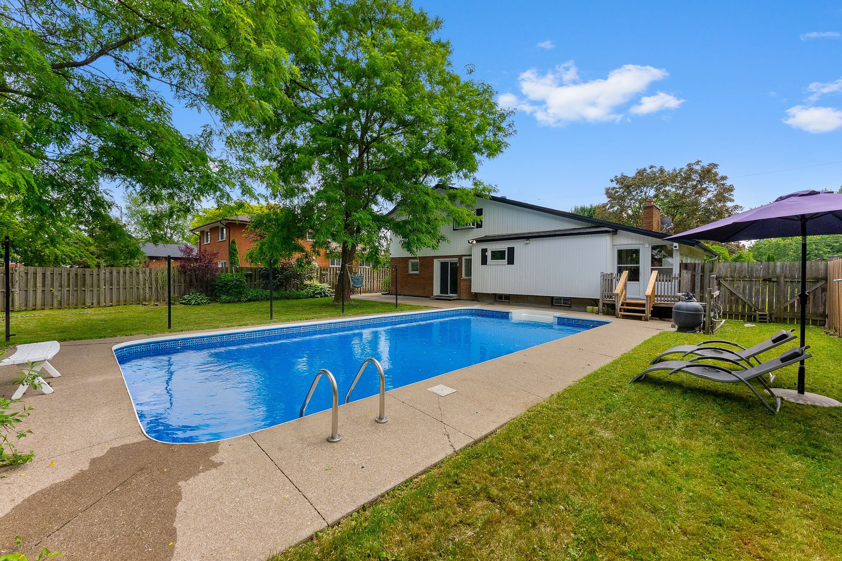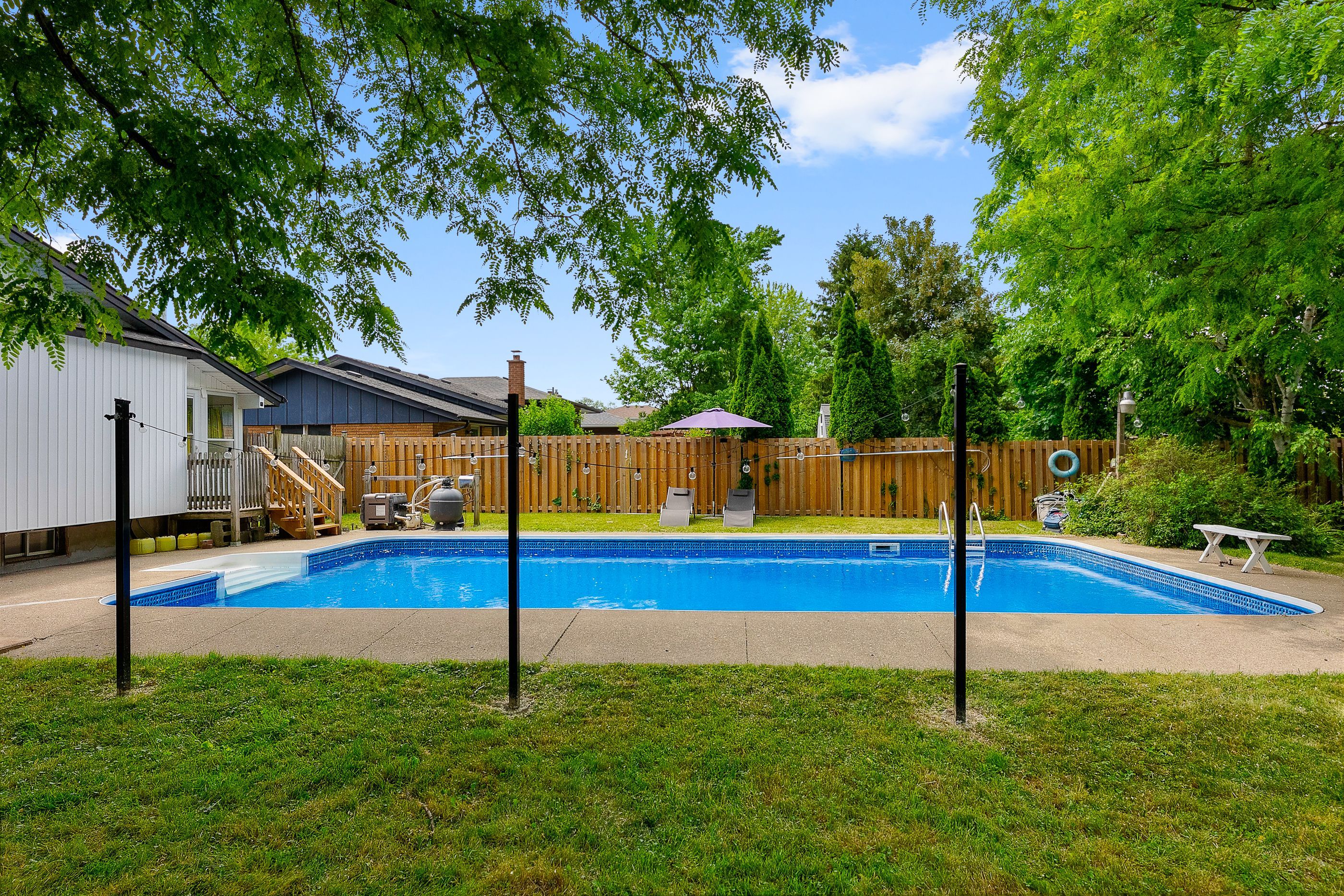 • Fully fenced backyard with heated in-ground pool, great for summer.