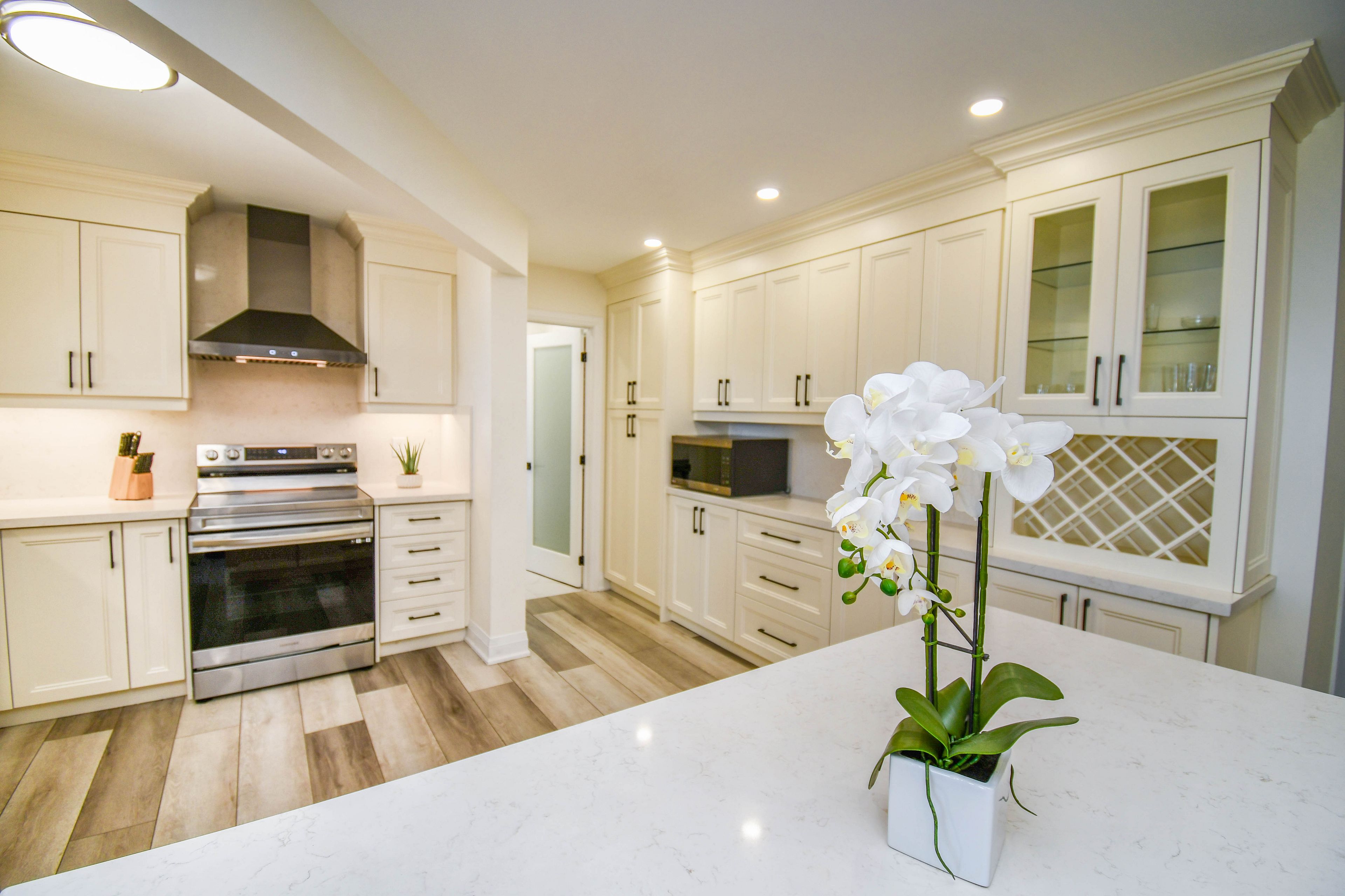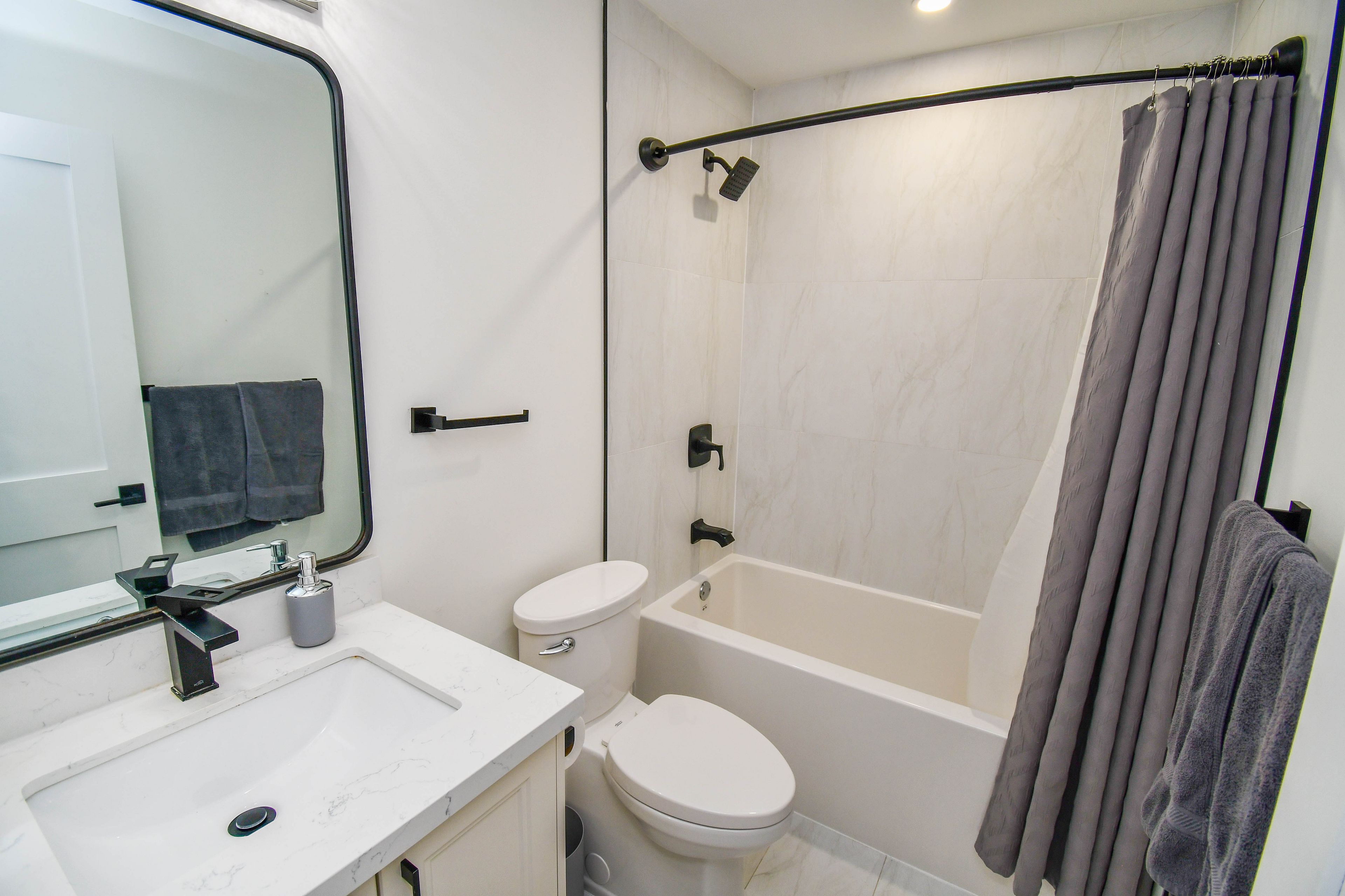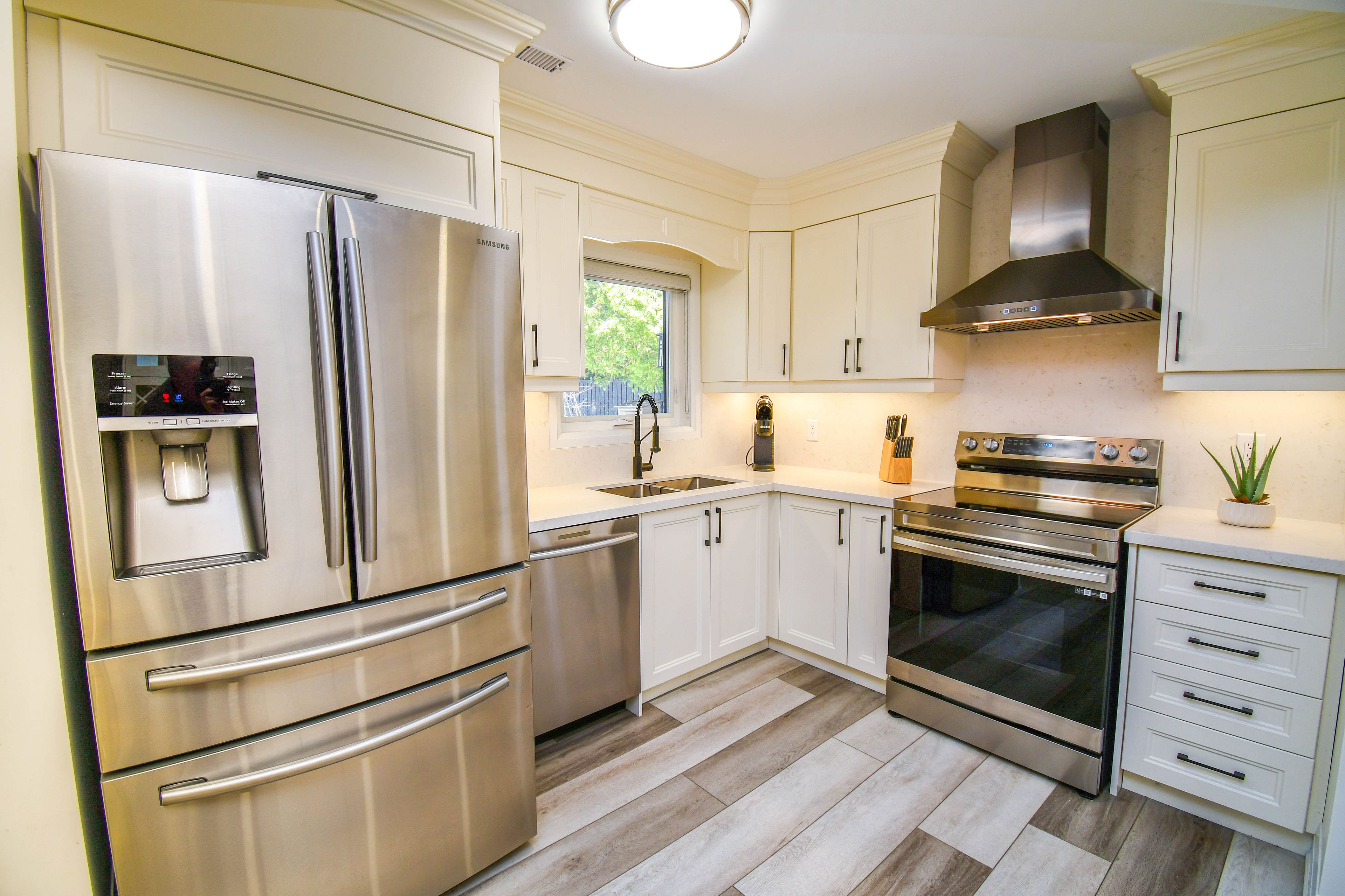 • Includes a designer kitchen featuring quartz counters and a stylish backsplash.