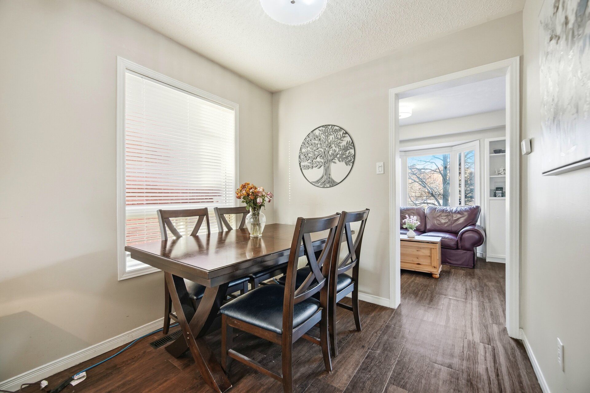 • Open-concept living and dining area with luxury vinyl flooring.