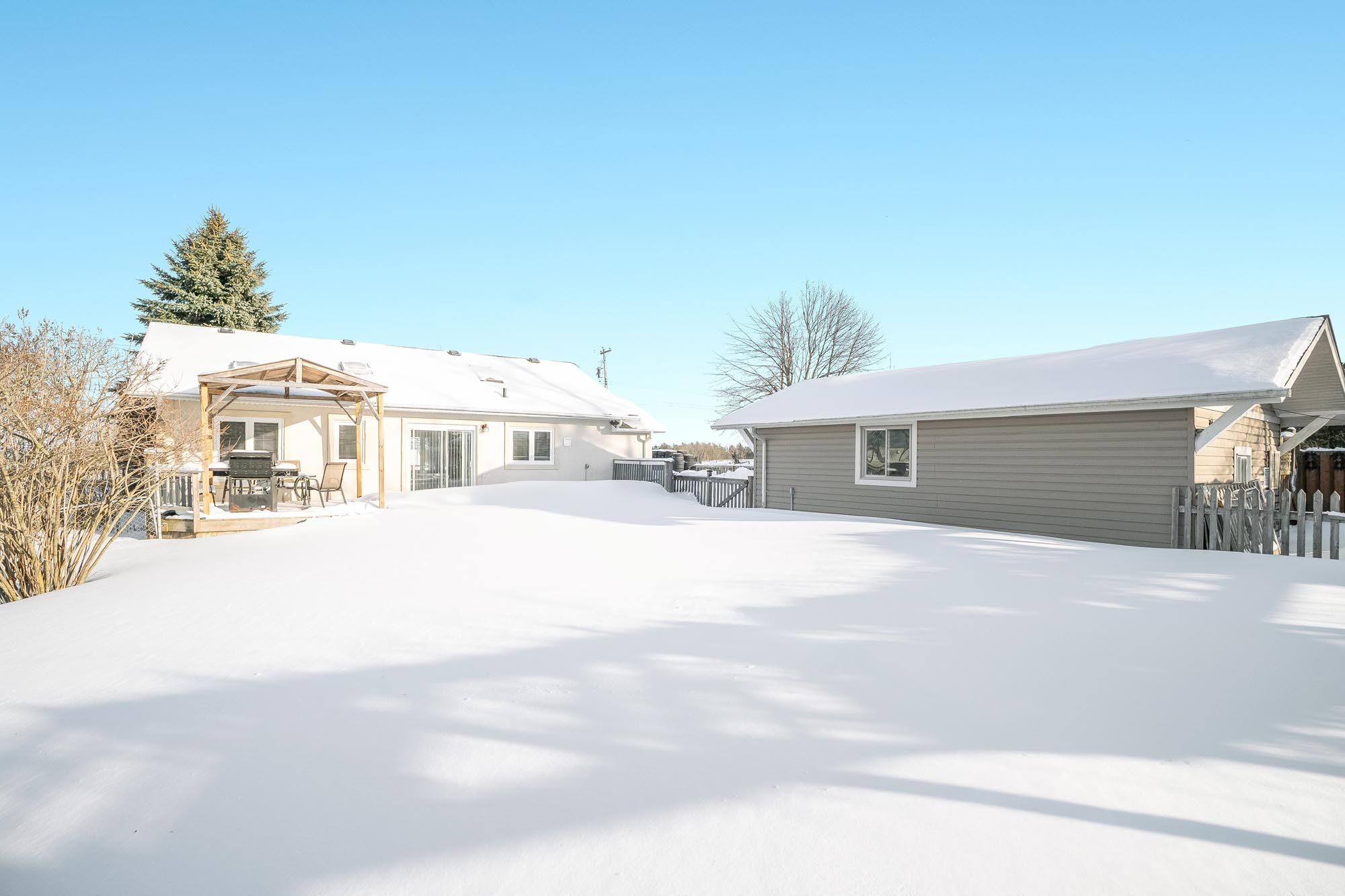 Top 5 reasons you will love this home: 1) set on a generous 70'x250' lot, this property features impressive outbuildings, including a detached, insulated garage or workshop with 100-amp service and a charming second structure with a fireplace, ideal as a bunkie, studio, or garden shed, all surrounded by mature trees, grapevines, and lush, established gardens 2) excellent in-law or multi-generational potential with the fully finished lower level offering a complete living space with a full kitchen, bedroom, bathroom, and family room, complemented by a separate entrance between levels and the option for two separate laundry areas 3) gracefully set with easy access to toronto and close proximity to a future hospital, making this a smart long-term investment as well as a comfortable place to call home 4) designed for both function and connection, the updated main level kitchen features quartz countertops, stainless-steel appliances, and contemporary finishes, flowing seamlessly through large patio doors to a generous deck and private backyard, ideal for relaxed mornings and entertaining 5) thoughtfully upgraded and move-in ready, this home offers 200-amp electrical service, an updated main level bathroom, and a versatile layout designed to adapt to your lifestyle, with plenty of space to grow and evolve. 949 above grade sq. Ft. Plus a finished lower level. *please note some images have been virtually staged to show the potential of the home.