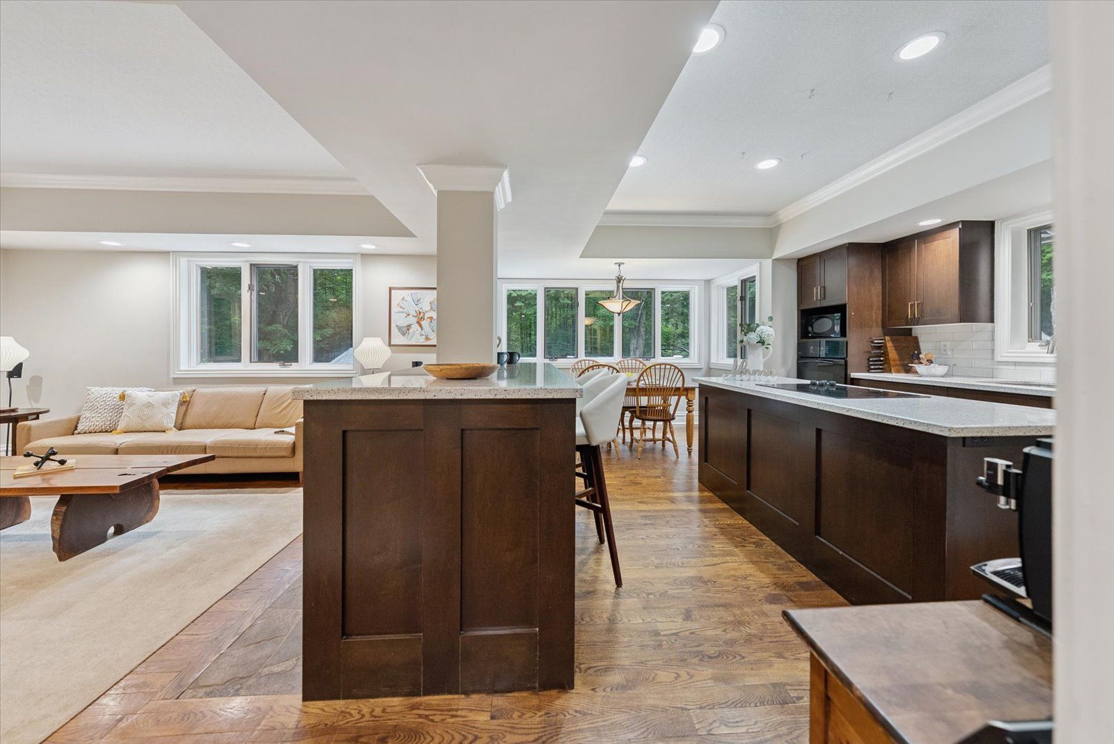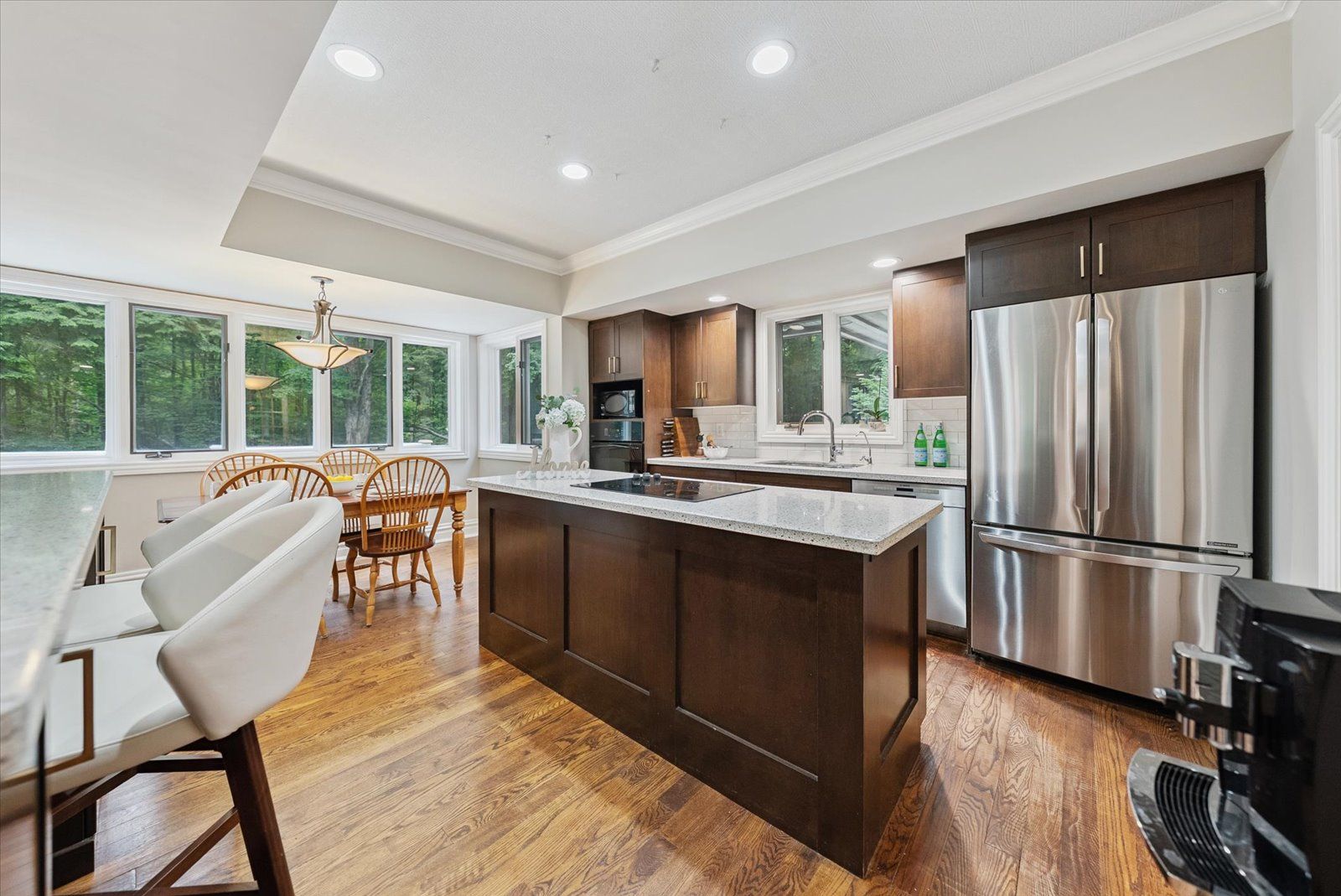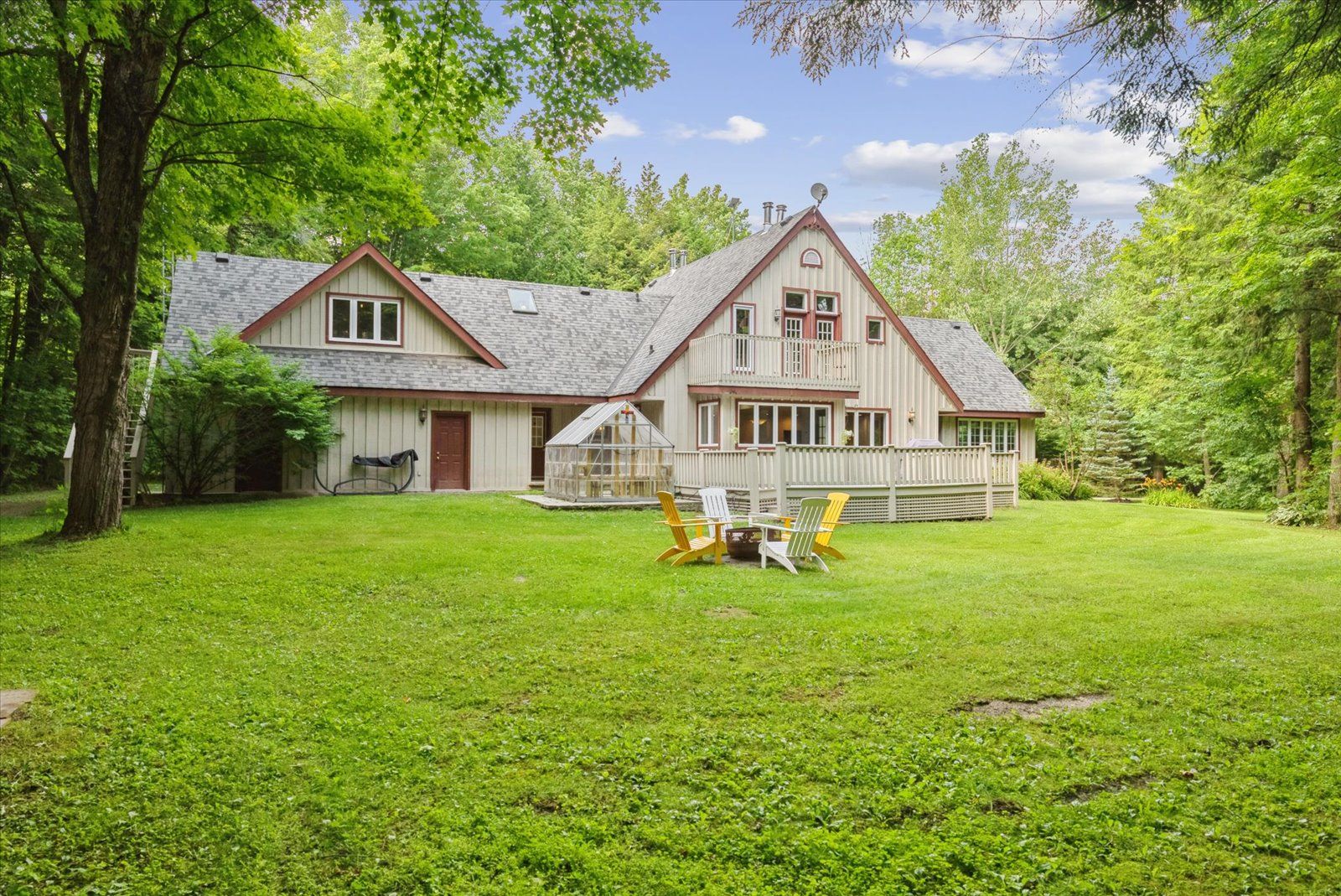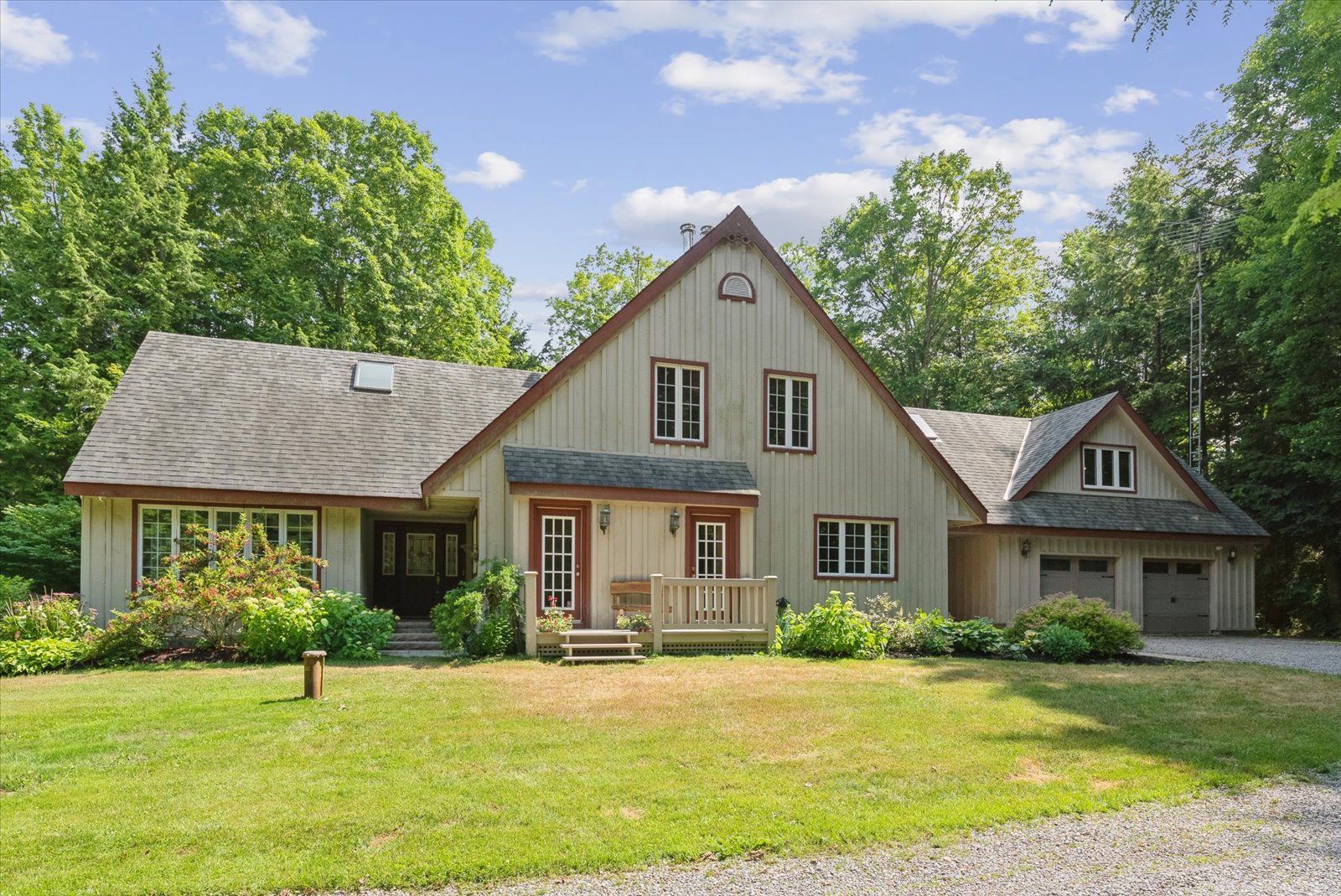 An exciting opportunity to own a custom-built, energy-efficient home nestled on a secluded 11-acre lot. This property offers the perfect blend of privacy, comfort, and sustainability, surrounded by mature trees. Inside, you'll find a beautifully updated kitchen with a walkout to a spacious deck, perfect for entertaining or enjoying quiet mornings surrounded by nature. The home's timeless character is enhanced by hardwood floors throughout, crown moldings, french pocket doors, and upgraded trim. You can also cozy up beside several of the home's fireplaces. One of the standout features? A show-stopping primary bathroom that brings luxury and relaxation to a whole new level. This home also features many custom-built-ins, an led pot lighting system, and a versatile heated loft above the garage with a bathroom. This space is currently used as a home office, but it could easily be transformed into a studio or guest suite. Additional features include a geothermal furnace, offering highly efficient, eco-friendly heating and cooling with significantly reduced utility costs year-round. The property also includes 1. 3 km of groomed trails that wind through the woods, perfect for soaking in the natural beauty that surrounds you. And if you've ever dreamed of tapping your own trees, this property offers the opportunity to harvest your own maple syrup, with an average yield of about 45 litres per year. This is a rare opportunity to own a peaceful, energy-conscious home while still having easy access to modern comforts.