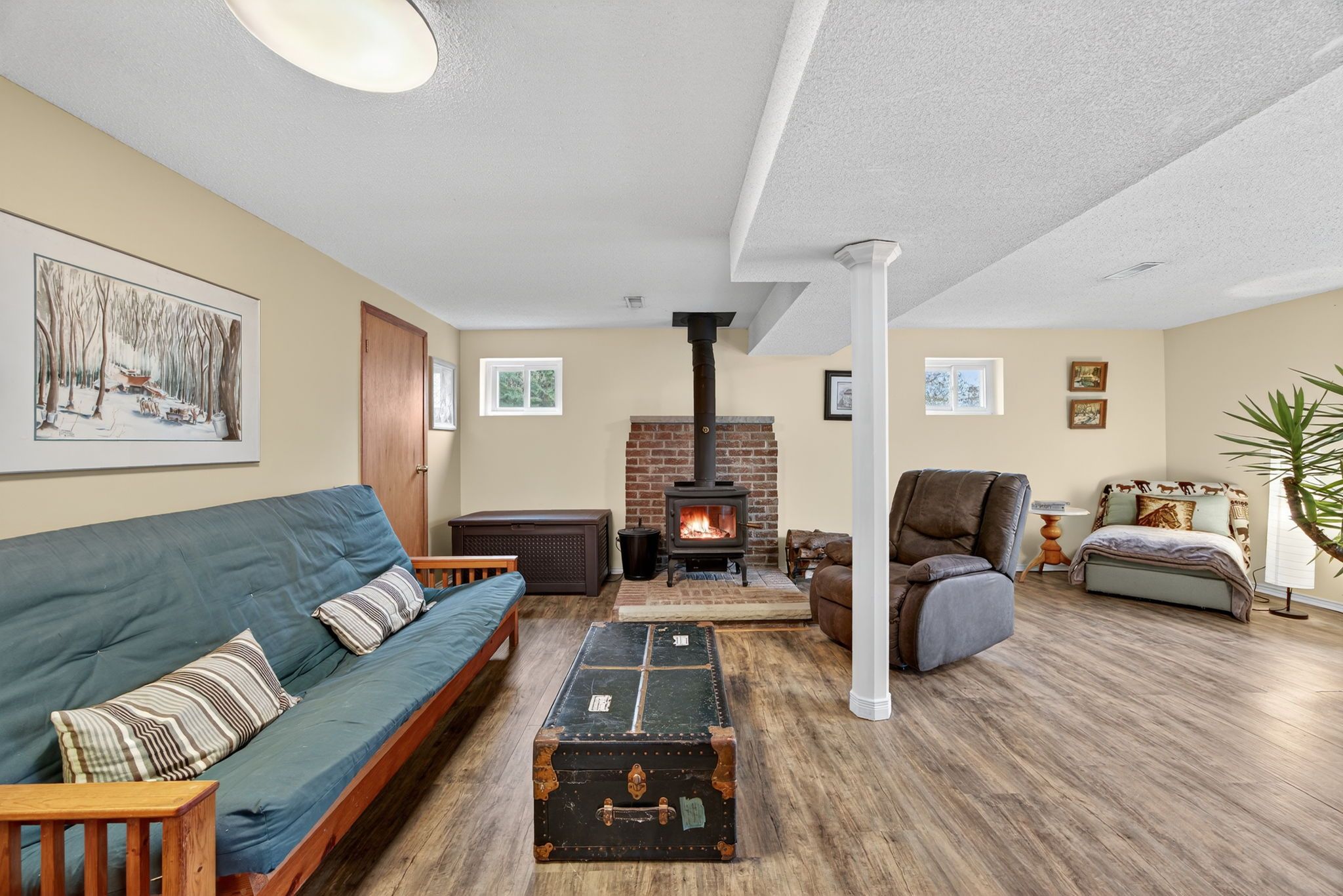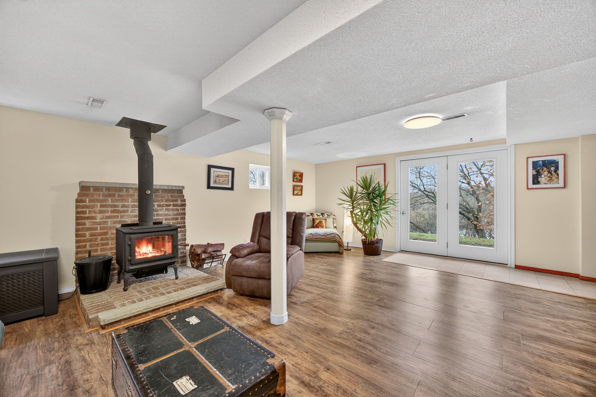 • Finished basement with walkout and cozy wood-burning stove.