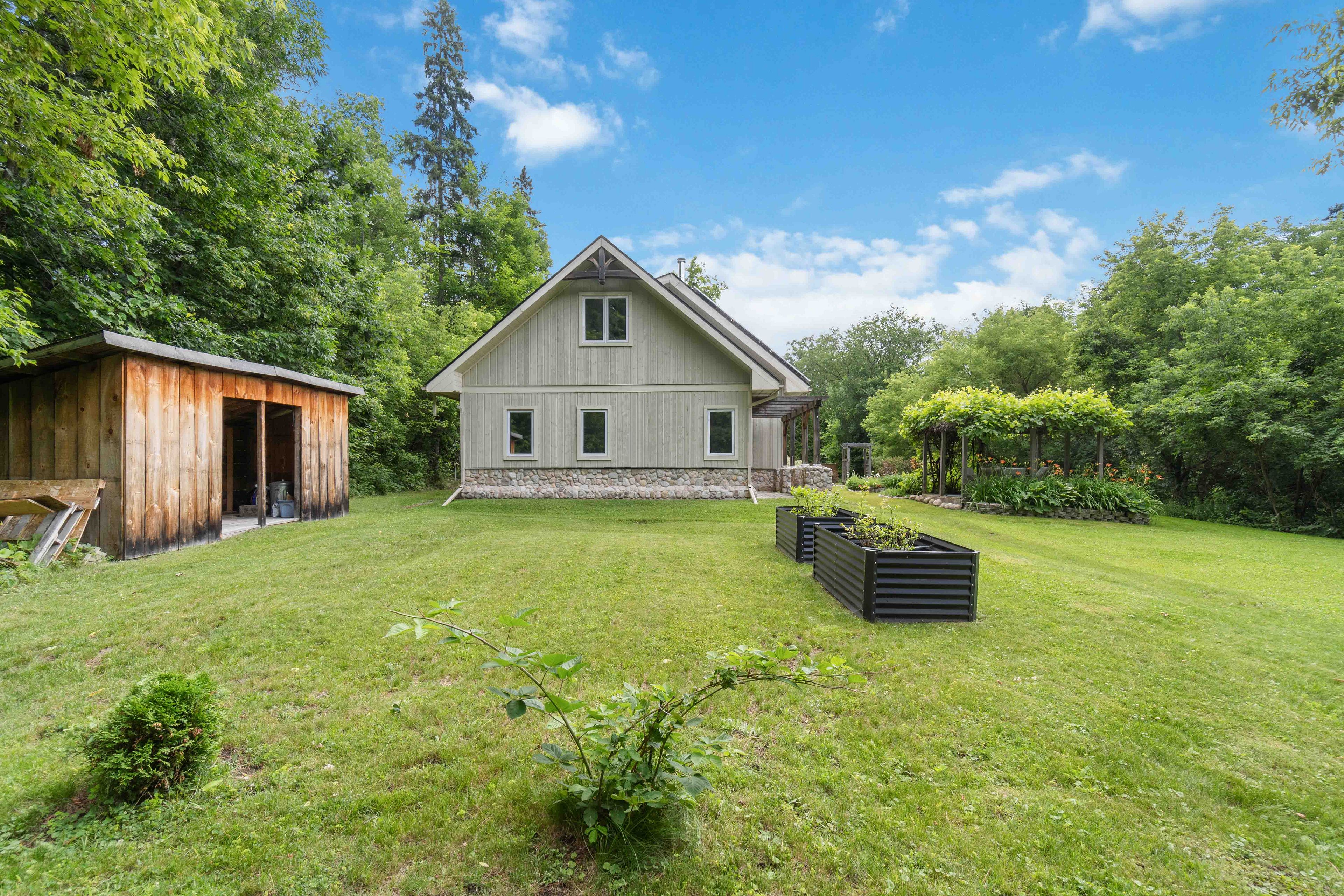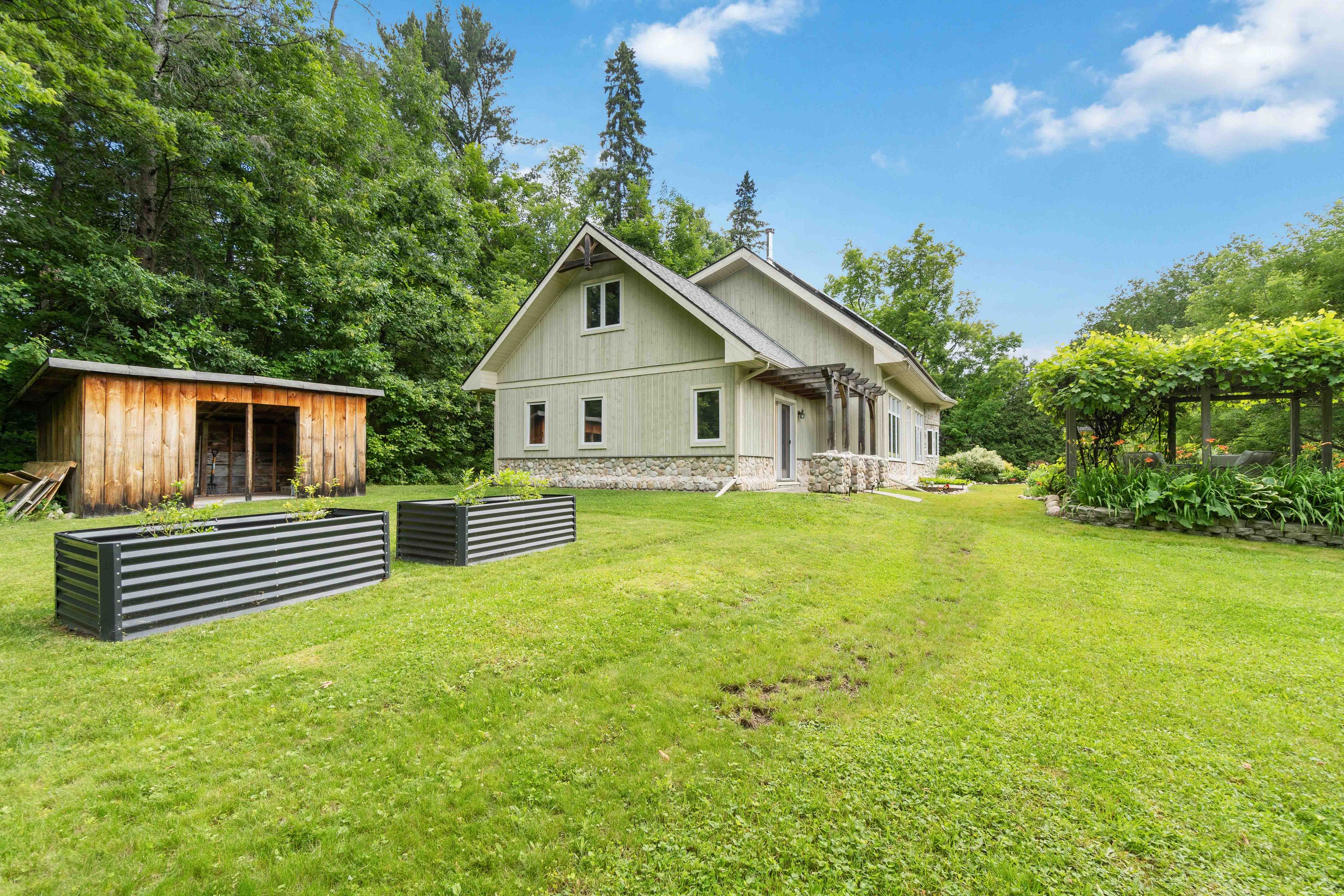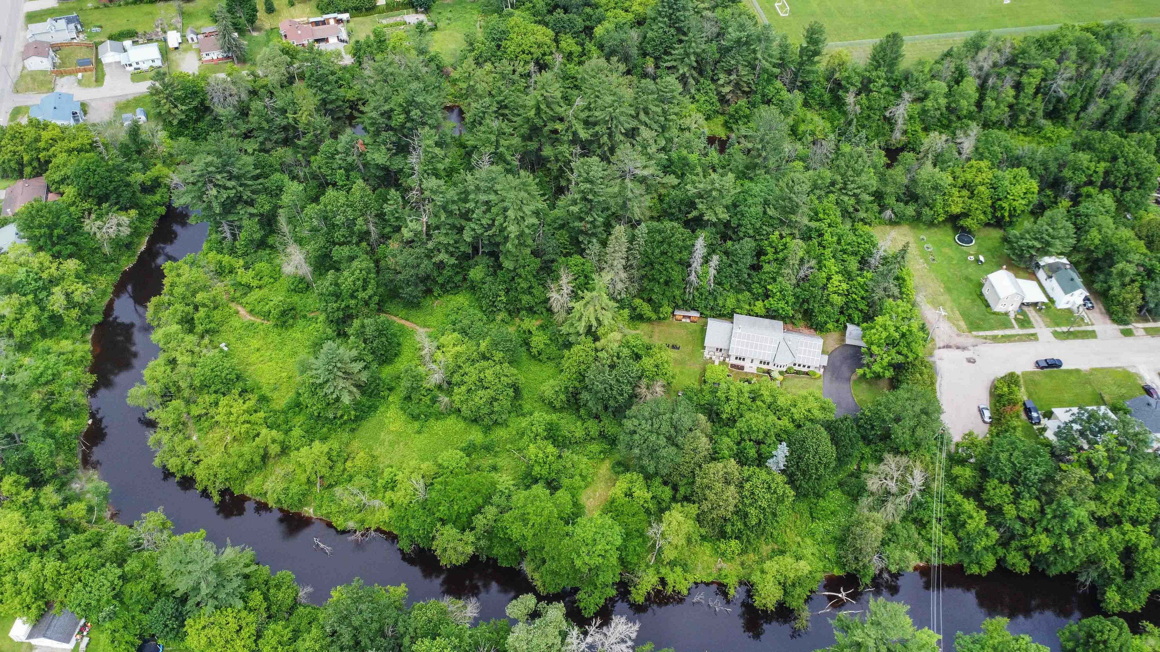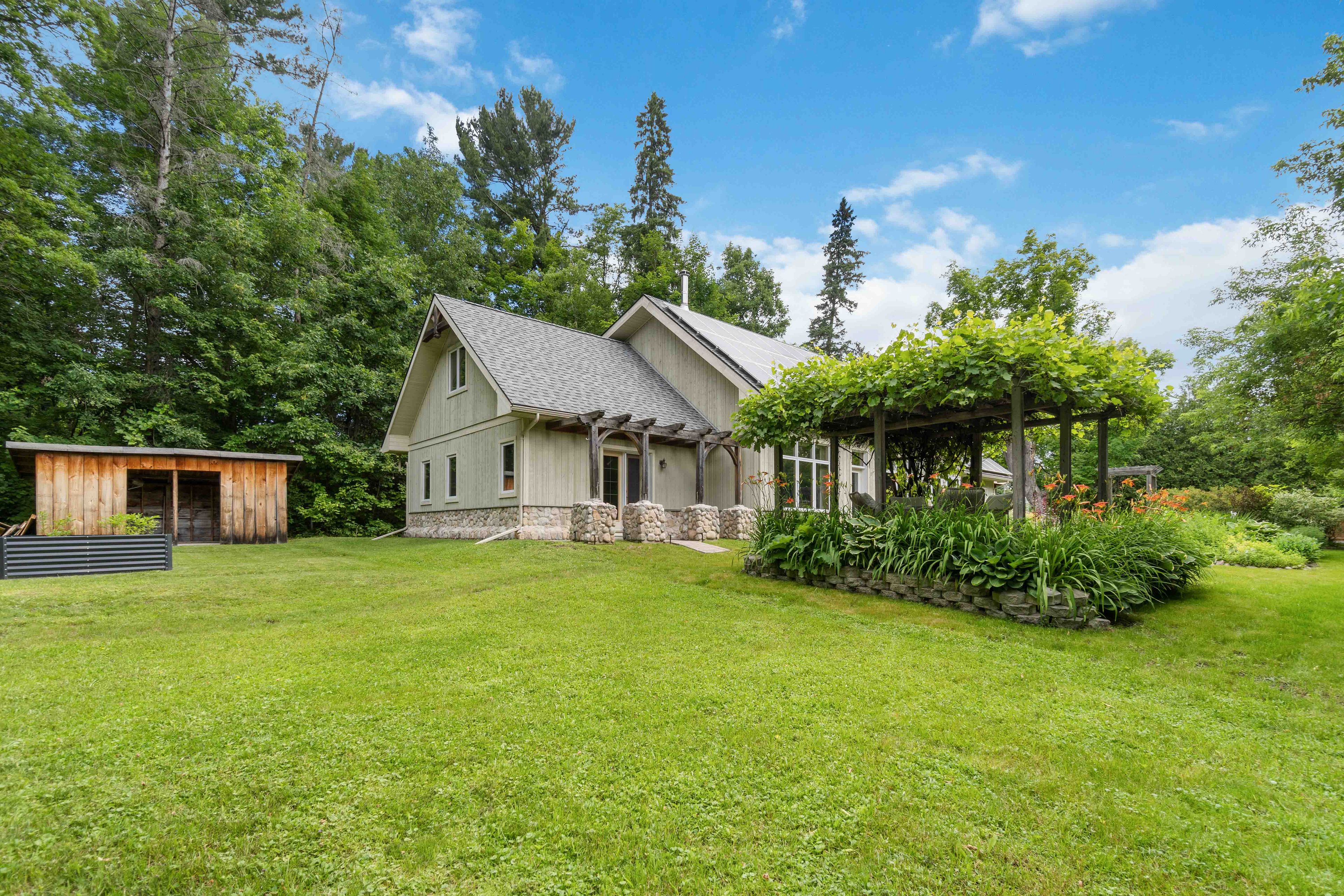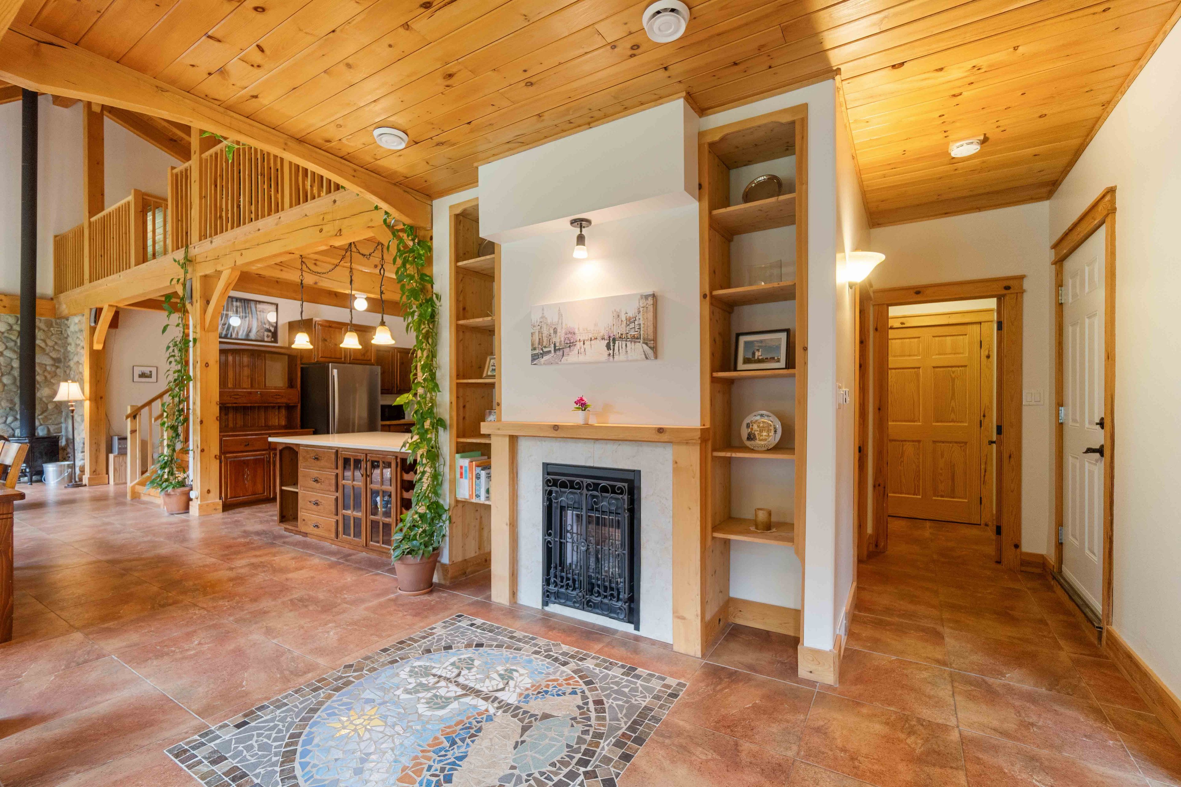 Discover your urban oasis! This custom-designed, ecologically sustainable post-and-beam home sits on a serene peninsula in pembroke, with 2. 8 acres of lush forest. Enjoy privacy and natural beauty while having all amenities at your doorstep. The open-concept main level boasts 23-ft ceilings and features a newly renovated kitchen with custom pine cupboards, quartz countertops, and modern appliances. Relax in the curved sitting area with a gas fireplace or by the wood stove in the living room. The main level includes an office, two full bathrooms, and three bedrooms, including the primary suite with a walk-in closet and sliding doors leading to a patio with river views. The upper level offers bonus rooms, a large storage area, and a fourth bedroom overlooking the garden. Updates include paved driveway with a gate 2023, new washer & dryer 2022, infrared sauna 2023, new owned hot water heater 2025. Additional features include two outdoor sheds, a hot tub, and solar panels providing passive income. Book your showing today!