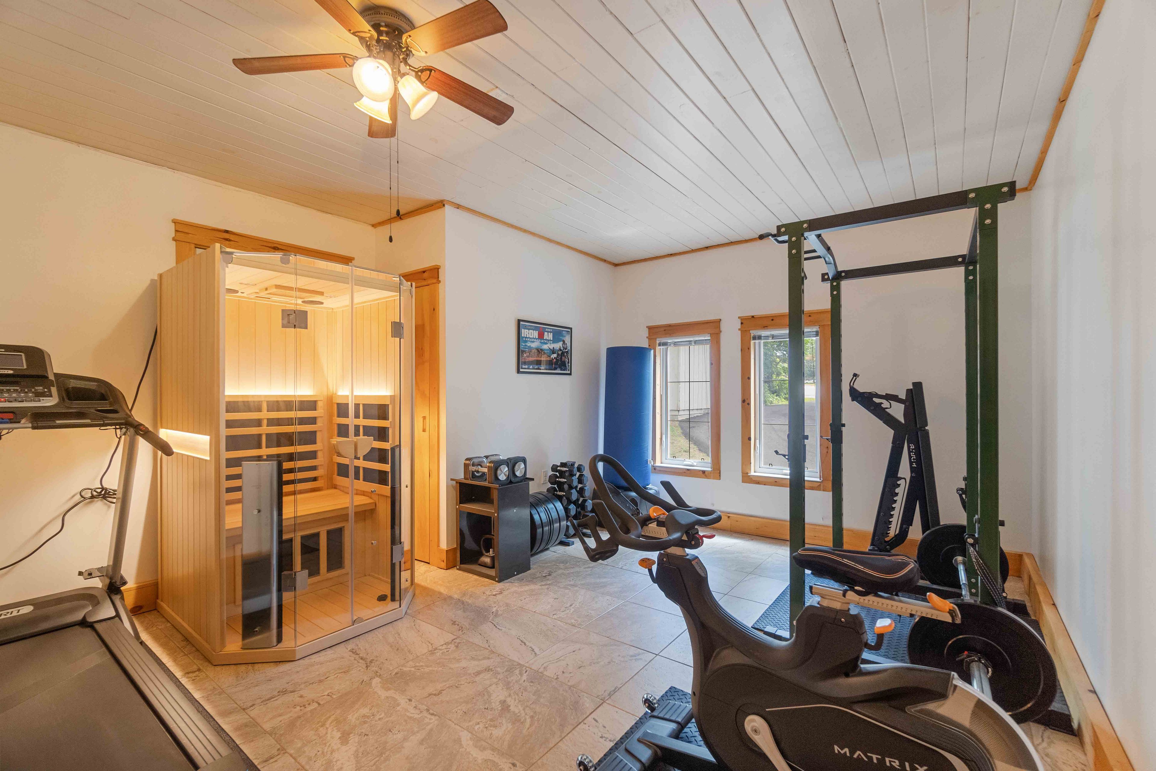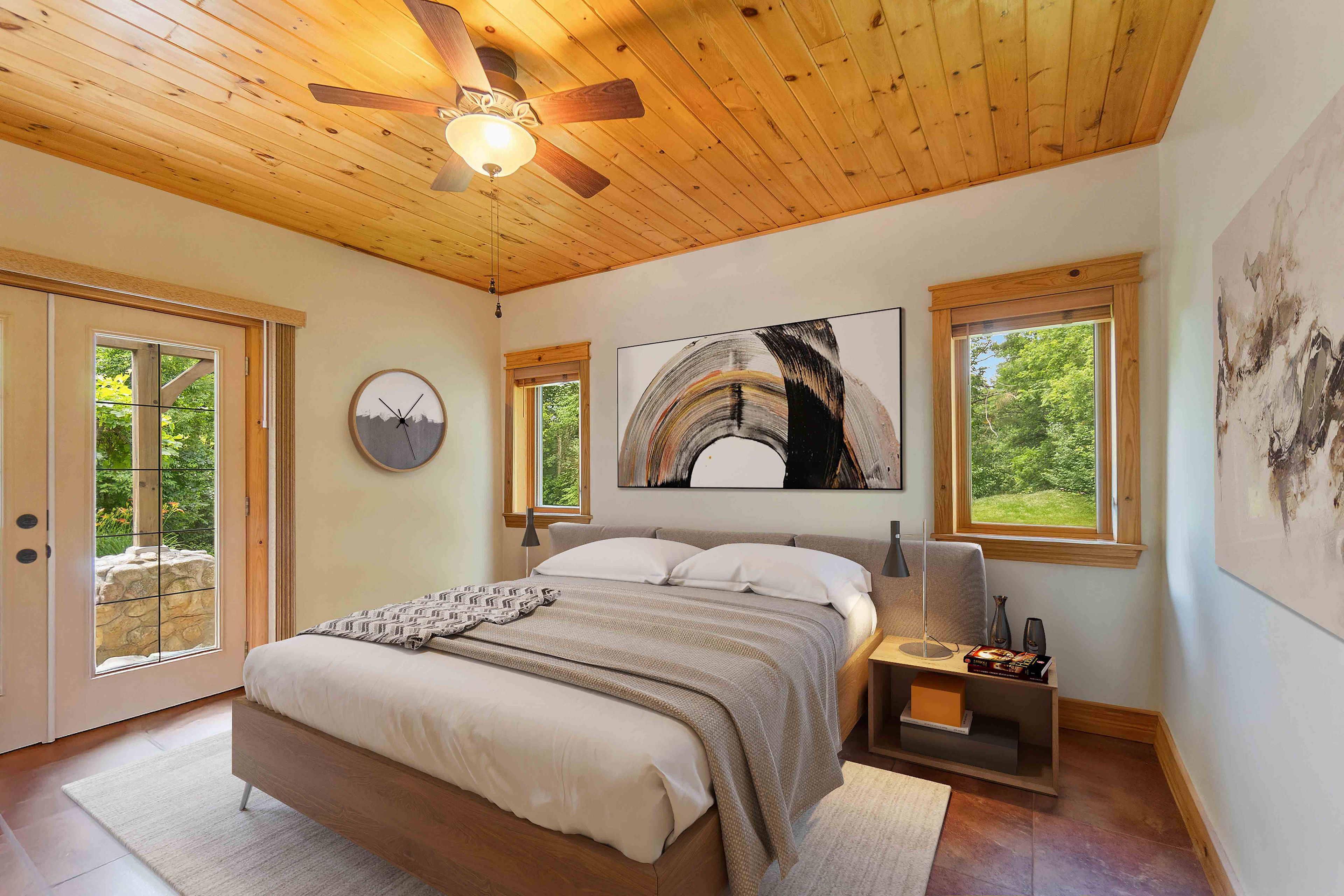 • Eco-friendly features include solar panels, infrared sauna, and hot tub.