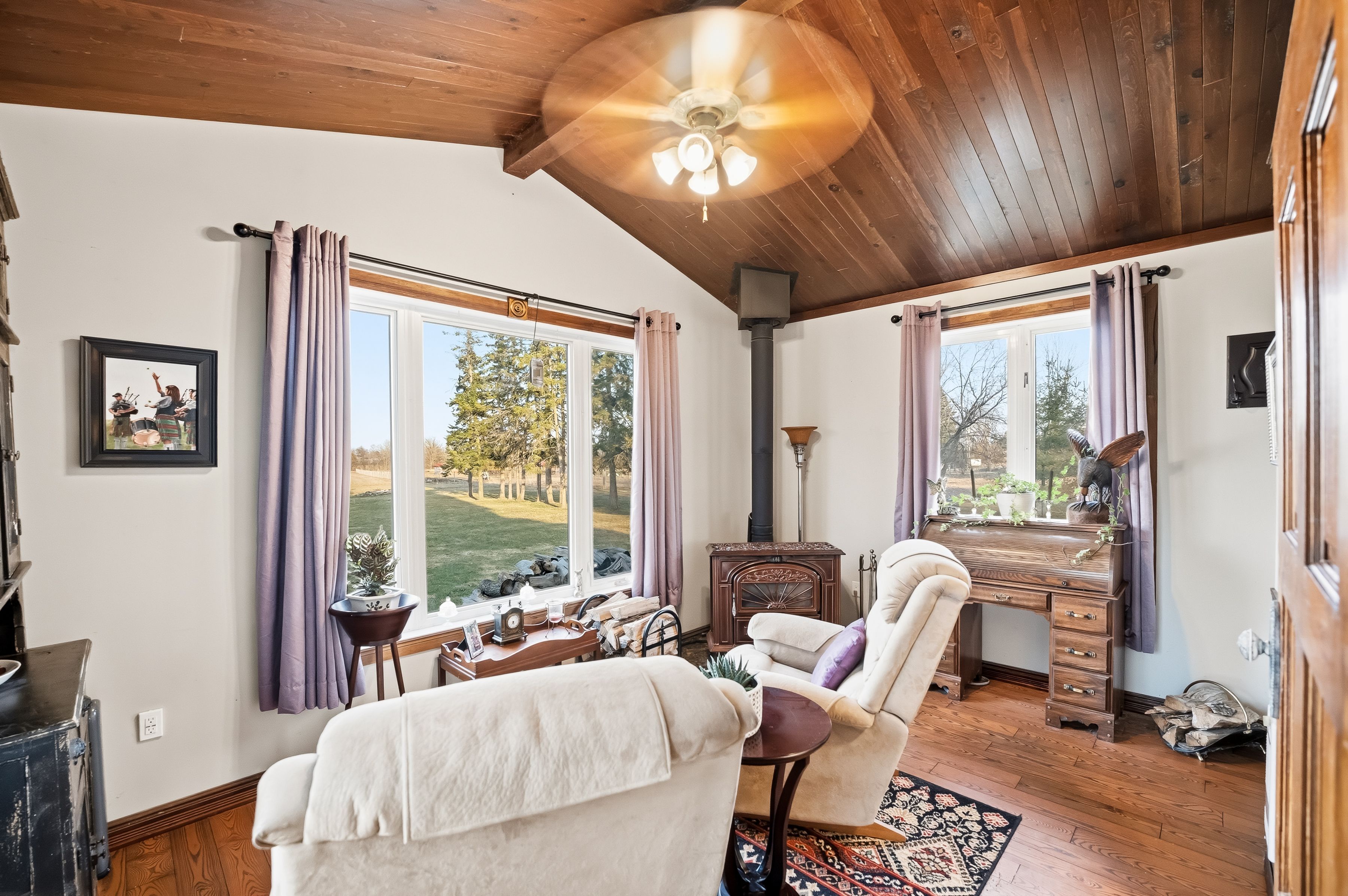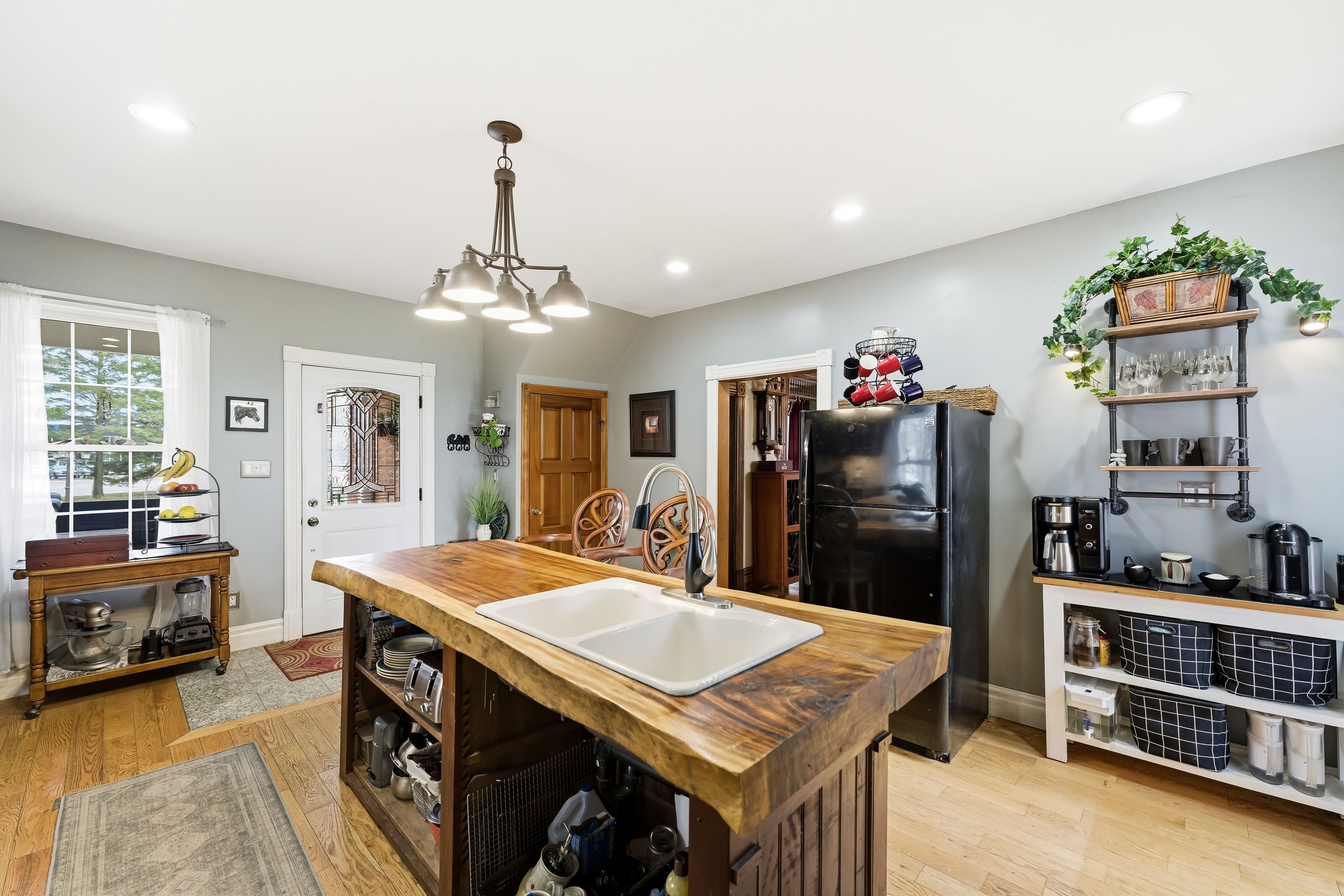 5 things you'll love about this property! 1) the location - located on 2. 5 acres at the very edge of belleville, this property offers a rare combination of peace and accessibility. While the property is tucked away in a private setting, it's still just minutes from all major amenities, including shopping, dining, and recreational options. With easy access to highway 401, commuting is a breeze, making this the perfect balance of country living with city convenience. 2) the workshop - a spacious former horse barn that has been converted into a workshop and storage area. It features multiple equipment storage areas with shelving, 1500 sqft loft, a tool storage room and a lounge area, providing plenty of space for projects, relaxation, or hobbies. The property is well suited to small to medium sized business on a well-travelled highway 62. 3) the coverall - the impressive 5,000-square-foot coverall building is ideal for multi-vehicle or boat storage. It also provides a sheltered space to stay active during winter and serves as an excellent place to store gear or run business ventures. 4) the kitchen - the kitchen blends modern luxuries with rustic charm, anchored by a stunning custom live-edge island countertop and accompanying granite countertops. With doors leading to both the front wraparound porch and backyard, it effortlessly connects indoor living with outdoor spaces, perfect for hosting or relaxing. 5) the sunroom - this bright and inviting sunroom is framed by a large picture window that overlooks the backyard. With cathedral ceilings and a custom wood-burning stove, it provides a cozy retreat year-round, whether you're enjoying coffee or winding down at the end of the day.
