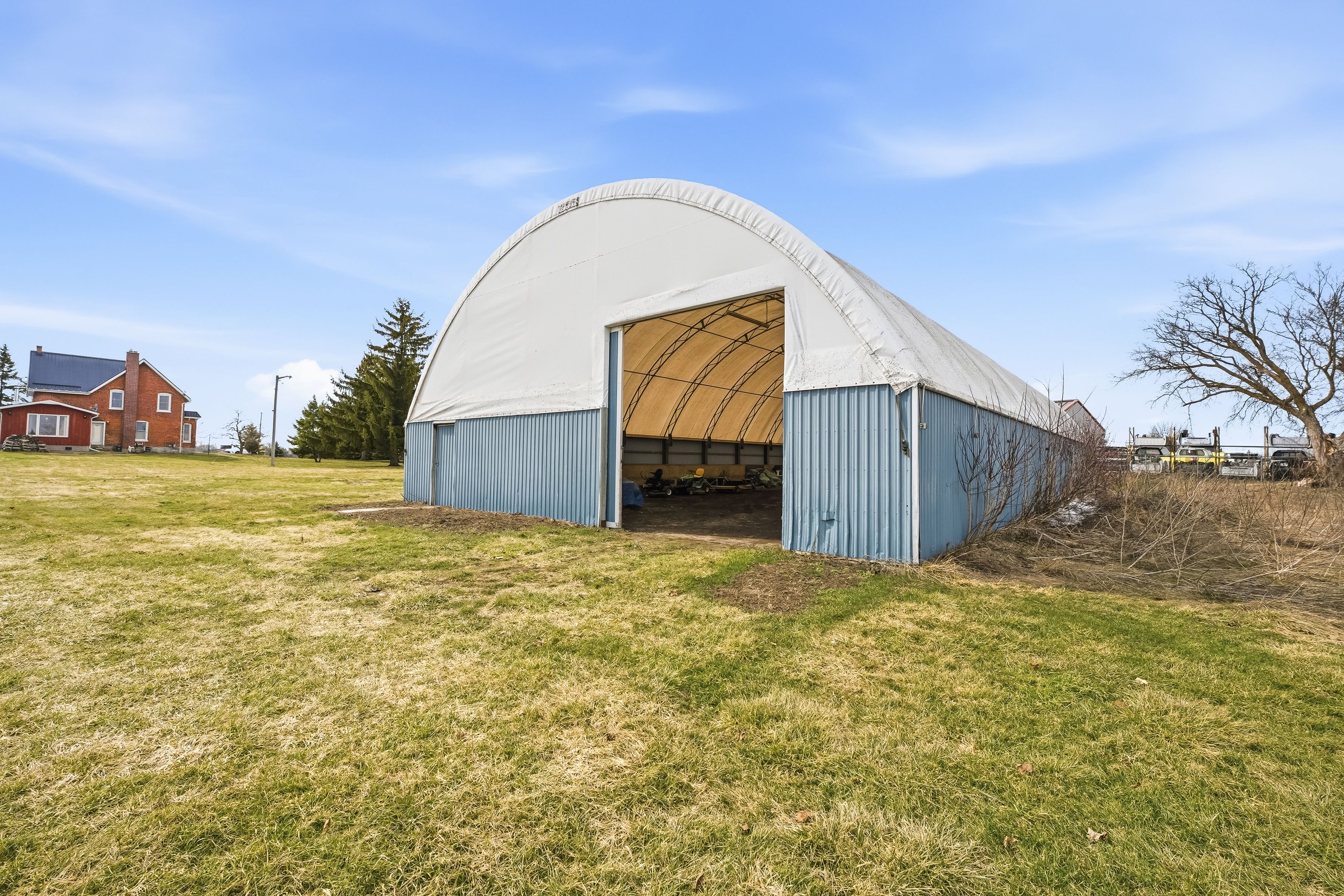 • Large coverall building perfect for vehicle storage and winter activities.