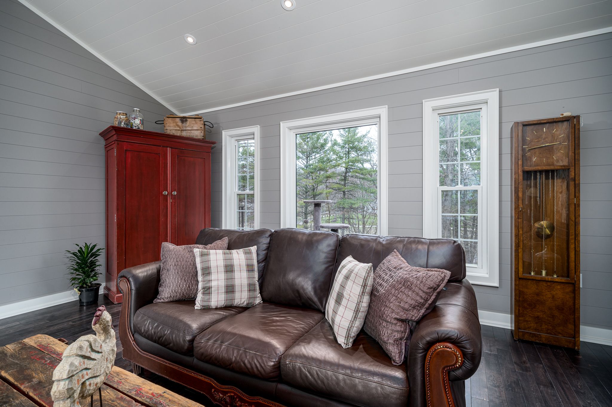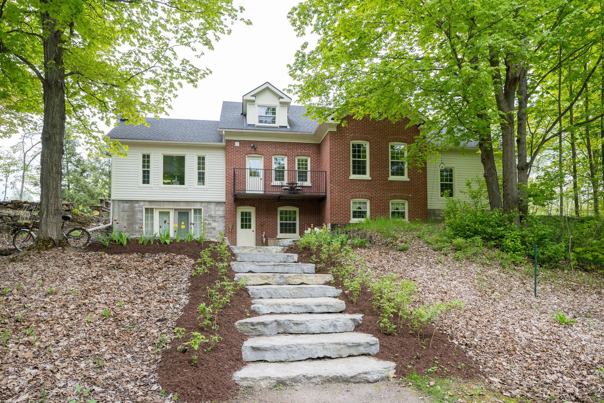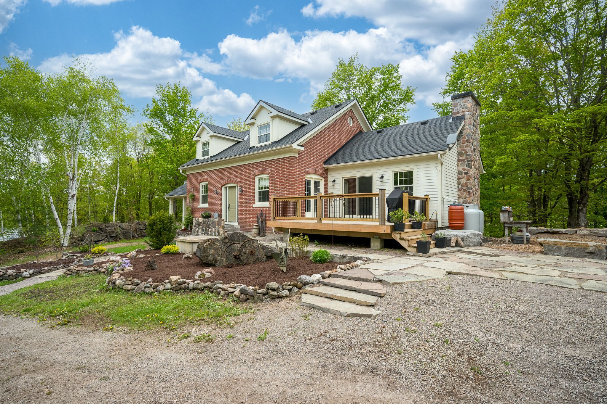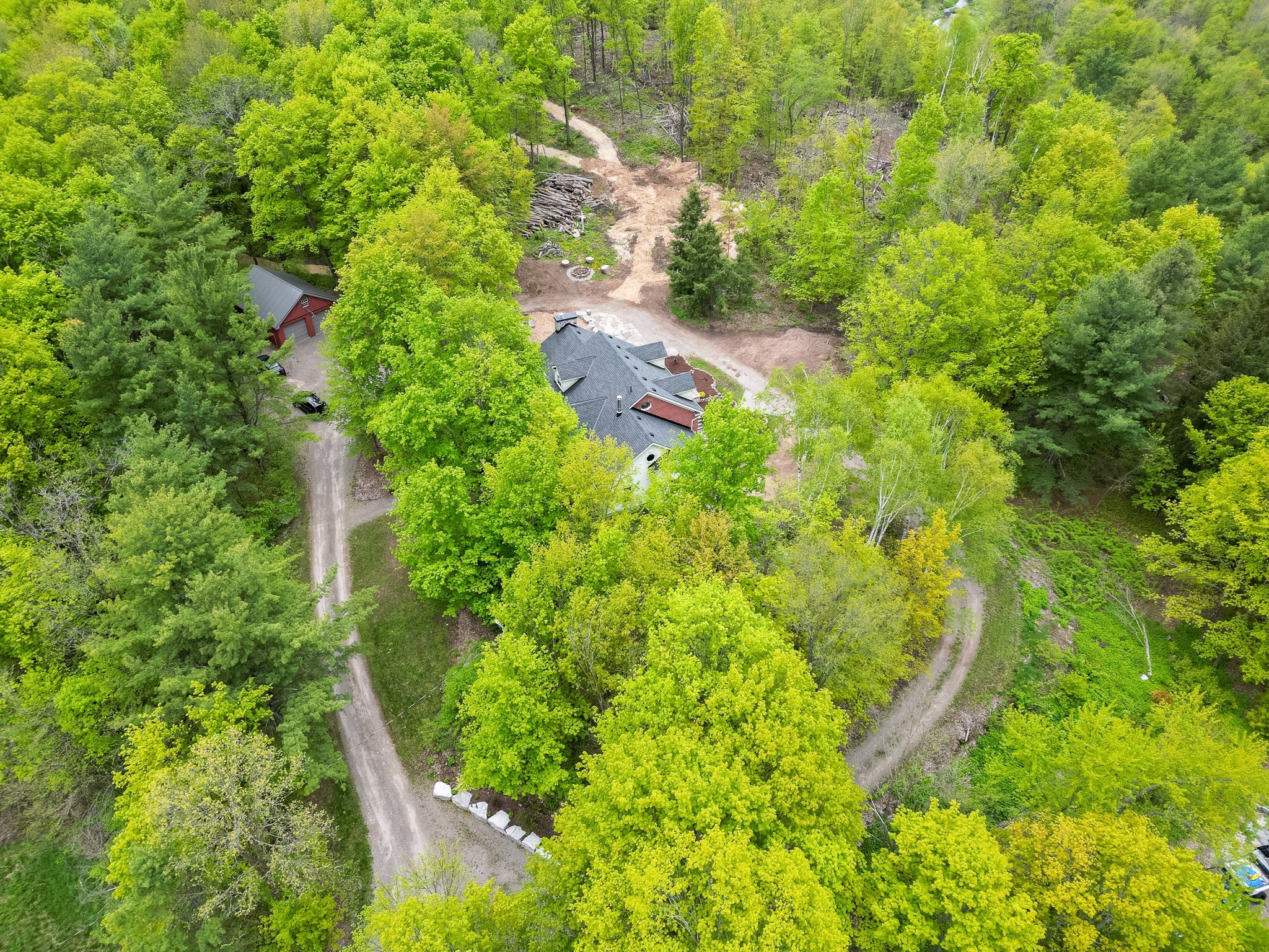 Welcome to this spacious 4000 sq. Ft. Plus country home. Nestled and perched in the picturesque and private landscape of almost 4 acres. This family retreat features a blending of traditional and modern amenities. 4 bedrooms, 4 baths and a 3 level tiered design that includes a lower level entrance to accommodate a possible multi-generational in law-suite. This home is designed to take advantage of its peaceful surroundings with nature filling every window. Walk outs to living spaces to the east, west and south allowing you to follow the sun throughout the day. This country property offers a luxurious lifestyle boasting hardwood floors, an abundance of storage and custom built in cabinetry. The gourmet kitchen features built-in appliances, quartz counter tops and a family-sized island. The kitchen includes a walkout balcony, perfect for enjoying your morning coffee surrounded by nature. The main floor includes a formal dining room with a butler pantry (roughed in plumbing). The living room with cathedral ceilings and a spectacular hand picked stone fireplace is completed with a walkout to a sun drenched deck. There's also a main floor office, a laundry room/2-piece powder room and a private main floor primary bedroom oasis with an en-suite bathroom. The second floor features a games/recreational/bonus room, ideal for entertainment or studio, along with three additional bedrooms and a full bathroom. The lower level offers a walkout entrance and room to expand, providing endless possibilities. Outside, you'll find a detached garage and private created nature trails, all set on a wooded lot that offers privacy and tranquillity. Includes 5 raised beds and wood ready for the fireplace. Located close to the village of madoc, property offers convenient access to shopping, recreational activities, and the o'hara conservation area, ensuring you can enjoy both the comforts of home and the beauty of the surrounding area.*total s. F. Above and below 4865. 49 (lower-partially finished)