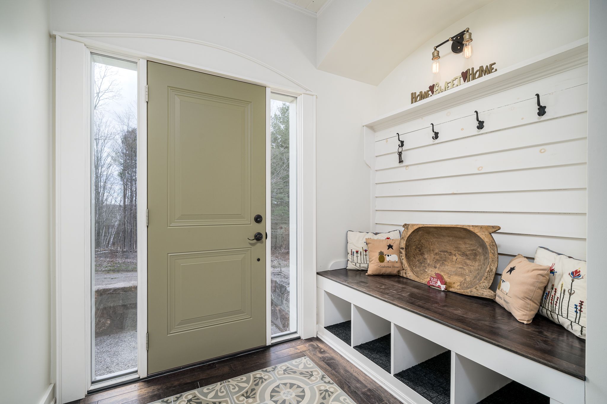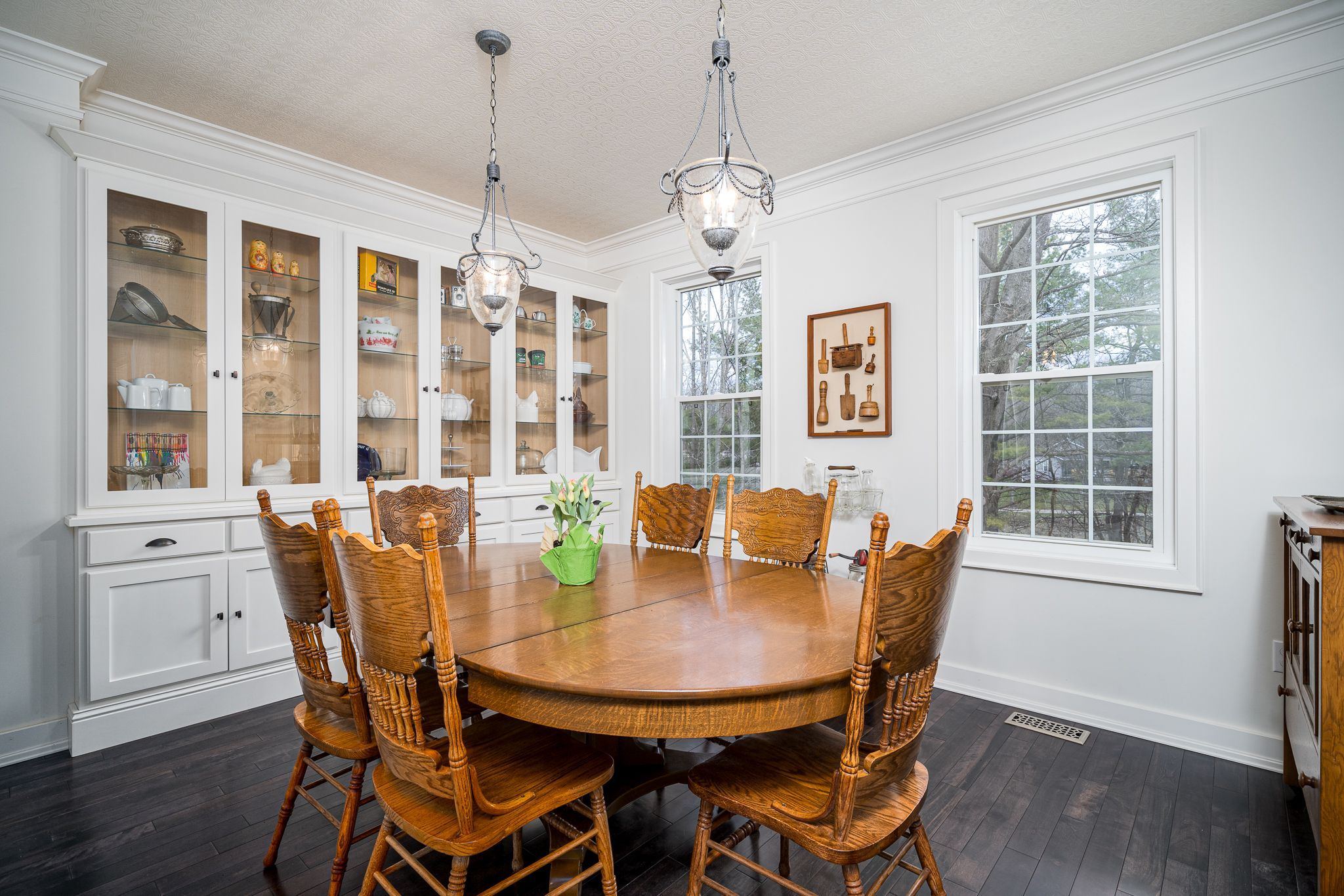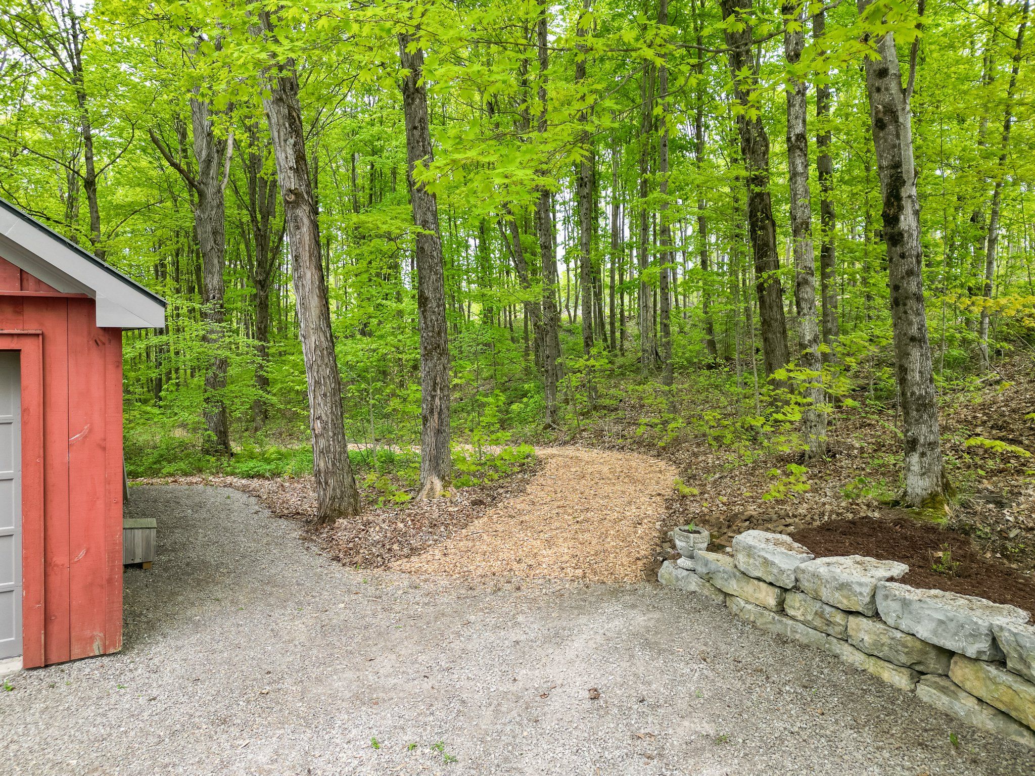 • Private nature trails and a detached garage enhance outdoor living.