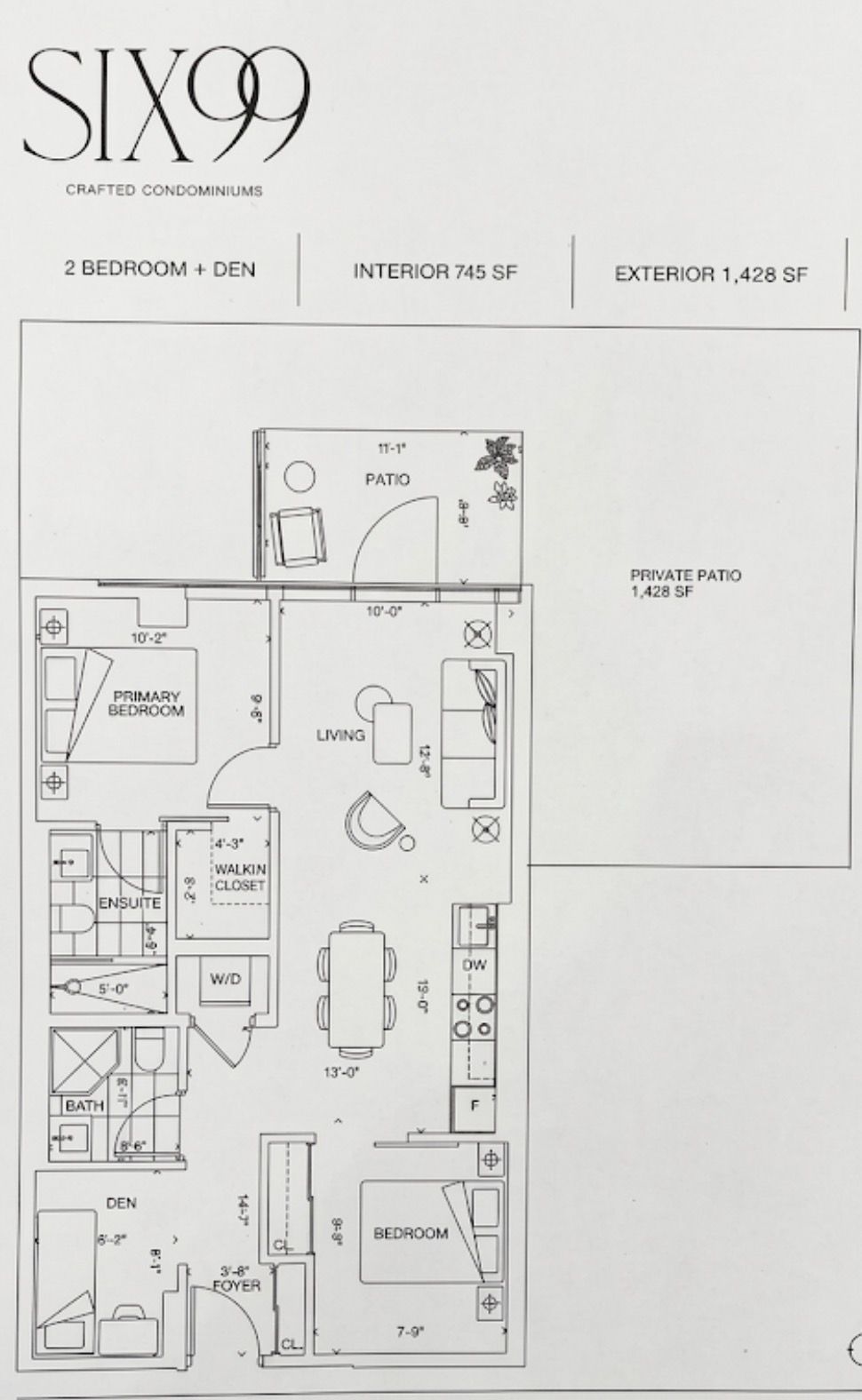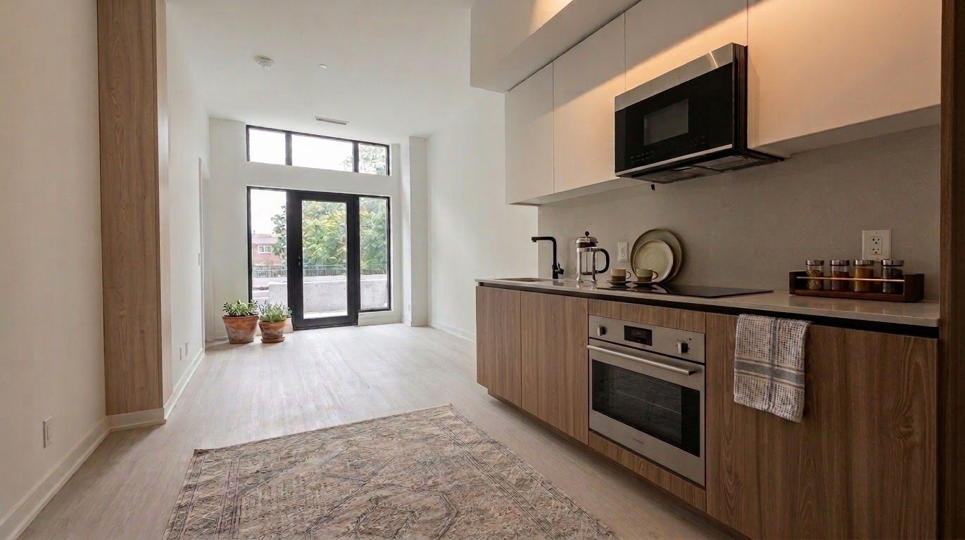 Boutique luxury at six99 - available july 1st. This sophisticated suite offers a unique indoor-outdoor lifestyle with 745 sq ft of interior space and an incredible 1,428 sq ft private terrace. Features include 10' ceilings, a split-bedroom design, and a flexible den ideal for a study or guest room. Bonus: the fitness centre is located right across the unit for easy access! Includes 1 underground parking space. Dual gated entries provide the convenience of a street-level home with the security of a luxury condo. Meticulously maintained and just steps from bessarion station (line 4), ikea, and bayview village. Building features a 24hr concierge, co-working space, and rooftop dining.