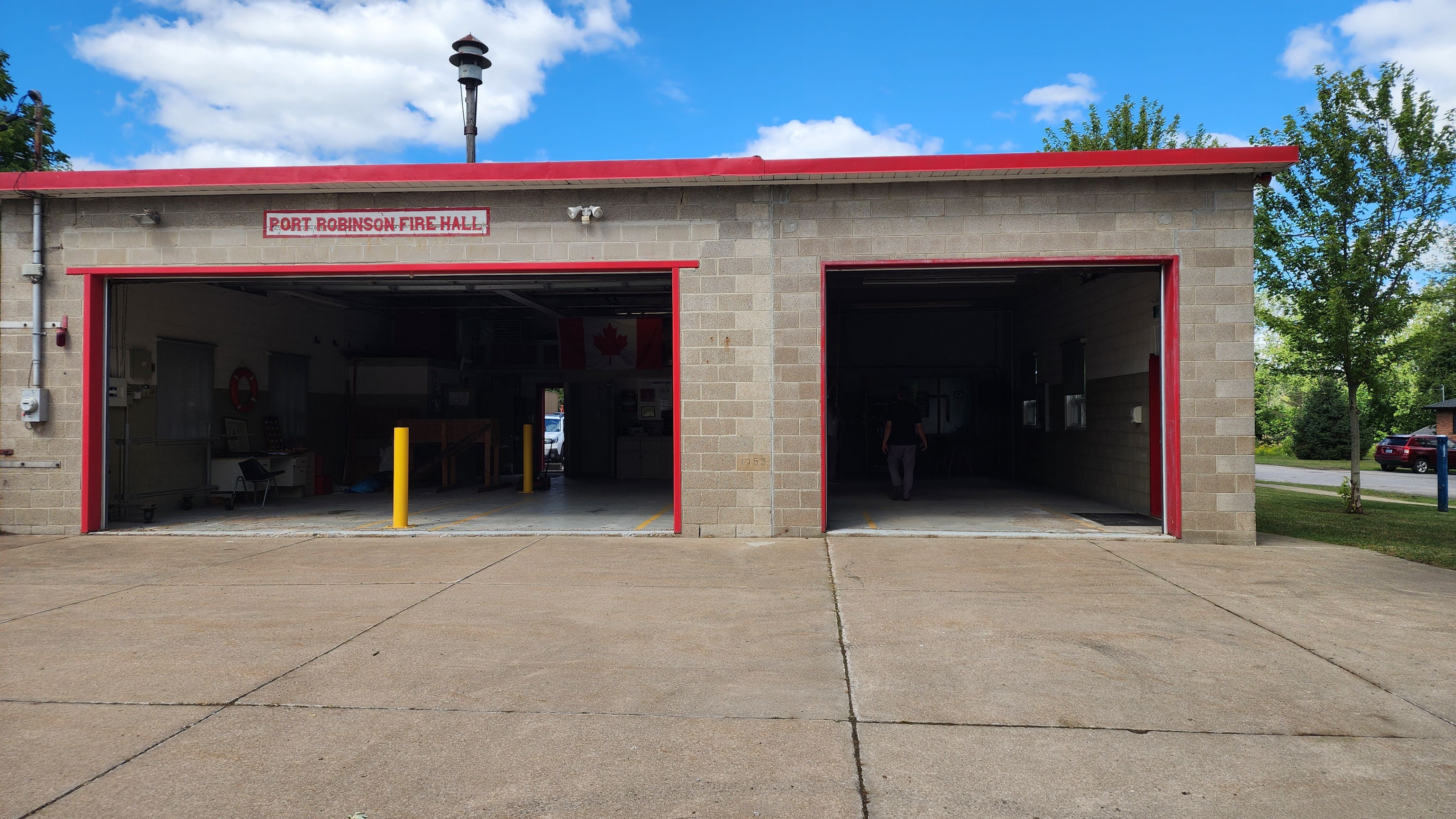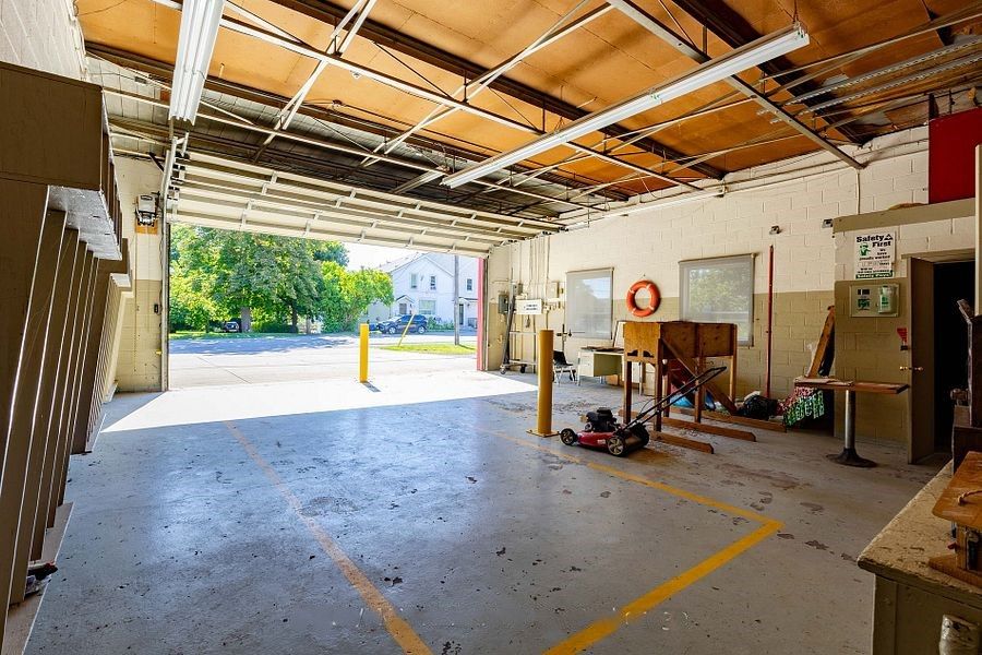 • Decommissioned fire hall with reinforced floors and three vehicle bays.