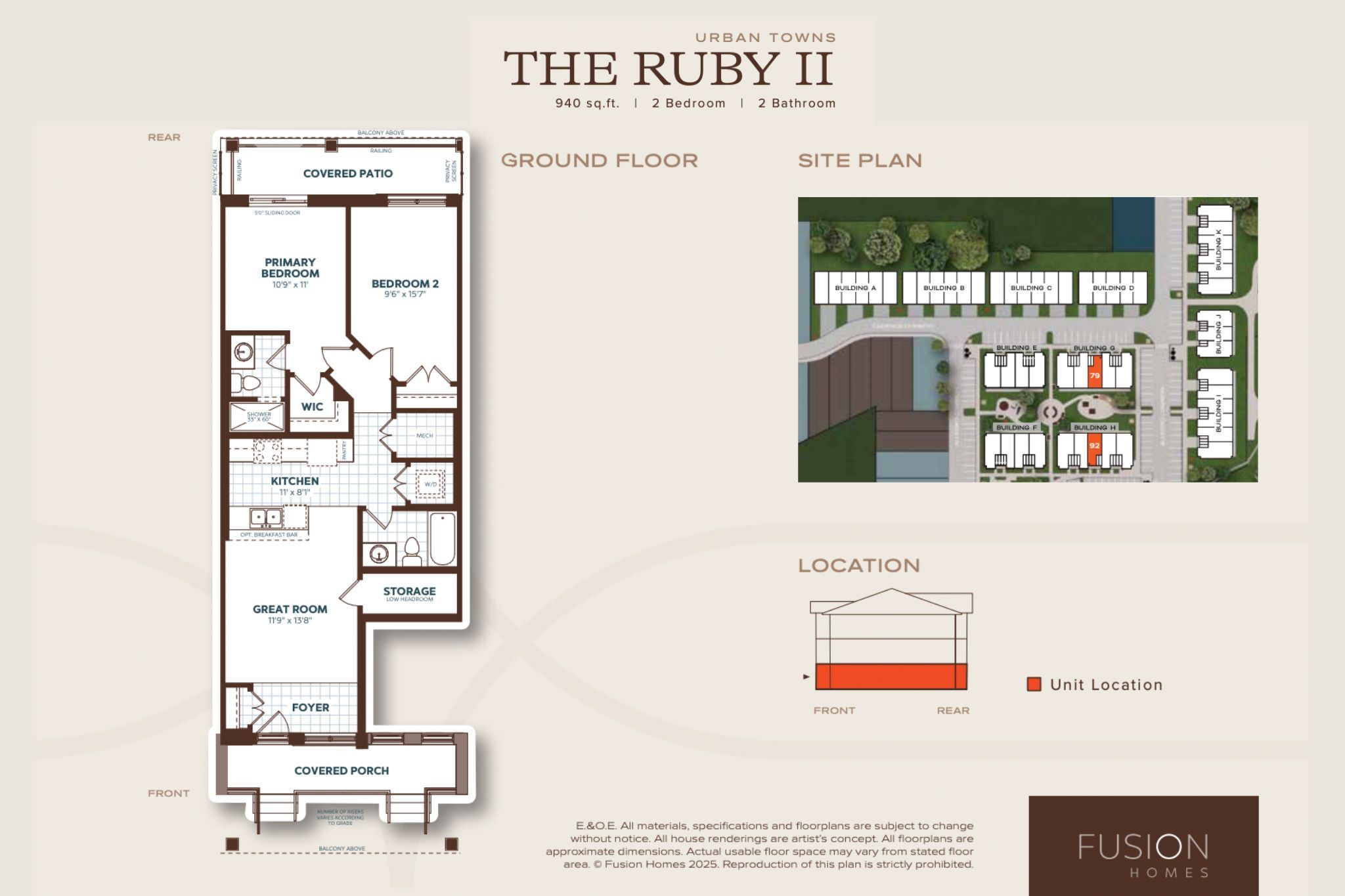 • Approximately 940 sqft of living space with 2 bedrooms and 2 bathrooms.