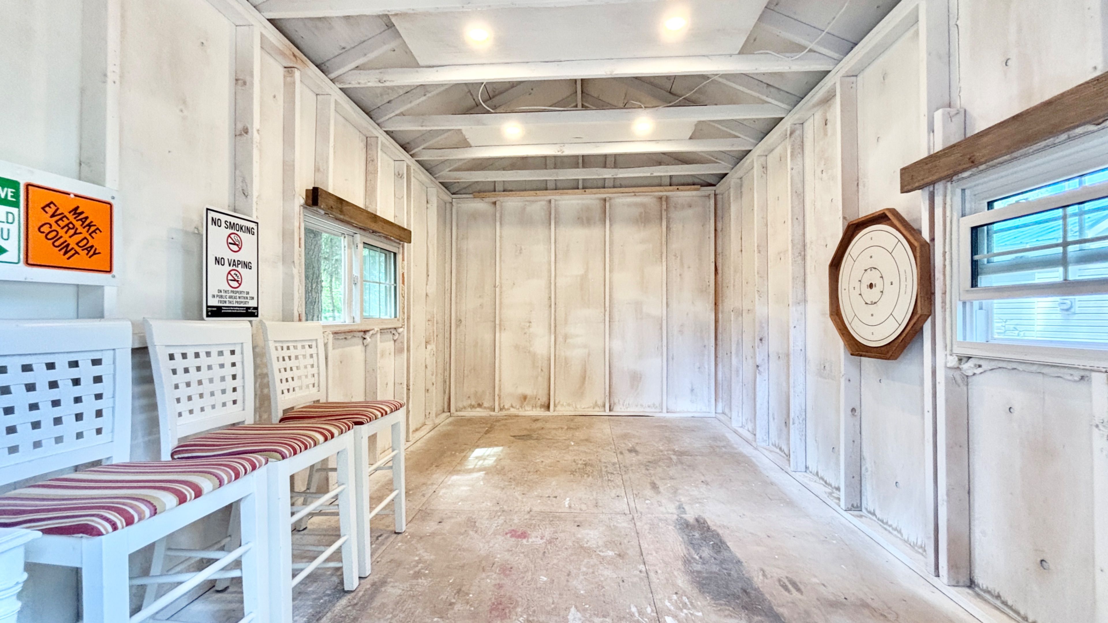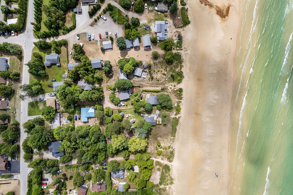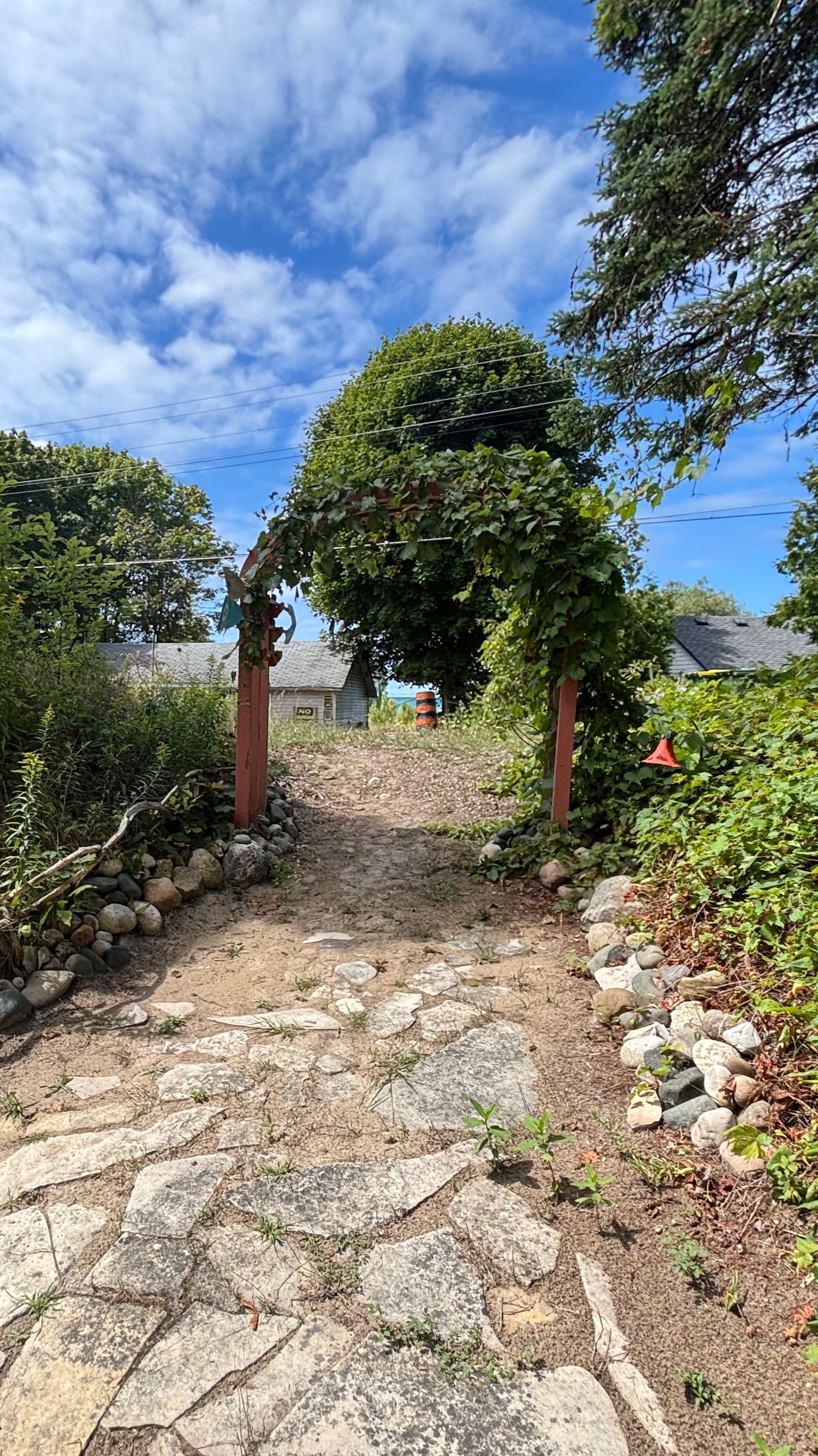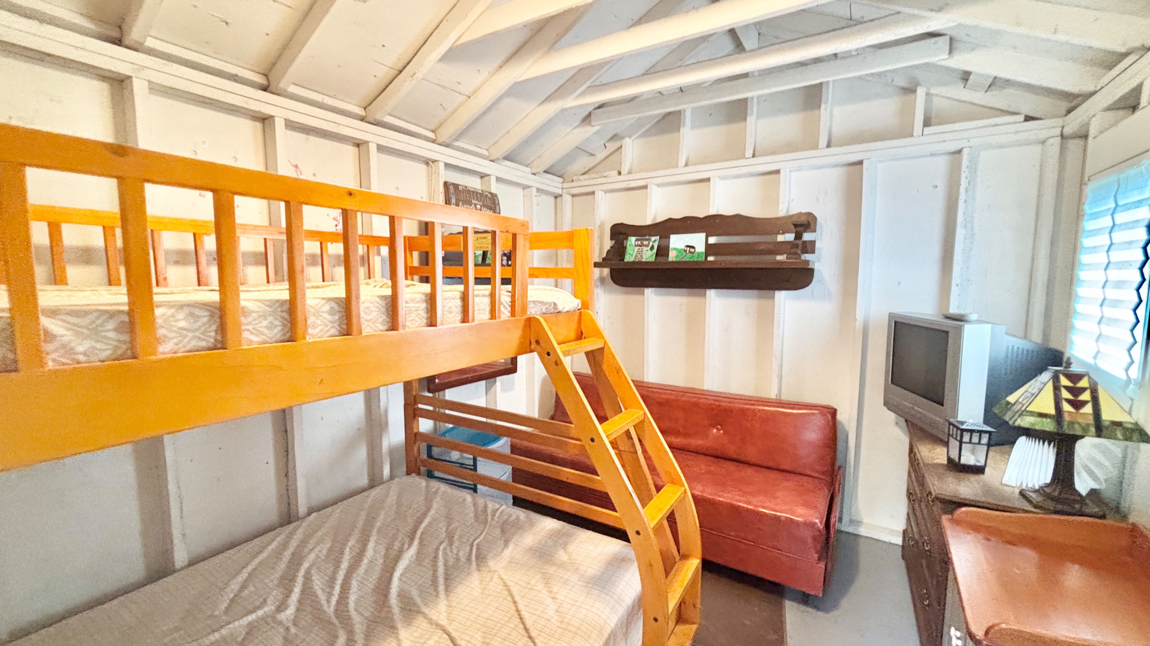 Just a short stroll from the soft sandy shores of lake huron, this charming cottage combines rustic character with modern updates. Set on a mature 115' x 95' lot with a partial water view, it offers a true lakeside retreat with endless possibilities. Inside, the cottage features a bright, inviting layout with vaulted ceilings, a renovated kitchen, an updated three-piece bathroom, a cozy living room, and two comfortable bedrooms. An upper loft provides excellent storage space, keeping the main living areas open and uncluttered. Outside, three separate sheds add to the property's appeal, each with potential for a variety of uses such as a gym, home office, playhouse, or hobby space. A brand-new outdoor-access bathroom makes rinsing off after a day at the beach simple and convenient. Relax on the front porch while listening to the gentle sound of the waves, or enjoy the privacy of the landscaped lot. With updates including a newer sand point pump, windows, lighting, and flooring, the property is move-in ready. Sold furnished as shown with quick closing available, this cottage is ready to enjoy as a seasonal retreat or a place to make lasting memories. Yearly lease fee is $5,800 and yearly service is $1,300