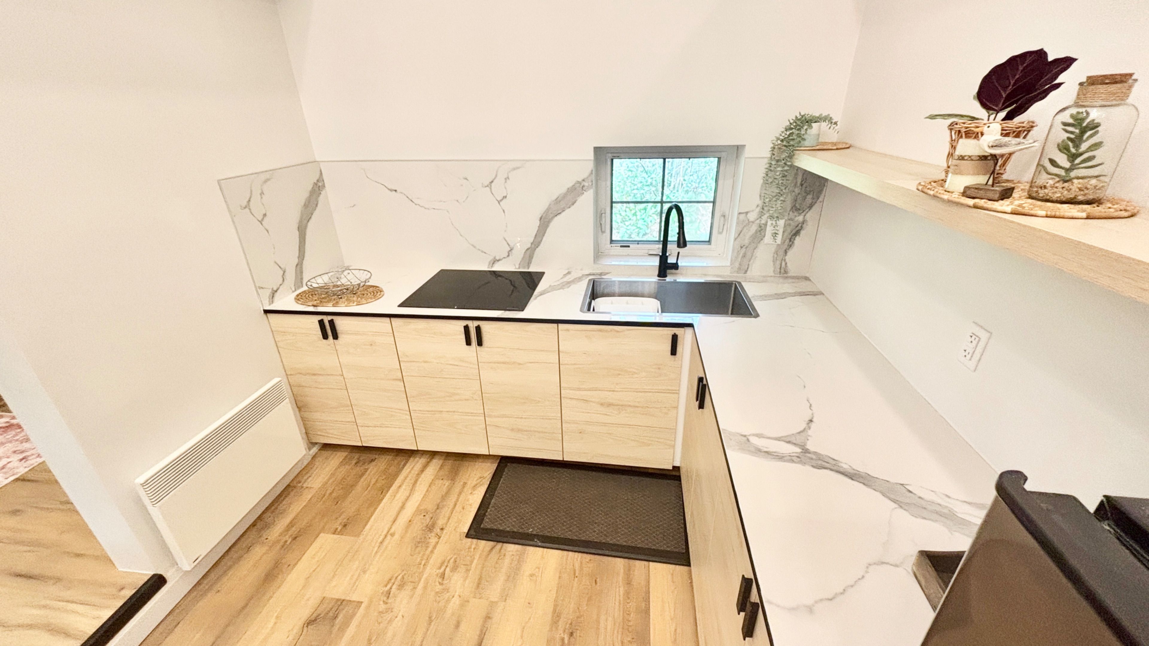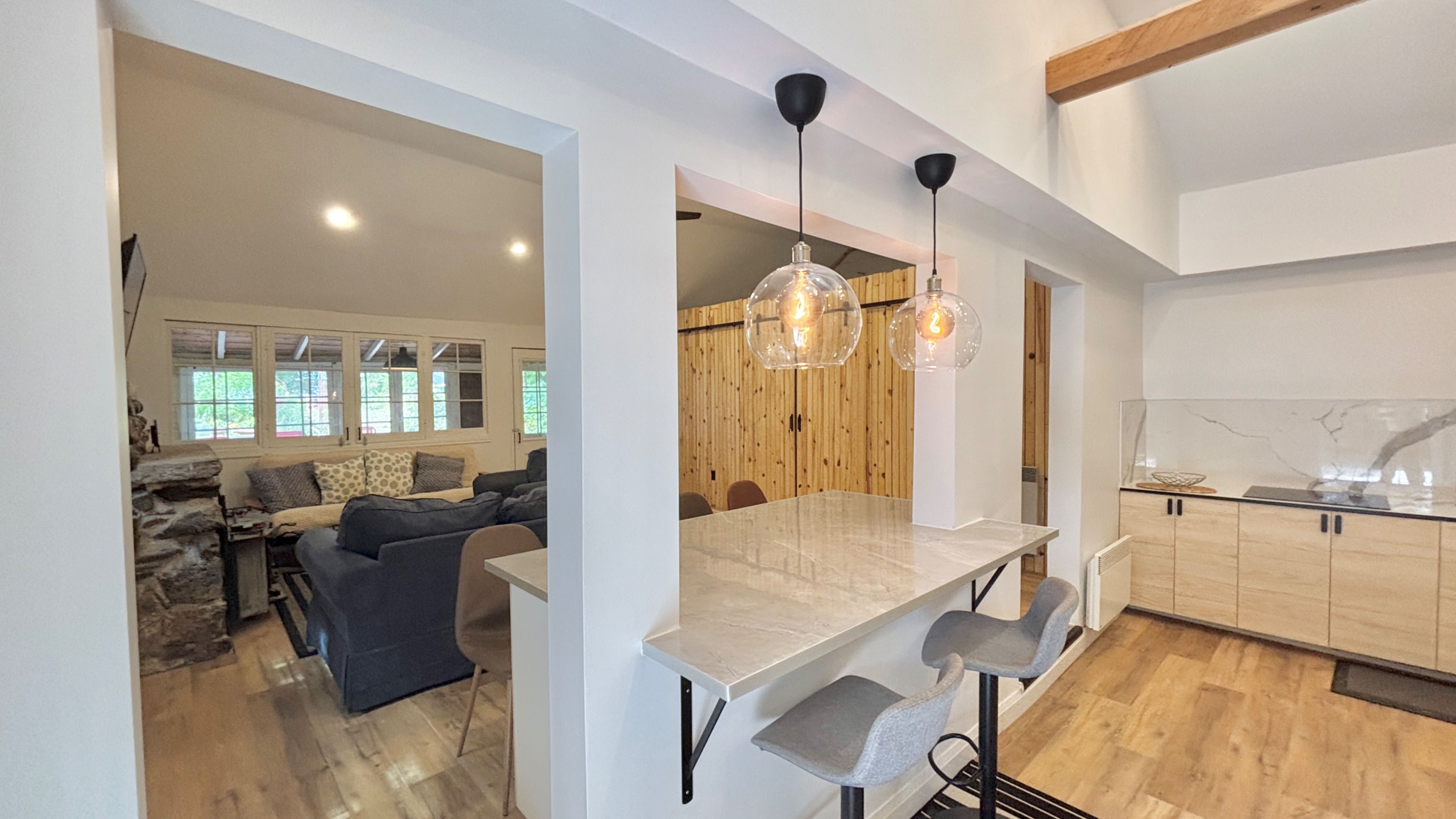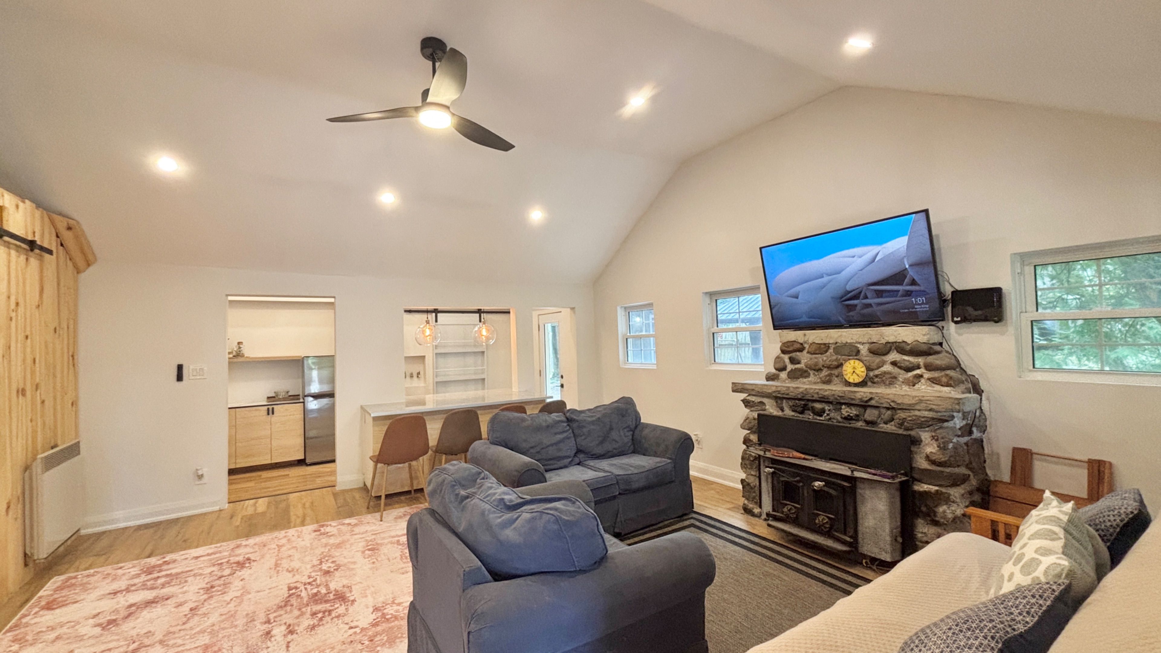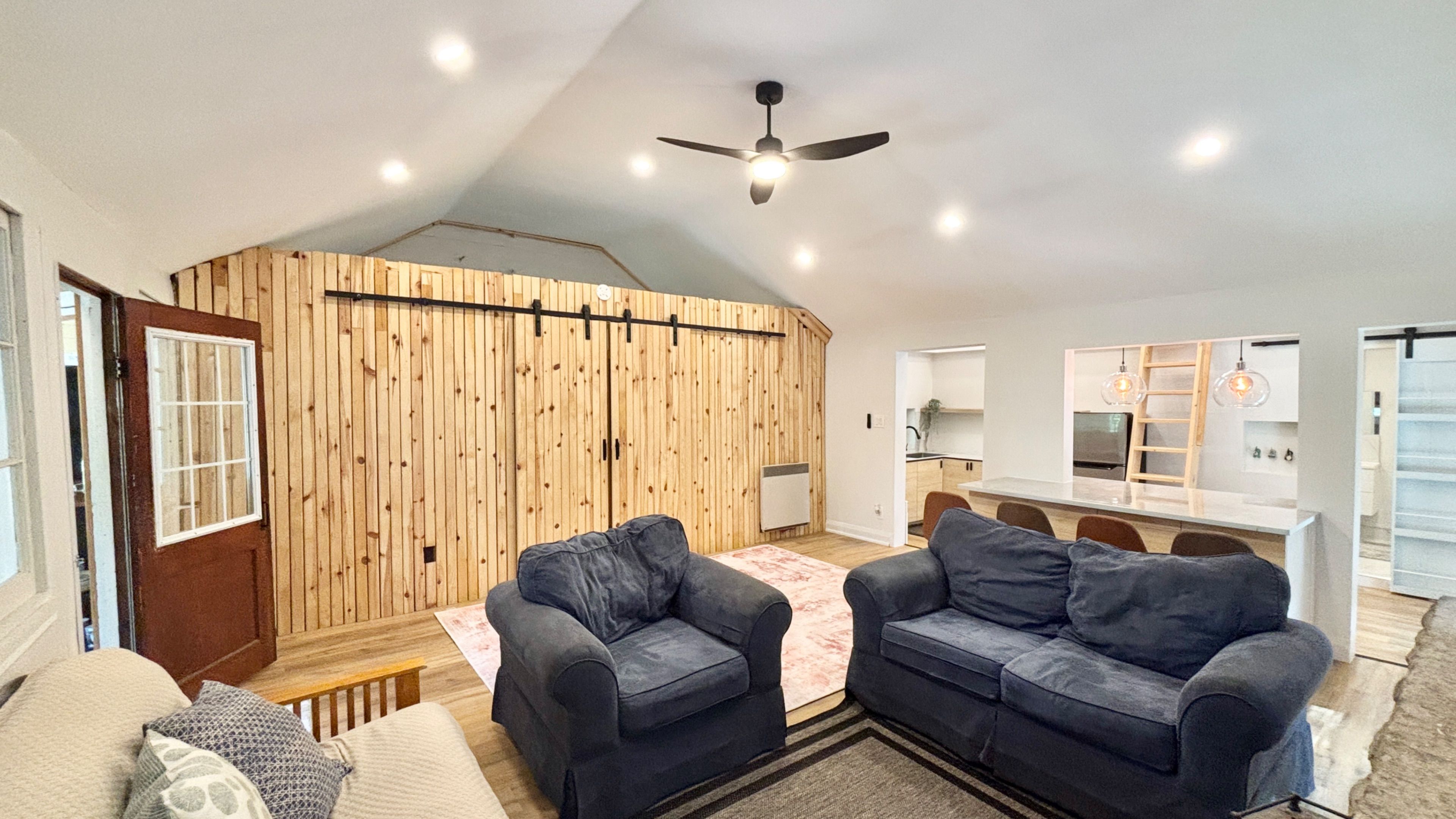 • Bright layout with vaulted ceilings and renovated kitchen.