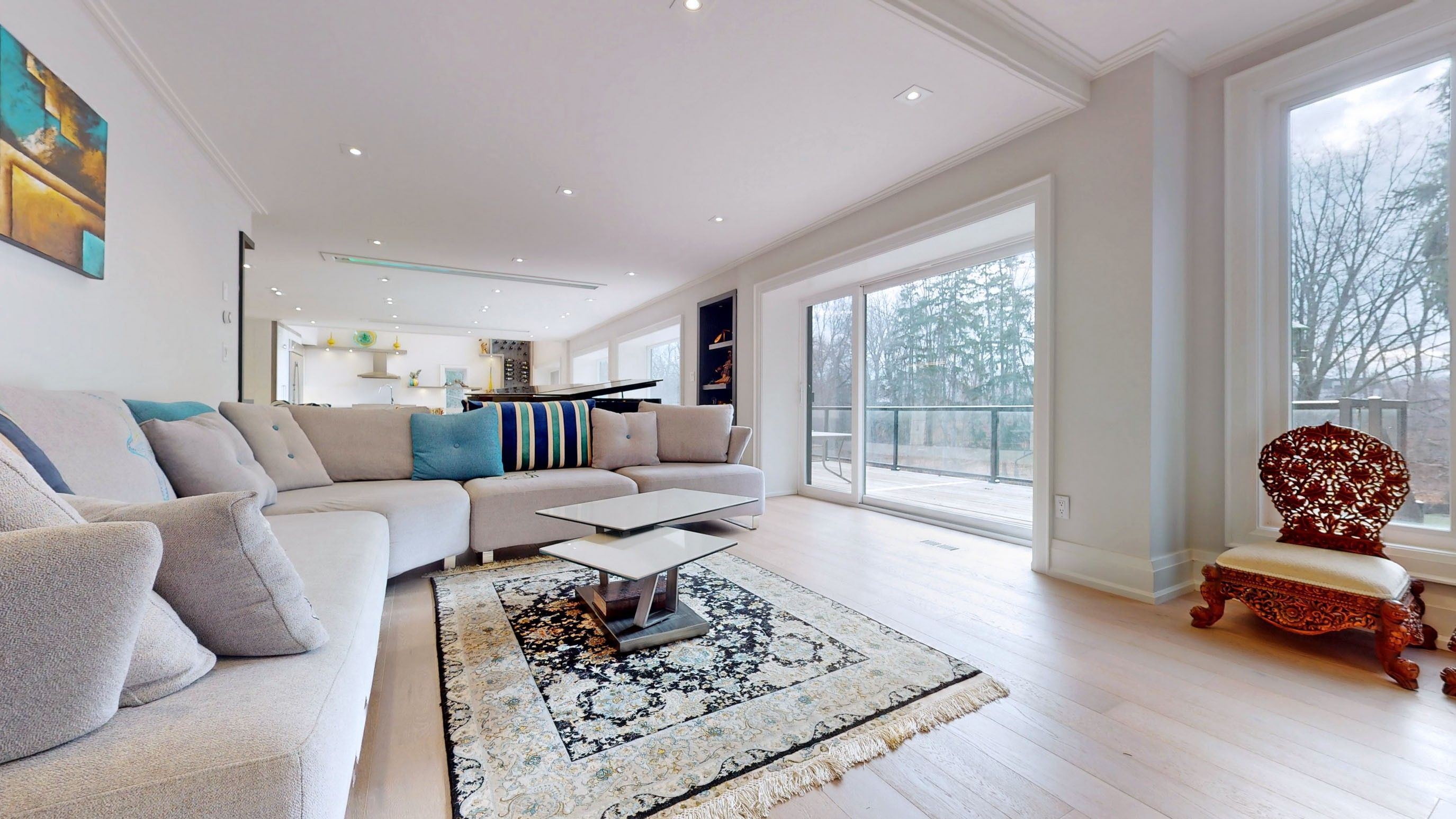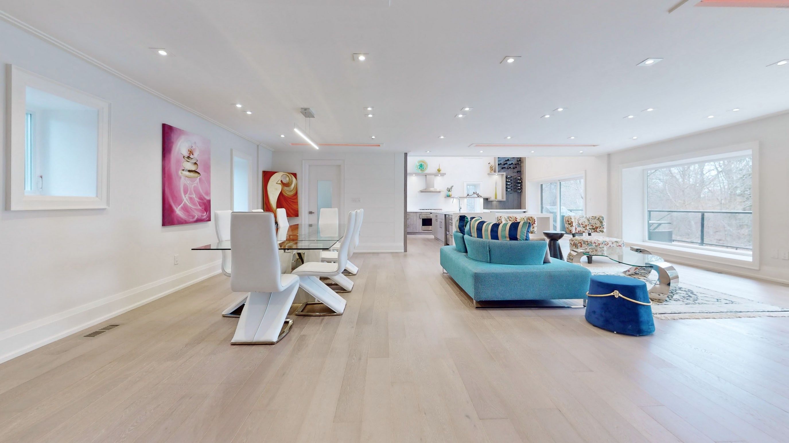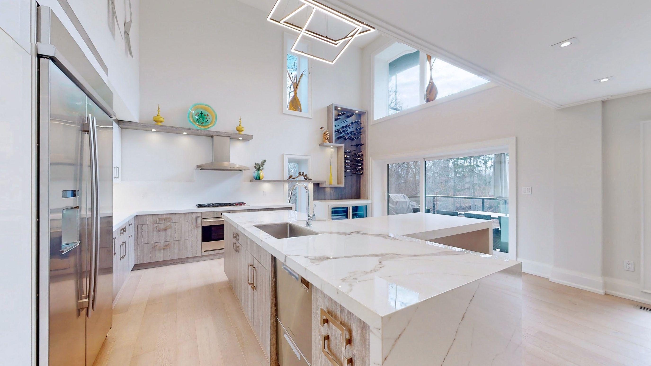 • Expansive windows and lofty ceilings throughout.