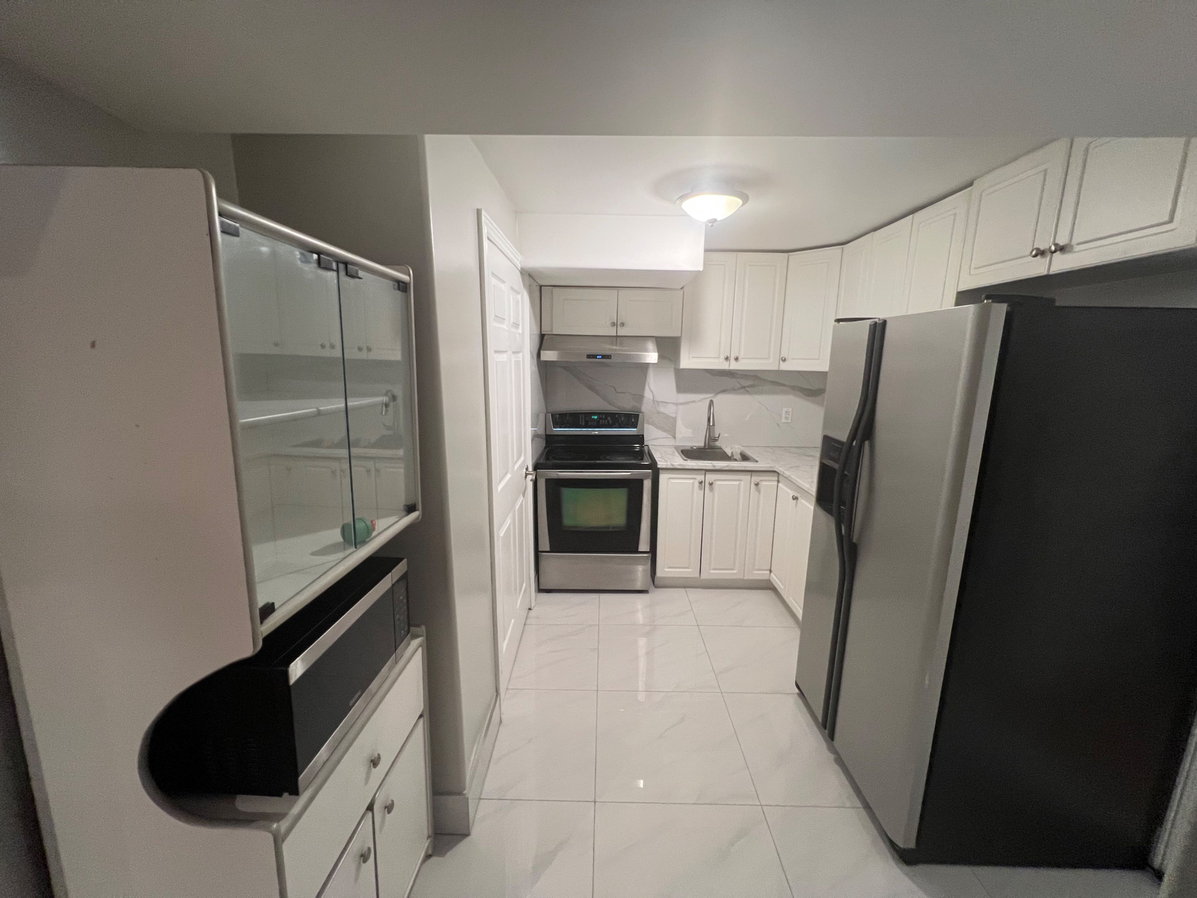 • Updated kitchen featuring stainless steel appliances and new flooring.
