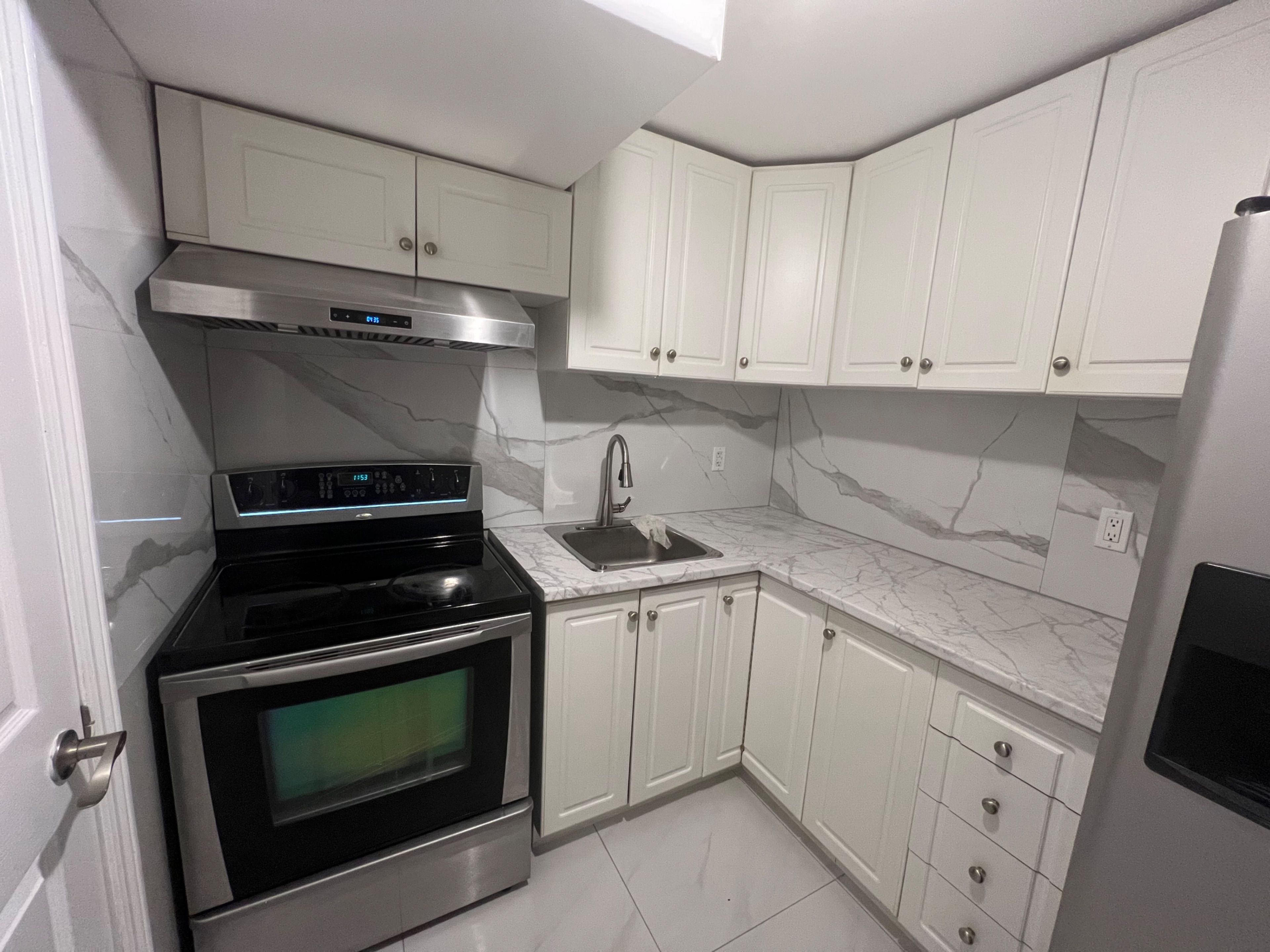 Welcome to this bright and freshly painted 1 bedroom, 1bathroom basement suite with a private separate entrance. Brand new flooring in the kitchen with kitchen recently refreshed. The unit offers an open concept layout with lots of storage space and a large full 4 piece bath. Beautiful dark laminate flooring, pot lights throughout, updated kitchen with stainless steel appliances, full bath with tub, shared laundry, above grade windows. Separate side entrance with 1 parking spot in the driveway. Great street in a family friendly neighbourhood, walking distance to schools, parks, shopping, transit and many other amenities. Tenant to clear snow to their entrance. Some furniture available including chairs and beds. Tenant to pay 30% of utilities.