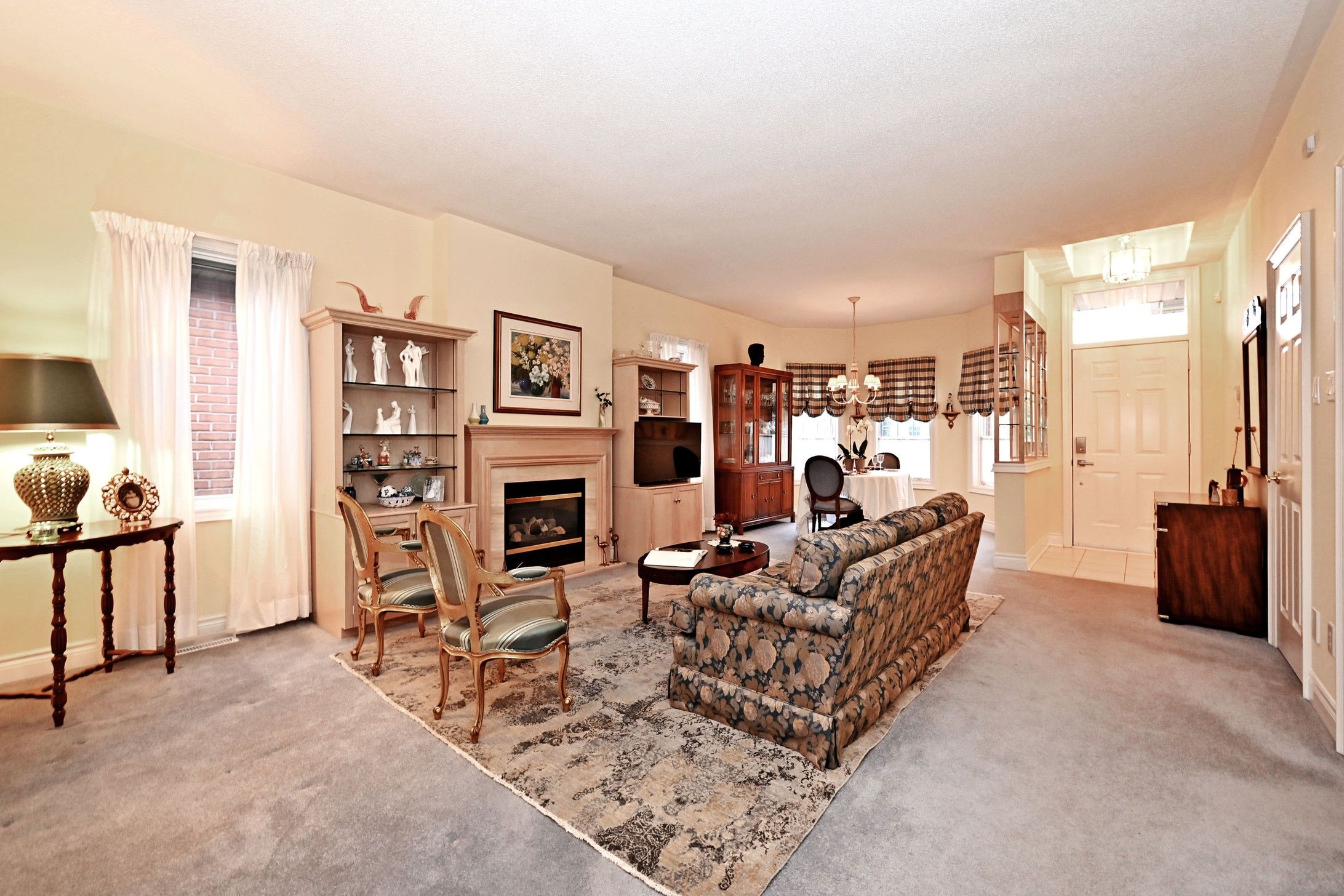 Fabulous rarely offered pinehurst ii model with a bright and beautiful sun-filled kitchen at the back of the house overlooking the private back patio. Granite counter, custom backsplash and under-mount lighting, pantry, and built-in desk add to the functionality of this large eat-in kitchen. The living room has custom cabinetry flanking the gas fireplace. This open concept 1700 sf layout features 2 bedrooms plus a den and two full bathrooms. This home has been well-maintained by the original owner. The exclusive ballantrae golf and country club community boasts a 18 hole championship golf course, recreation centre with indoor salt-water pool, sauna, hot tub, gym, tennis courts, billiards, bocce, and many social activities. Maintenance fee includes: rogers cable and internet, lawn maintenance, snow removal, irrigation system, and use of rec centre. Gardening package available for a fee.