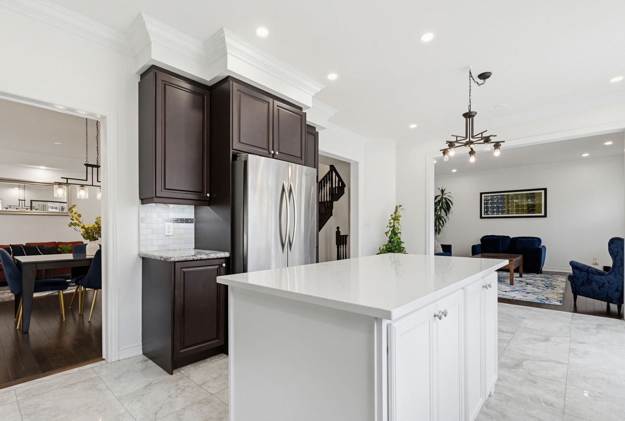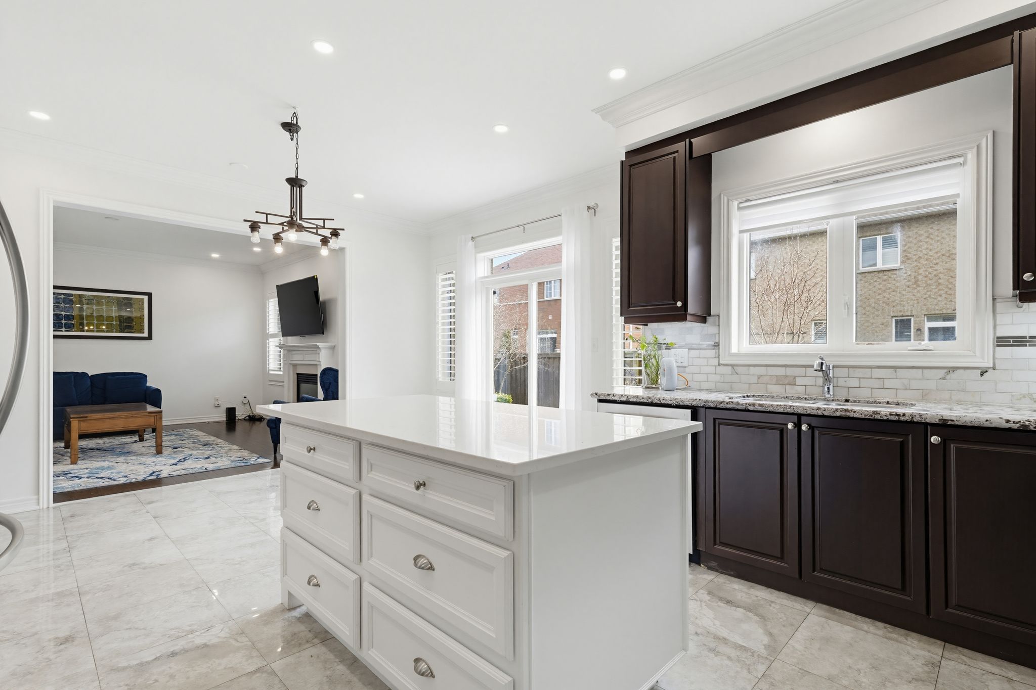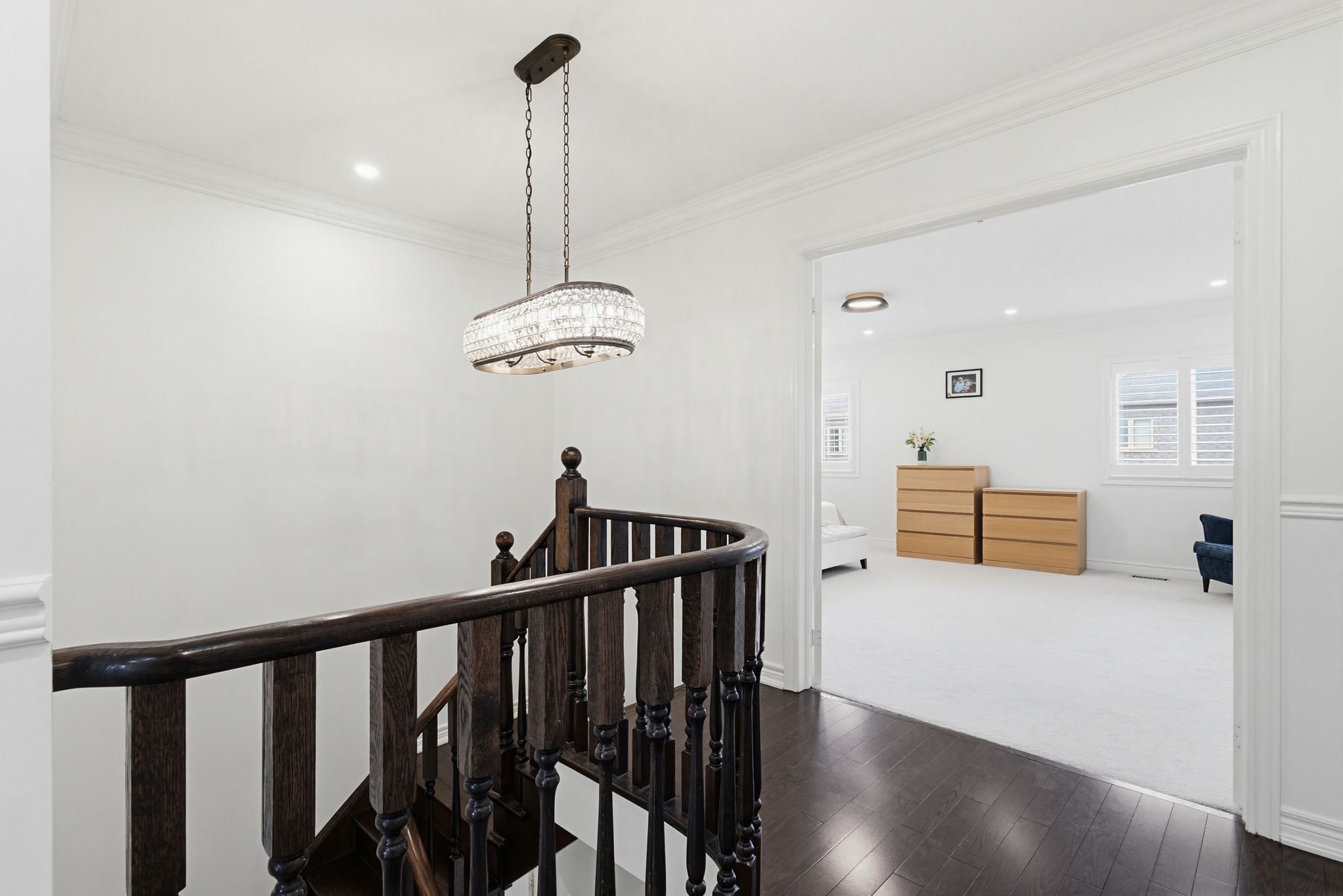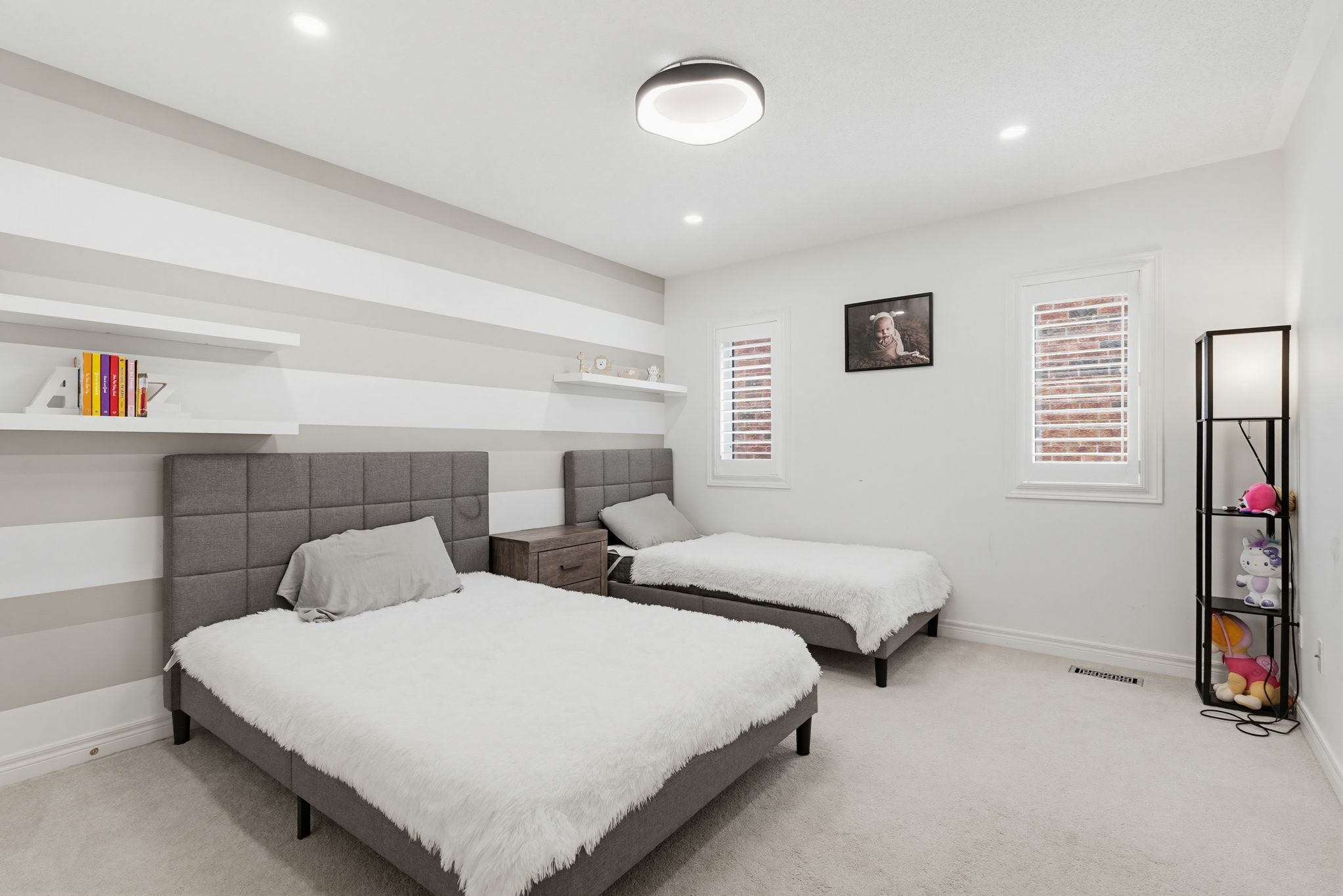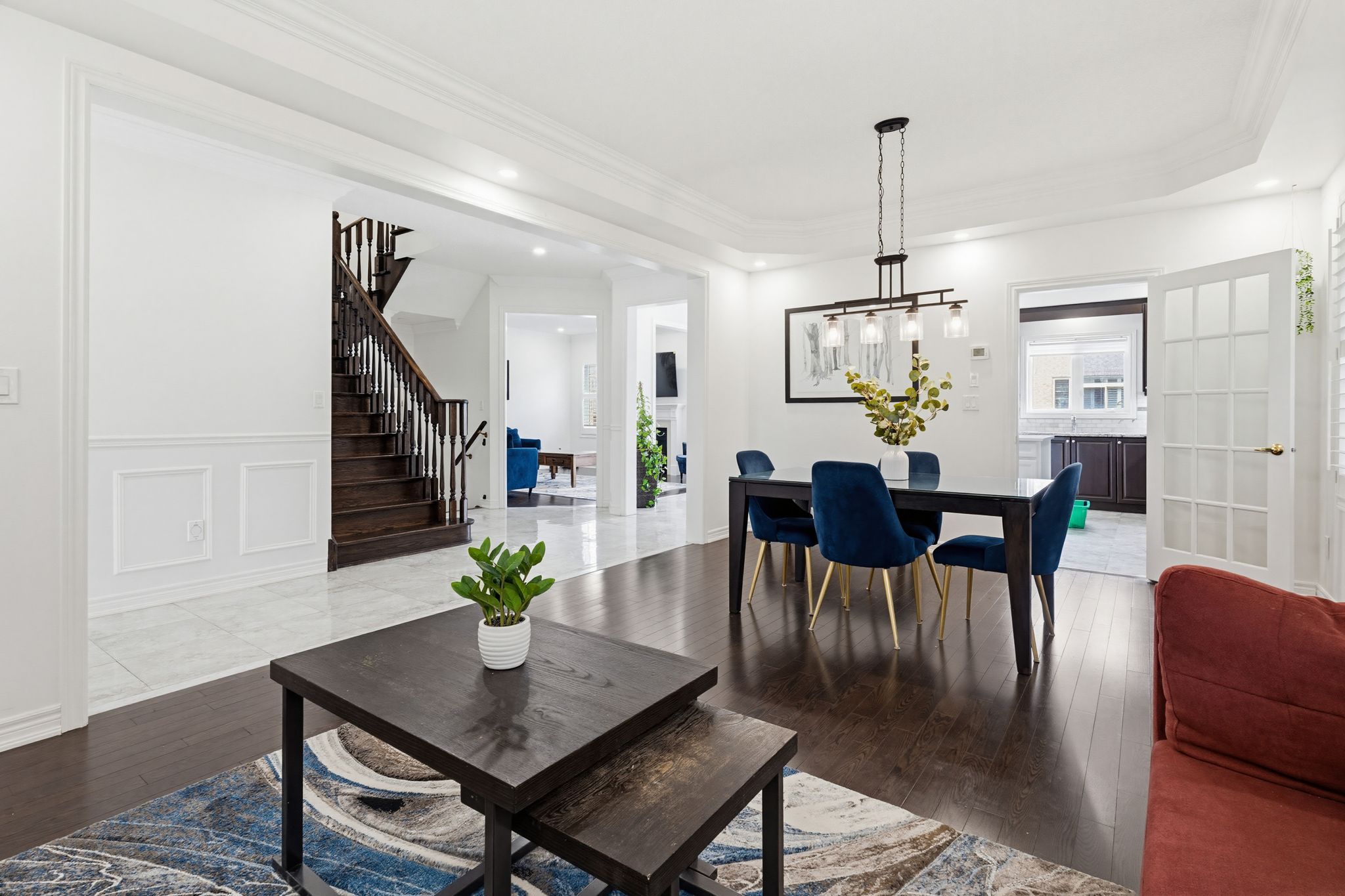 Discover the perfect blend of space, design, and functionality in this beautifully upgraded family home offering approximately 3,100 sq ft above grade, located in one of waterdown's most sought-after neighbourhoods. The curb appeal stands out with clean, well-kept landscaping, a double garage with inside entry, and a private driveway. Inside, the home features 9-foot ceilings, crown moulding, california shutters, designer lighting, and pot lights throughout, creating a bright and refined living environment. The main floor offers a well-designed layout with an expansive combined living and dining area, ideal for both everyday living and formal entertaining, a dedicated home office, and an inviting family room anchored by a gas fireplace. The massive kitchen is designed for everyday living and entertaining. It features granite countertops, a large centre island with quartz surface, custom cabinetry, stainless steel appliances, subway tile backsplash, and porcelain tile flooring-seamlessly connecting the main living spaces and perfect for hosting. Upstairs, the expansive primary suite features his and hers walk-in closets and a beautifully upgraded 5-piece ensuite with a soaker tub, separate his and hers vanities, a glass walk-in shower, and porcelain tile finishes. Three additional well-sized bedrooms complete the upper level, including one with its own private ensuite, while the remaining two are connected by a jack-and-jill bathroom, offering a practical and family-friendly layout. The backyard is thoughtfully designed for both relaxation and entertaining, featuring a stamped concrete patio with a custom curved edge, complemented by low-maintenance landscaping, defined garden beds, and sculpted plantings that create a private and polished outdoor setting. Located close to parks, schools, and everyday amenities, this home delivers exceptional space, layout, and functionality in a prime waterdown location.