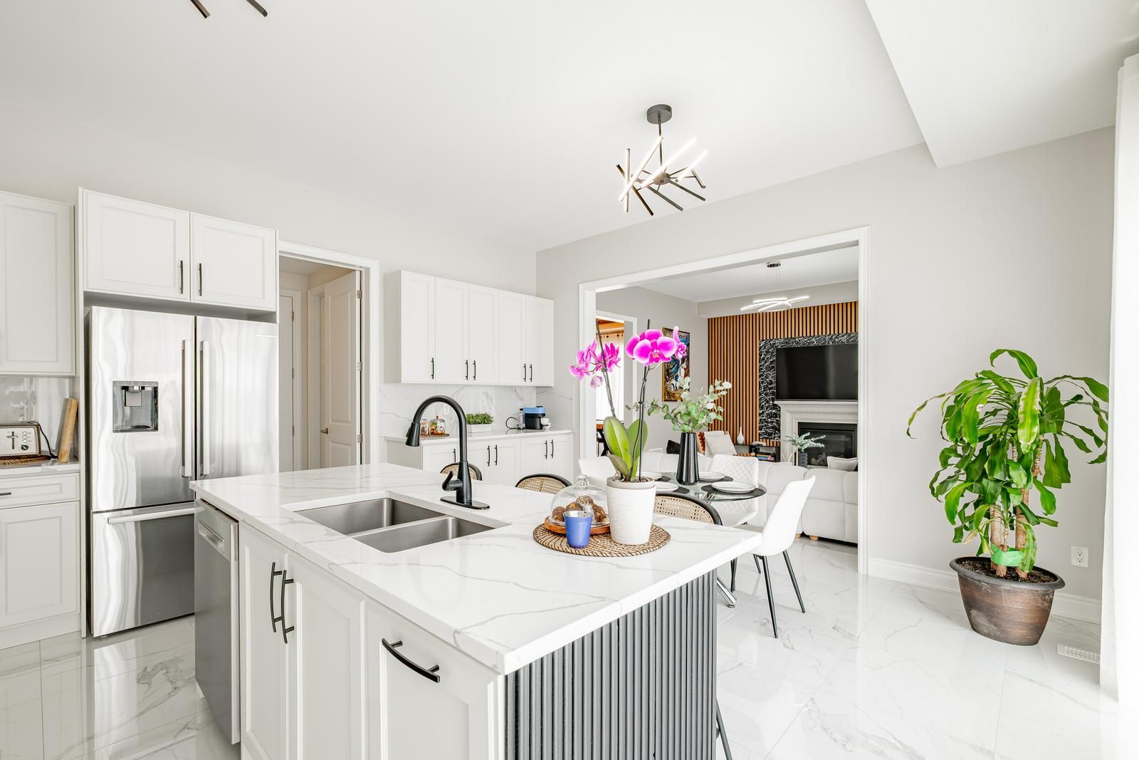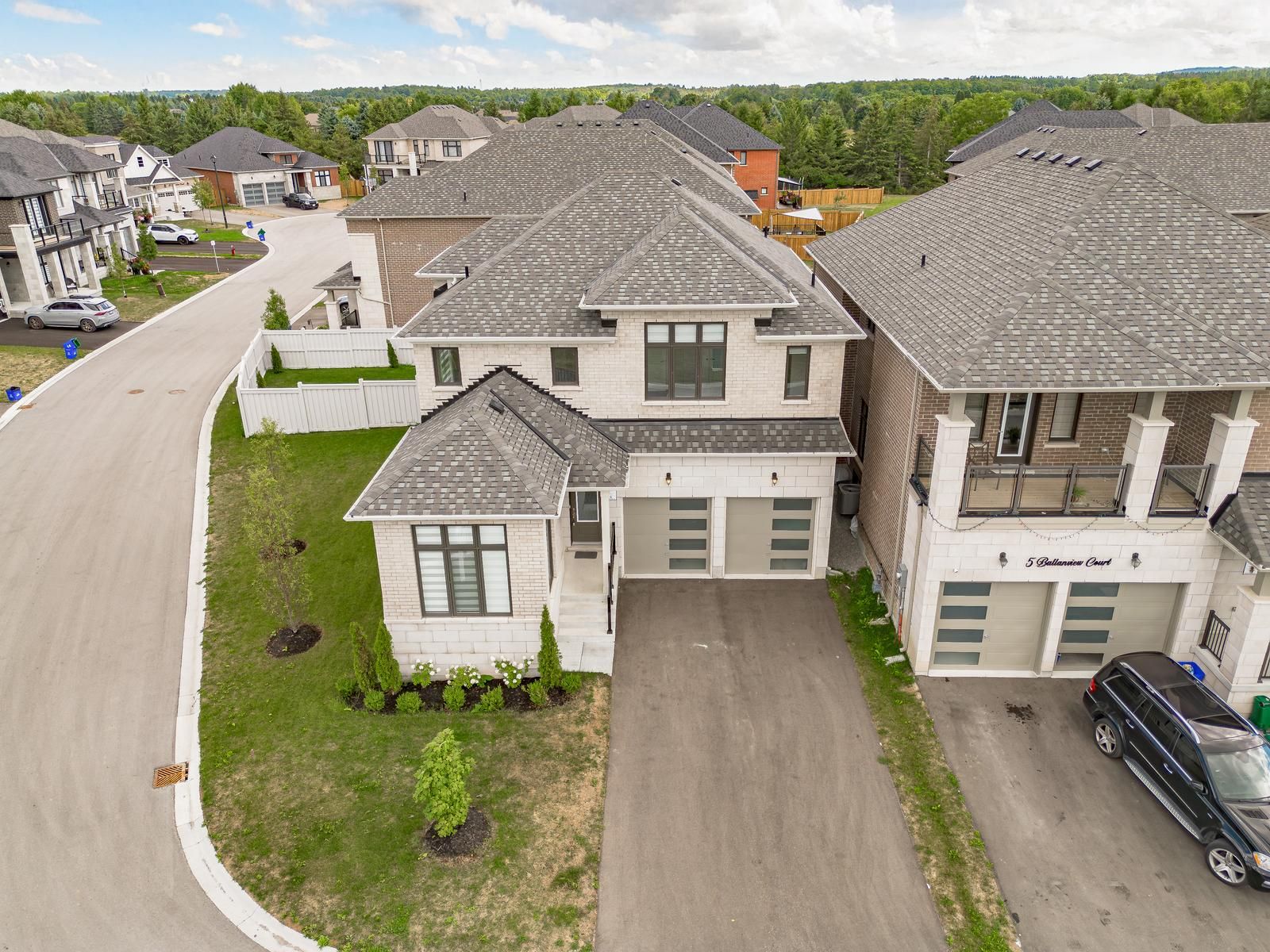 Sun-filled and stylish, this 4-bedroom, 4-bathroom home in the prestigious wedgewood community of ballantrae backs onto the ballantrae golf course and sits proudly on a premium corner lot in a private, no-through-traffic enclave. Built by ballymore homes, it blends modern elegance with functional design and exciting future potential. A grand foyer with soaring two-story ceilings welcomes you into an open-concept layout, perfect for both everyday living and entertaining. The main floor boasts 10-foot ceilings, a private office for remote work, and a spacious living room highlighted by a striking gas fireplace feature wall. The chefs kitchen is a true centerpiece, showcasing stone countertops, a large island, sleek white cabinetry, and upgraded double sliding doors that open to an oversized backyard. A practical mudroom with garage access adds convenience. Upstairs, 9-foot ceilings create an airy feel across four generously sized bedrooms and three bathrooms. The primary suite offers two walk-in closets and a spa-like 5-piece ensuite. A second bedroom includes its own 3-piece ensuite, while the remaining bedrooms share a stylish jack-&-jill bath. The unfinished basement comes with a permit for a side entrance, offering endless customization possibilities. The premium corner lot also allows for extended fencing, adding outdoor space and privacy. Ideally located in the sought-after ballantrae community, this home is close to restaurants, shops, sports facilities, and just minutes from stouffville and aurora.