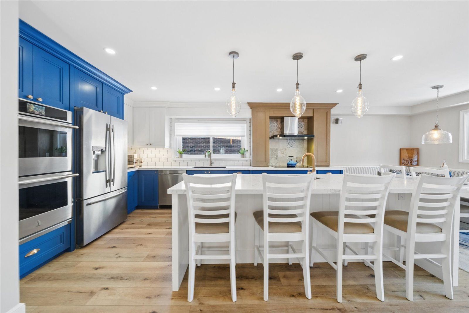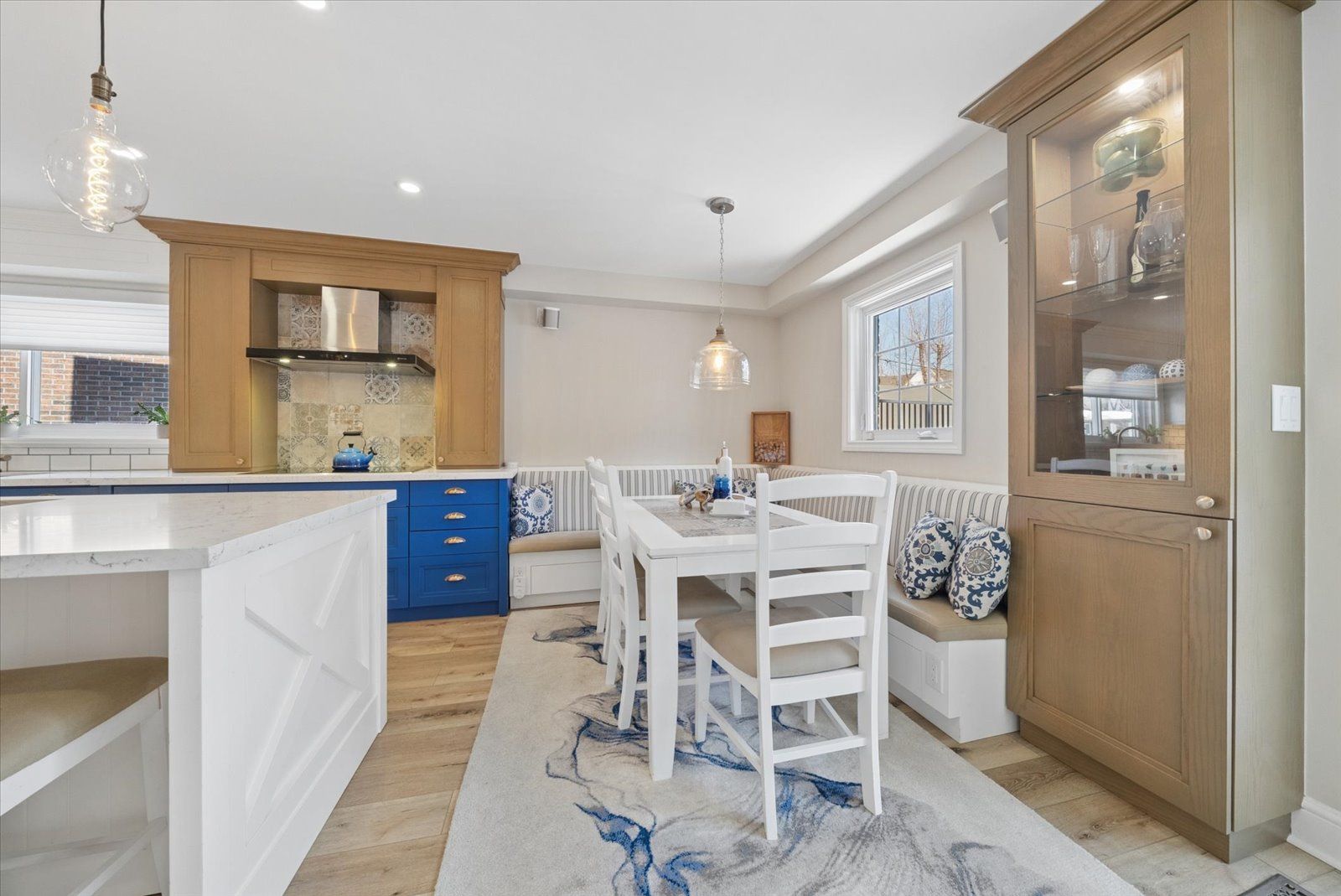 Imagine owning a beautifully renovated 4-bedroom backsplit on a rare 55 x 178 ft lot backing onto greenspace, offering exceptional privacy, tranquil views, and year-round outdoor enjoyment. Nestled on an exclusive cul-de-sac of just 12 homes, this property is steps to downtown aurora's shops, cafés, restaurants, farmers' market, parks, and top-rated schools. Inside, 7-inch wide plank flooring, smooth ceilings, fresh designer paint, crown moulding, oversized baseboards, pot lights, and statement pendant lighting create a bright and elegant atmosphere throughout. The open-concept kitchen flows seamlessly into the family room and features upgraded cabinetry with crown moulding, caesarstone quartz countertops, a stylish backsplash, and high-end jenn air appliances with induction cooktop. Thoughtfully designed with abundant pull-out storage, pot and pan drawers, and a large centre island with seating, it also includes a custom built-in banquette with integrated storage and a walkout to the low-maintenance oversized deck and 20' x 20' flagstone patio - ideal for entertaining. The family room is anchored by a gas fireplace with custom built-ins, while built-in sonos speakers enhance the ambiance. A versatile main-floor office easily converts to a formal dining space. The finished basement offers flexibility for a games room, additional bedroom, or in-law suite. A mudroom with main-level laundry adds everyday convenience, and a private elevator provides effortless access to the second floor. Additional upgrades include professionally installed break-resistant security film on the front window, front door, and rear door. Thoughtfully updated for comfort, style, and versatility, this exceptional home offers move-in-ready luxury in one of aurora's most desirable communities - aurora highlands. Be sure to watch the video tour for more details!
