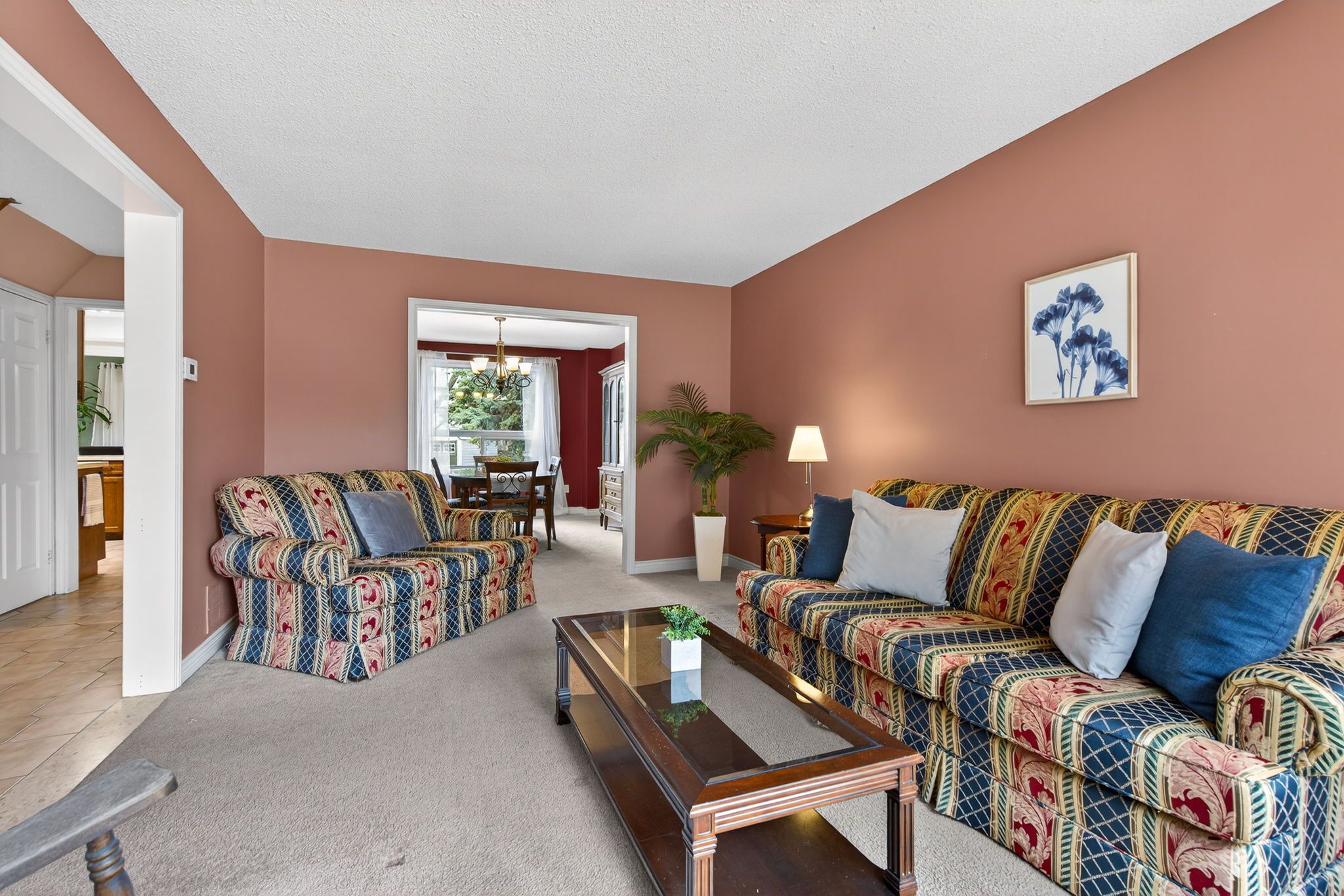 • Bright living room flows nicely into the formal dining area.