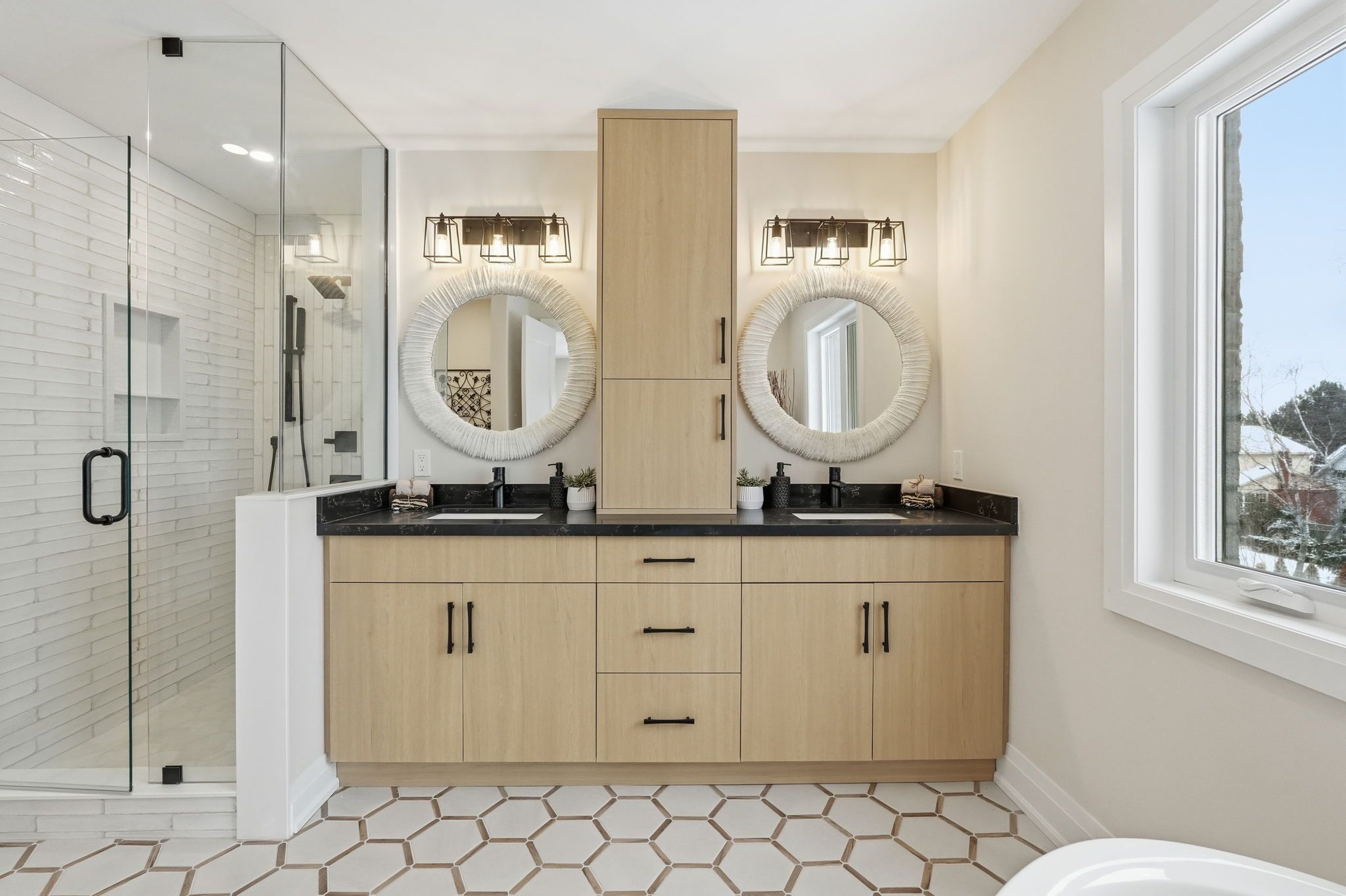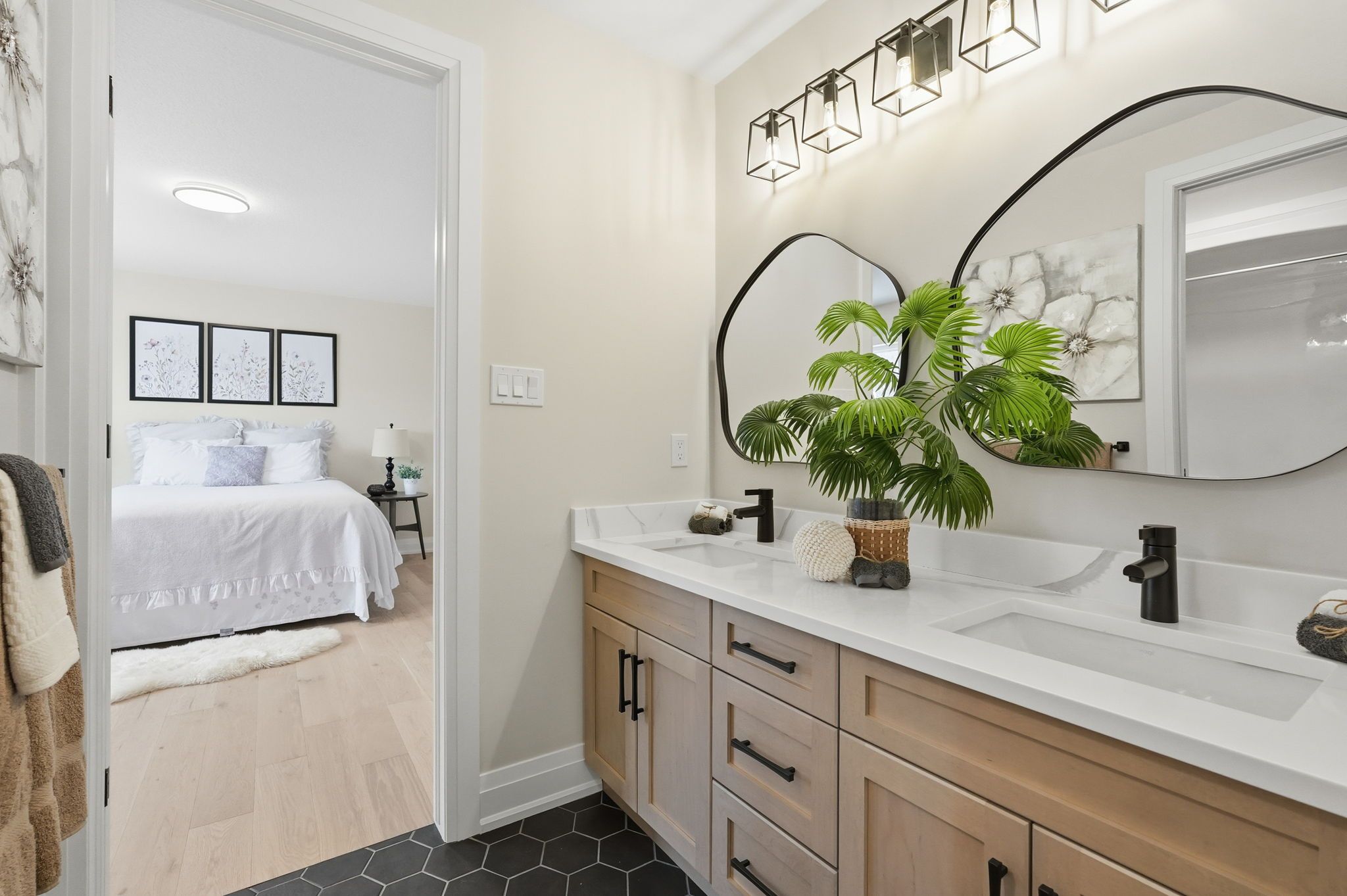 • Spacious bedrooms with walk-in closets and private bathrooms for convenience.