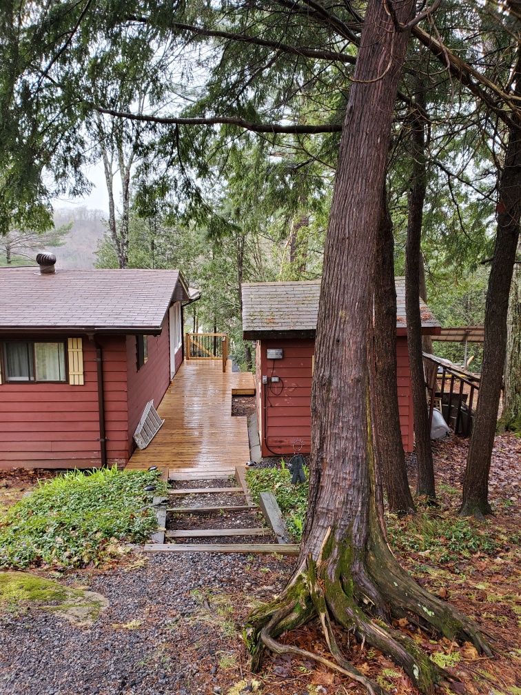 • Charming guest cabin with screened-in porch for relaxation.